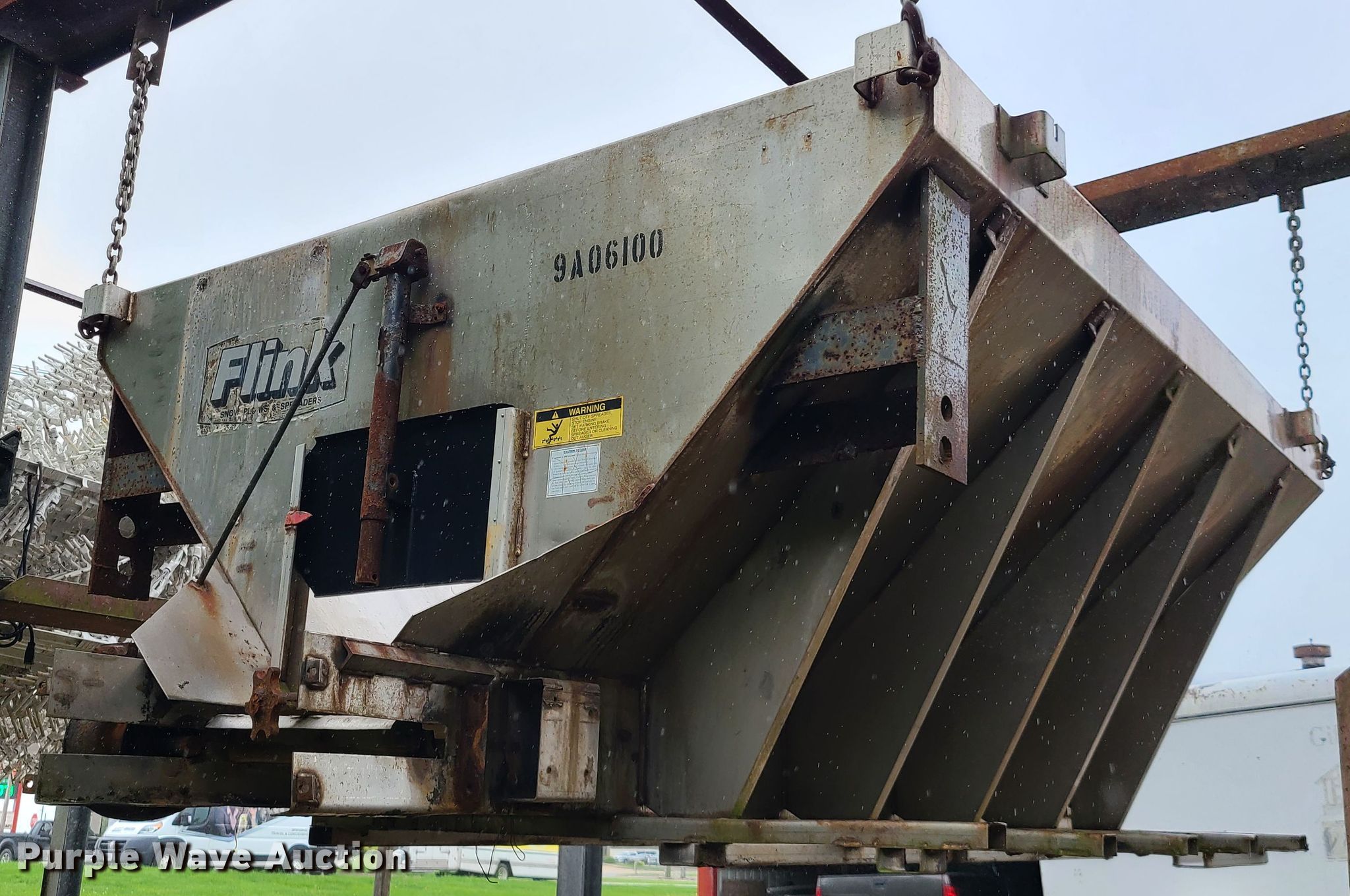 Purple Wave is selling a used Truck Part and Attach. in Missouri. This item is a Flint stainless steel salt spreader with the following: 9'L x 80"W, Non-operational unit