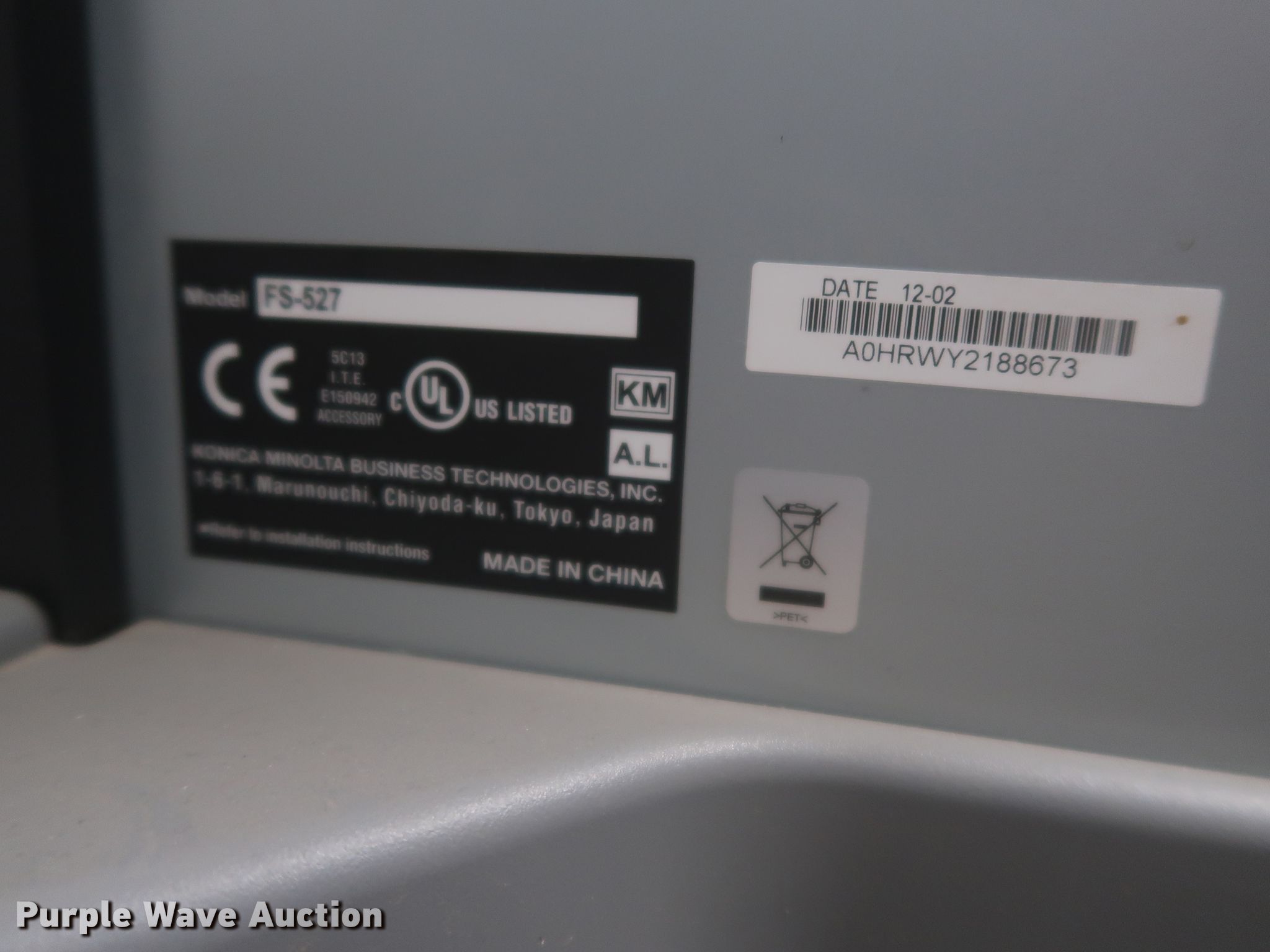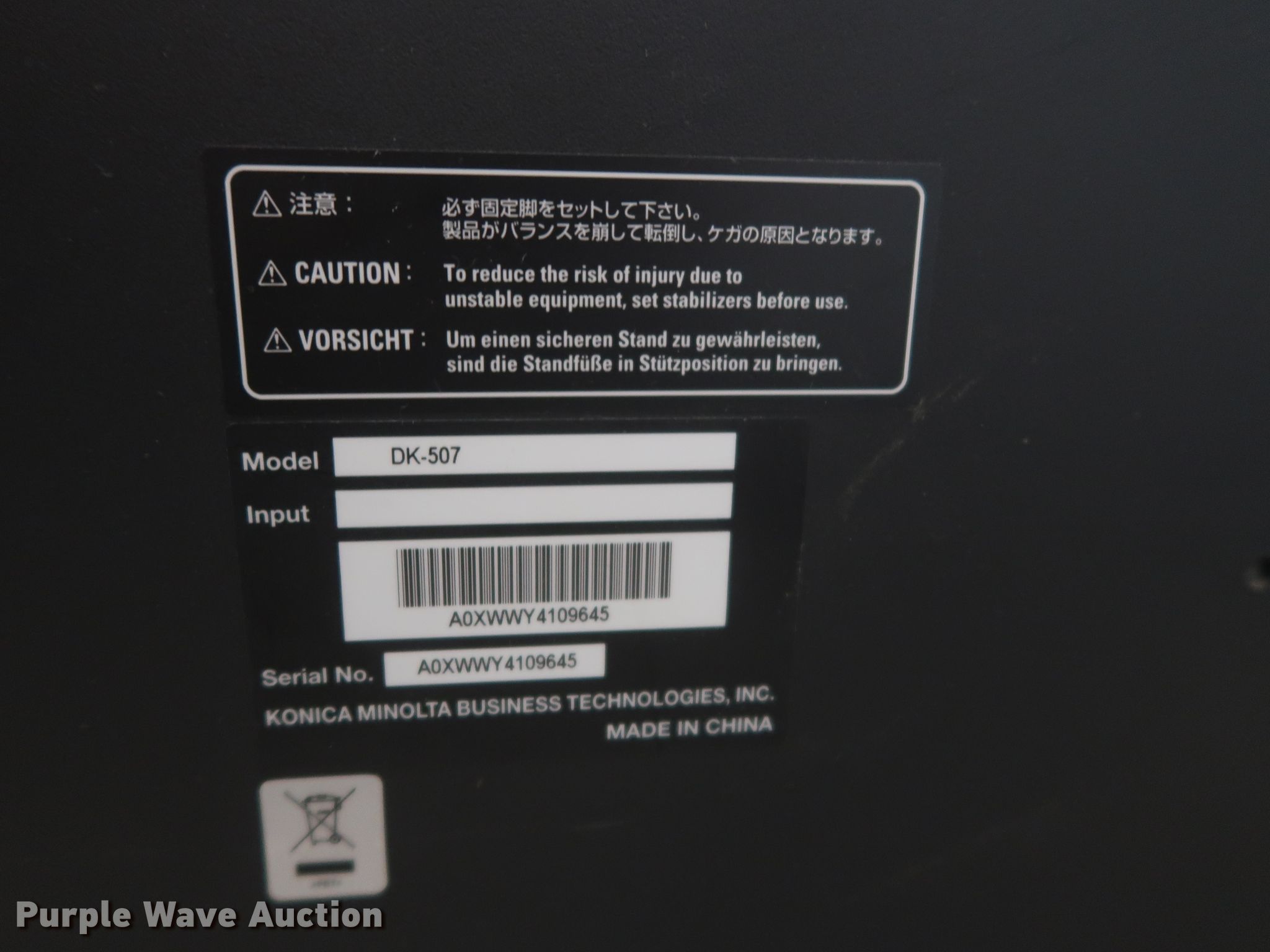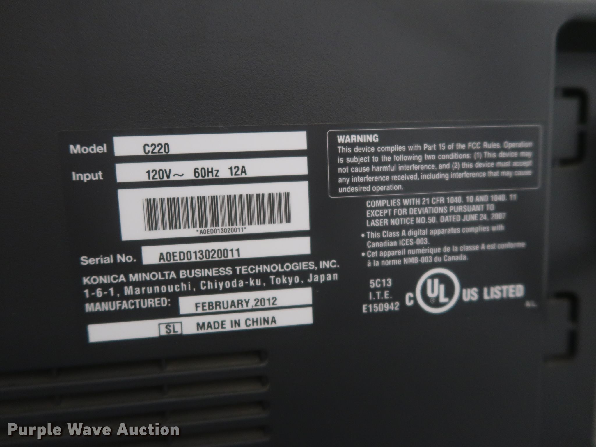 Purple Wave is selling a used Copy or Printing Machine in Oklahoma. This item is a 2012 Konica Minolta Bizhub C220 multi-function copy center with the following: Serial A0ED01302001