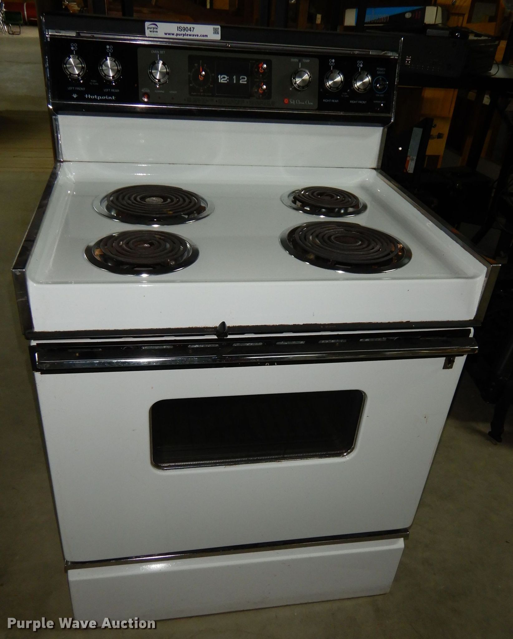 Purple Wave is selling a used Appliances in Kansas. This item is a Hotpoint stove with the following: Electric, Four burner, No power cord, Non-operational timer