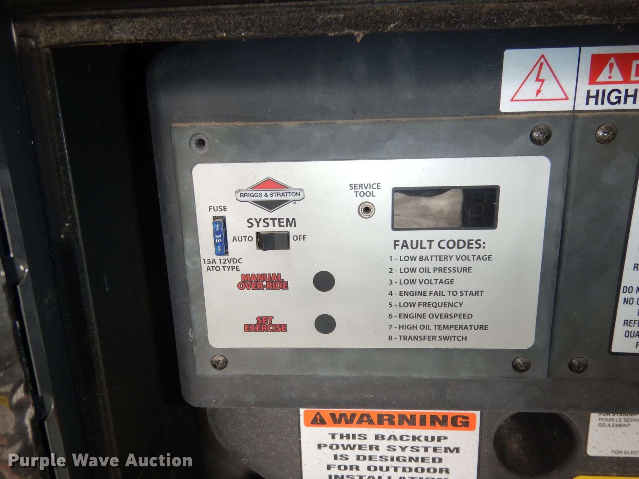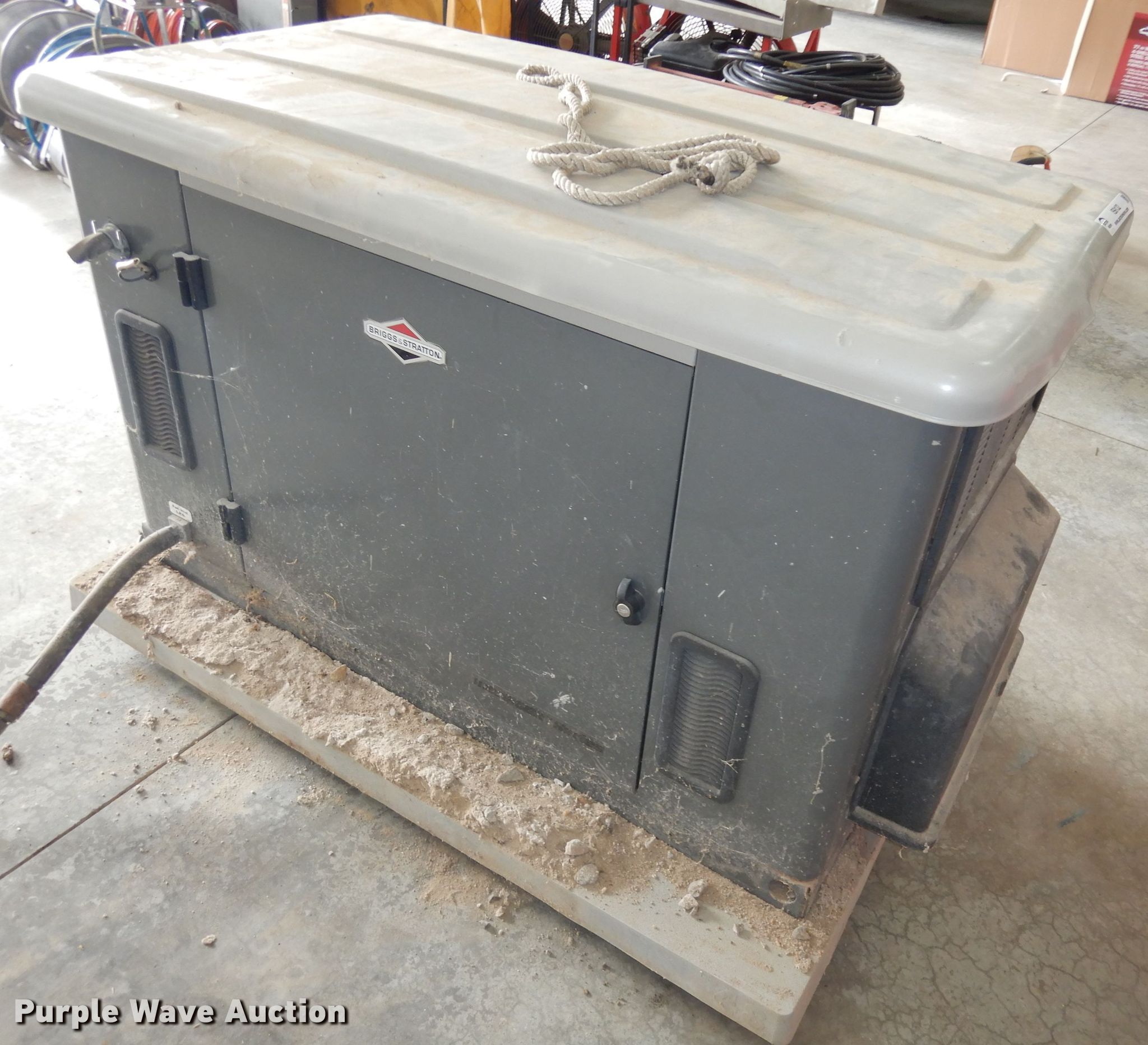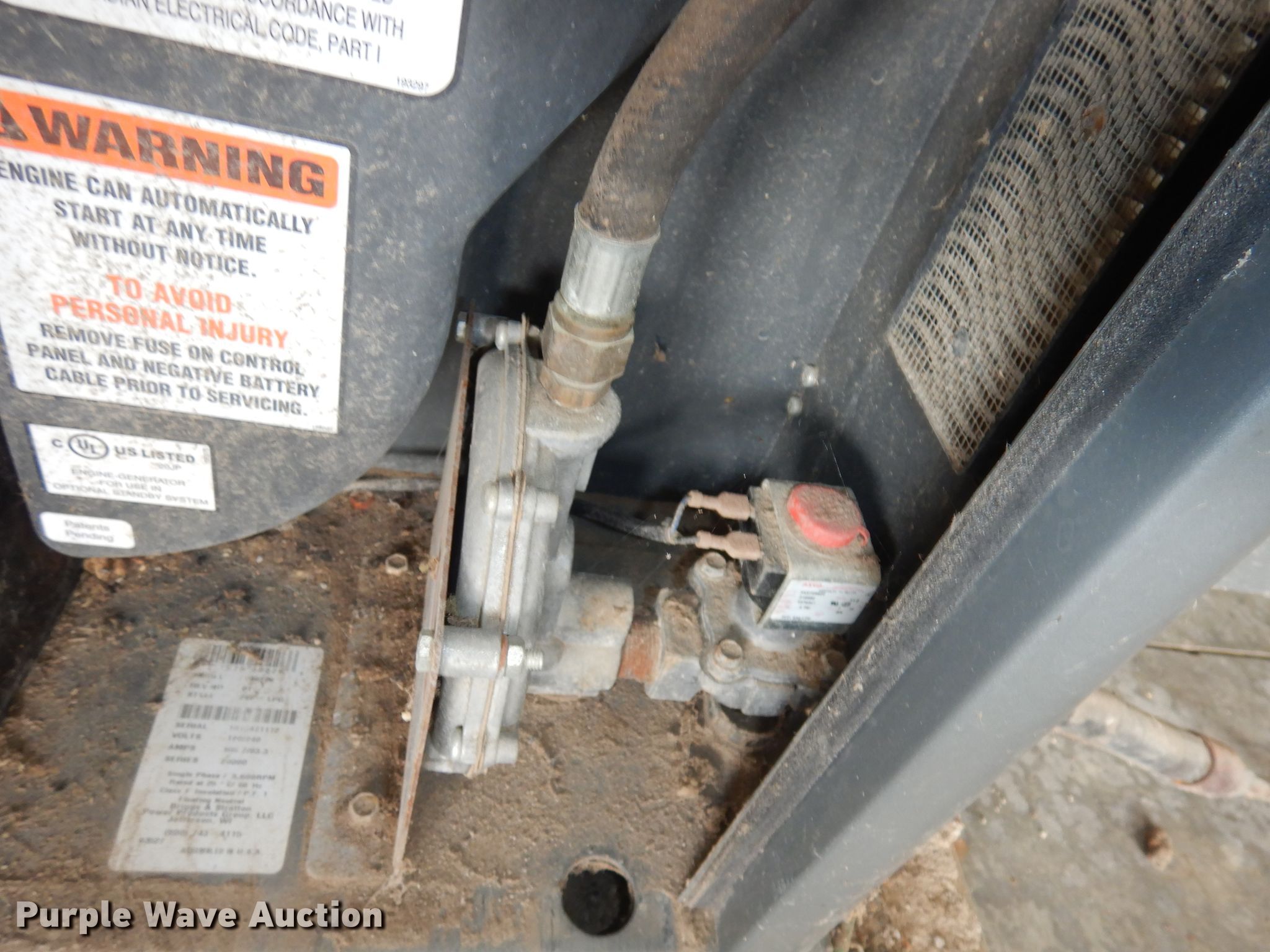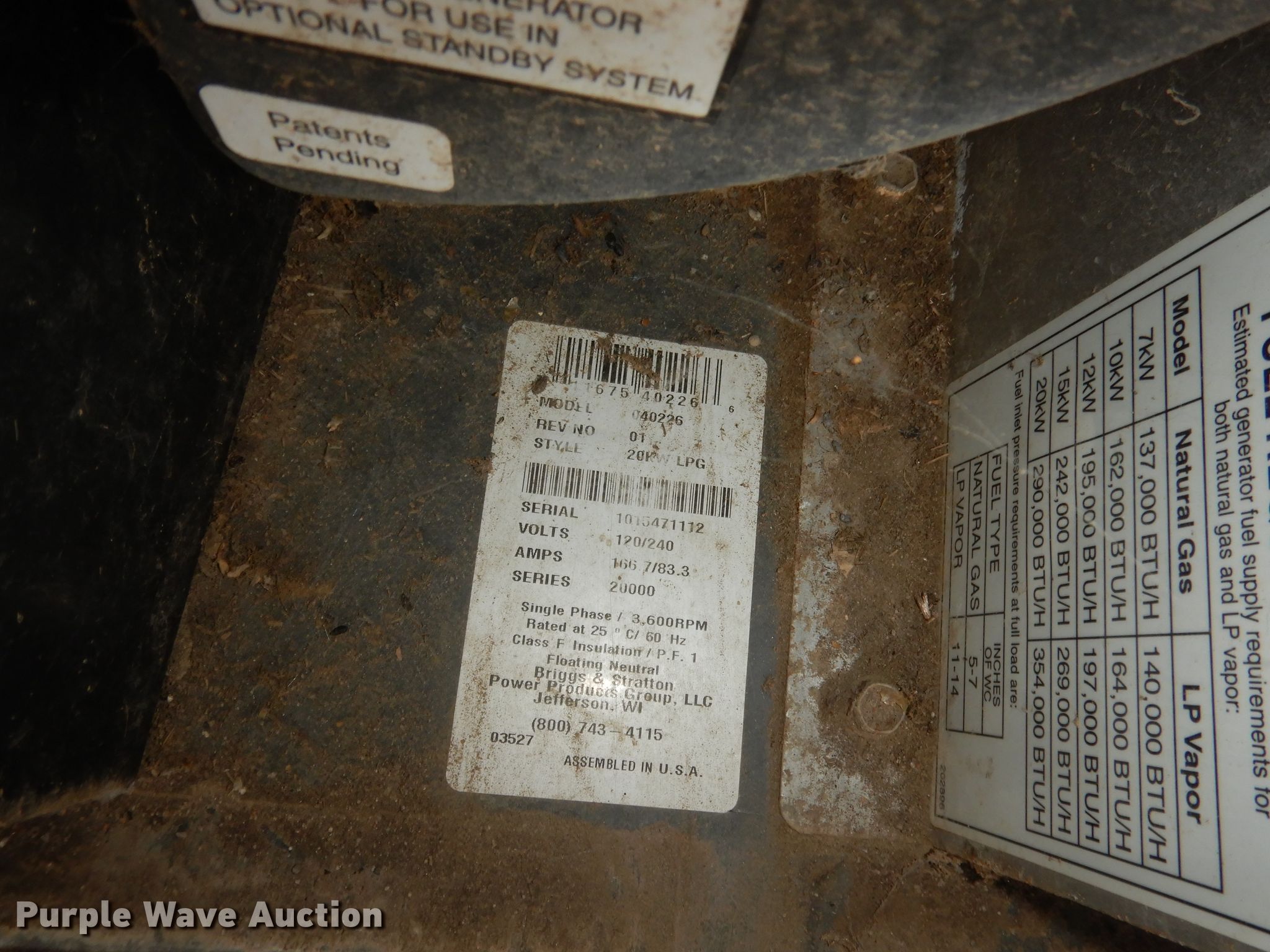 Purple Wave is selling a used Generator Set in Kansas. This item is a Briggs & Stratton 040226 20000 series generator with the following: Serial: 1010471112