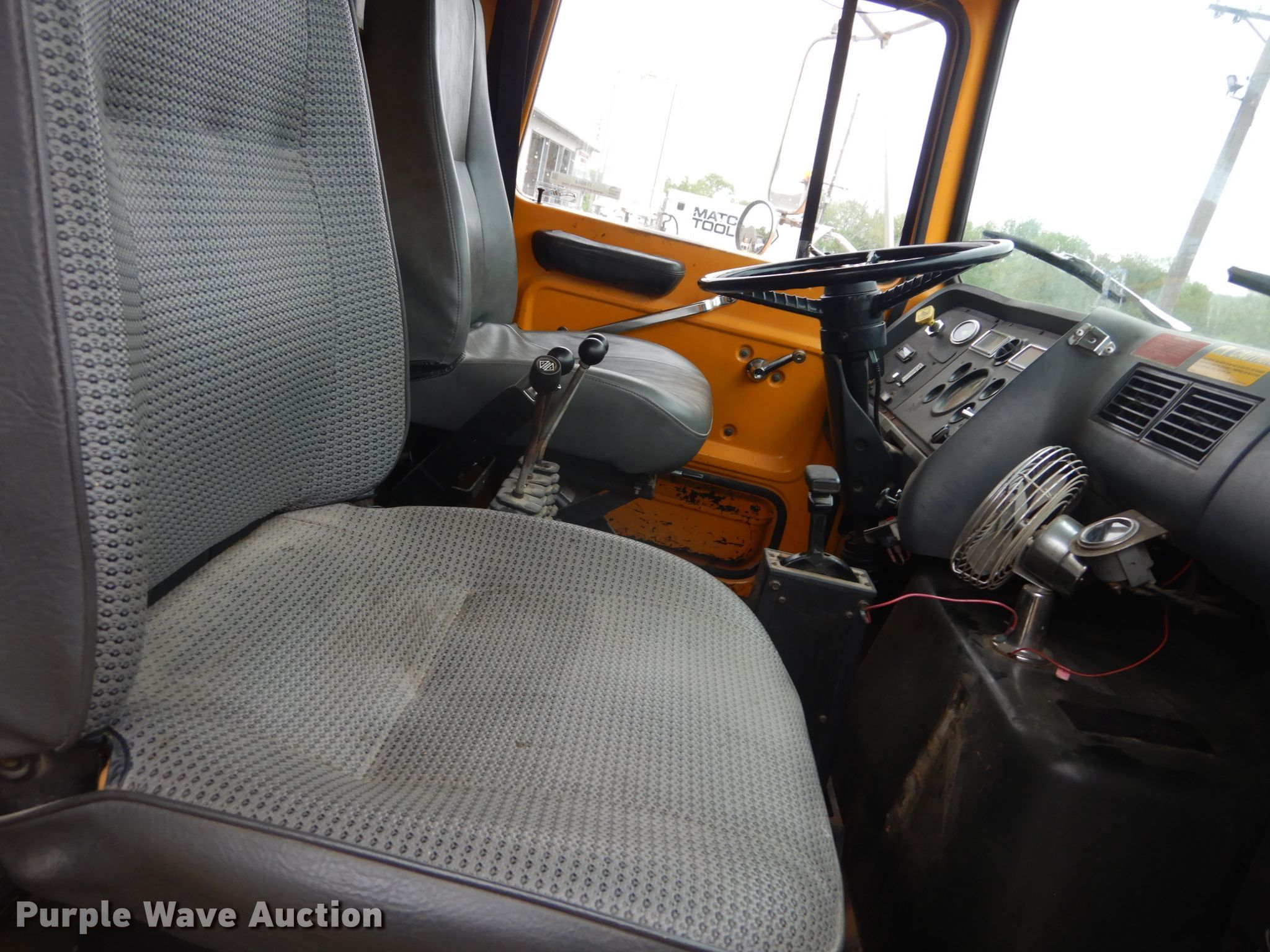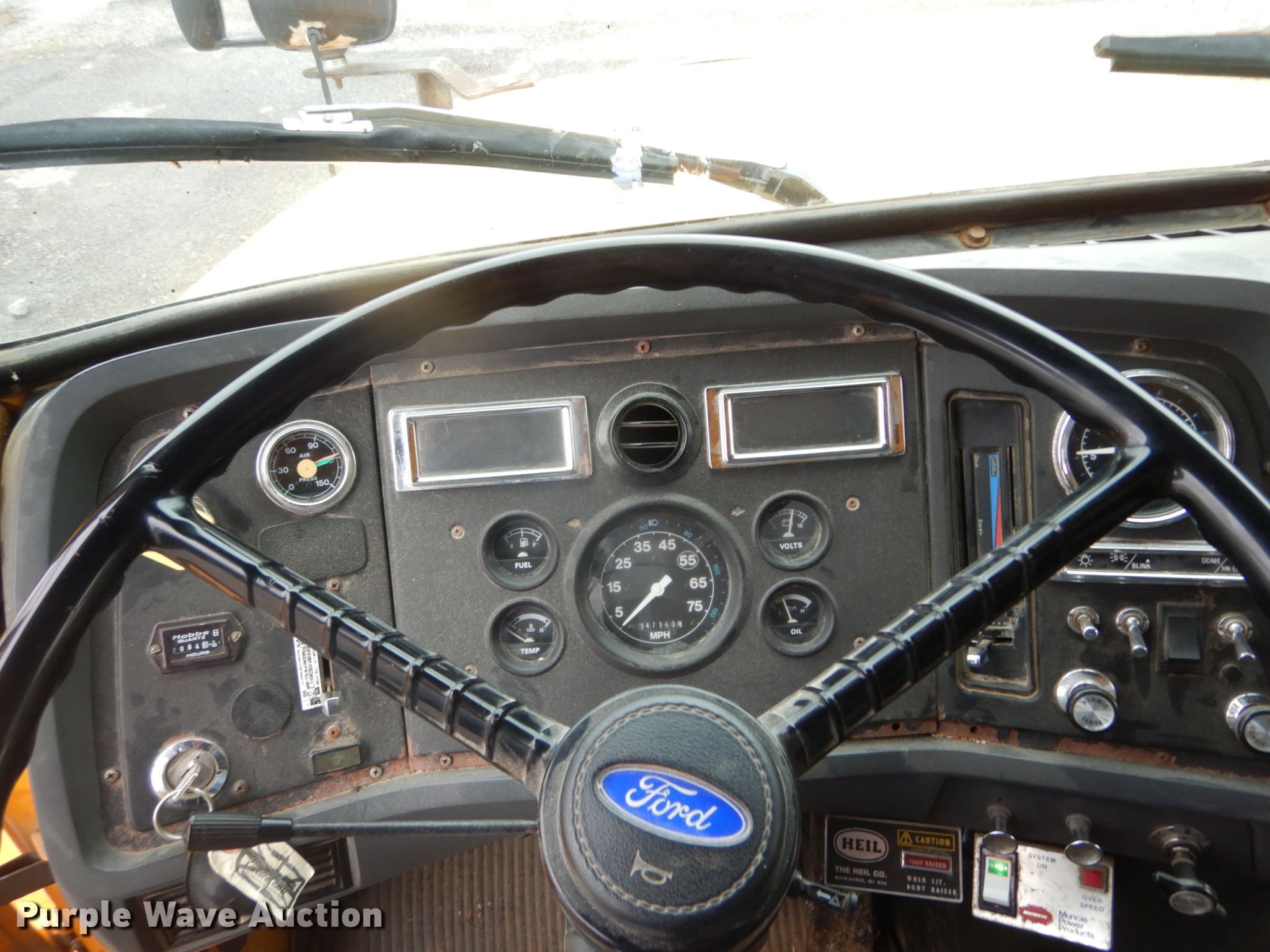 1991 Ford L8000 dump truck. 47,361 miles on odometer, Engine hours: 2,084. Engine Displacement: 7.8L, Cylinders: 6, Fuel type: Diesel. Transmission Automatic. Chassis Axles: Single, Suspension: Spring, Brakes: Air, PTO, Front mount PTO, GVWR: 34,520 lbs FAWR: 12,000 lbs, RAWR: 22,520 lbs, Wheelbase: 150". Interior Heat. Operational Dump bed 10' L x 96" W, Side height: 30", Side board height: 12", Bed type: Steel, Ram: Single , End gate: Manual. Tires Size: 11R22.5. Illinois title. 1FDYR82AXMVA01285. Mount Vernon Highway Department. 700 George St. Mount Vernon, IL 62864