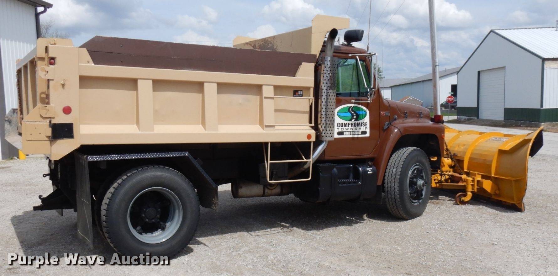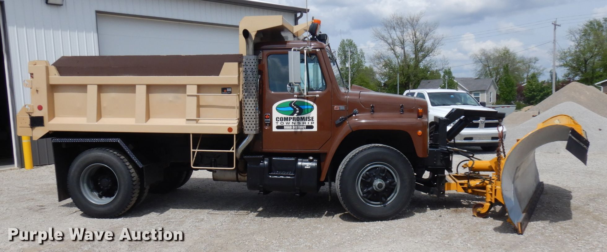 1987 International 1954 dump truck. 66,248 miles on odometer. Engine International DT466, Displacement: 7.6L, Cylinders: 6, Fuel type: Diesel. Transmission Automatic. Chassis Axles: Tandem, Suspension: Spring, Brakes: Air, PTO. Interior AC, Heat. Operational Dump bed Peabody, 10' L x 96" W, Side height: 30", Side board height: 11", Bed type: Steel, Ram: Single , End gate: Manual, Plow Fink 11PA4860A, Width: 132". Tires Size: 11R22.5. Illinois title. Seller is a government entity who will be assigning and distributing the title. Please contact the seller for distribution questions. 1HTLDTVN6HHA21140. COMPROMISE TOWNSHIP. 108 East Center Street. Penfield, IL 61862