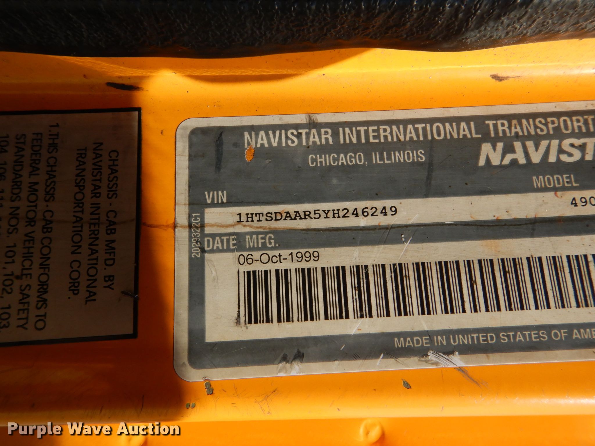 2000 International 4900 dump truck. 163,973 miles on odometer, Engine hours: 13,742, MODOT ID: 6169. Engine International DT466, Displacement: 7.6L, Cylinders: 6, Fuel type: Diesel. Transmission Allison, Automatic. Chassis Axles: Single, Suspension: Spring, Brakes: Air, Front mount PTO. Interior AC, Heat, Heated mirrors. Operational Dump bed Viking Cives, 10' L x 96" W, Side height: 24", Bed type: Steel, Ram: Single , End gate: Air operated, Spreader Flink. Tires Size: 11R22.5. Notes Dash warning indicator: Brake. Missouri title. Title distribution may be delayed up to 14 days from verification of funds. 1HTSDAAR5YH246249. Missouri Department of Transportation (MODOT). 2309 Barrett Station Rd. Ballwin, MO 63021