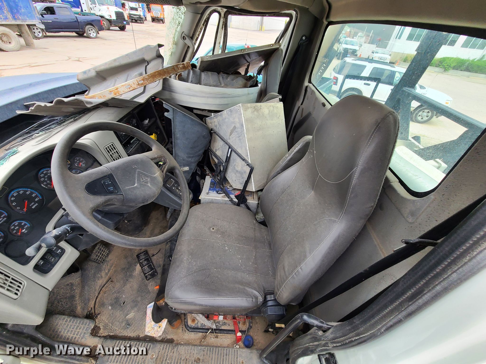 2015 International WorkStar 7400 sewer jetter truck. Unknown miles on odometer, Unit #: 2351. Engine International MaxxForce, Displacement: 9.3L, Cylinders: 6, Fuel type: Diesel. Transmission Automatic. Chassis Axles: Tandem, Suspension: Walking beam, Brakes: Air. Interior AC, Heat. Operational Tank bed Vactor 2100 Plus, Serial: 14-09V-14954, Hose reel Front. Tires Front: 425/65R22.5, Rear: 11R22.5. Notes Wreck damage, Non-operational unit. Missouri title. 1HTWGAZT5FH550056. City of Kansas City, Missouri - Open inspection June 21. 5300 Municipal. Kansas City, MO 64120