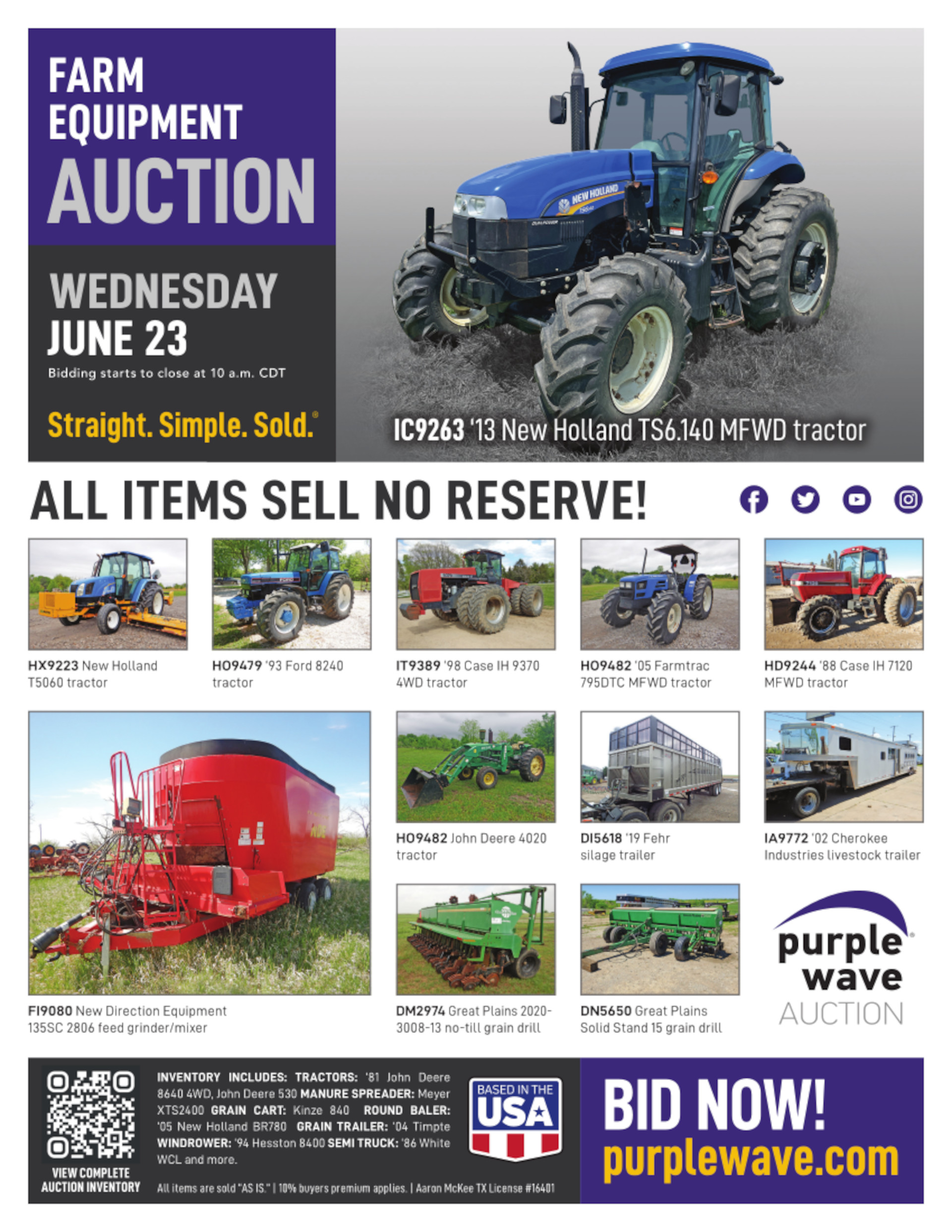 This auction is conducted by Purple Wave, Inc., whose home office is 825 Levee Drive, Manhattan, Kansas. Aaron McKee, Texas auctioneer license # 16401, operates Purple Wave, Inc. Complaints against us may be directed to the Texas Department of Licensing and Regulation, P.O. Box 12157, Austin, Texas 78711, (512) 463-6599. For additional required information, see the attached document.