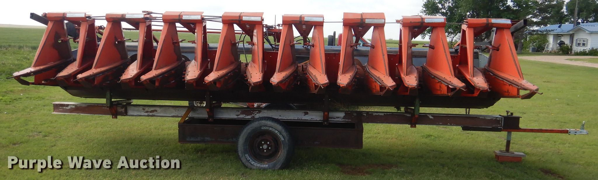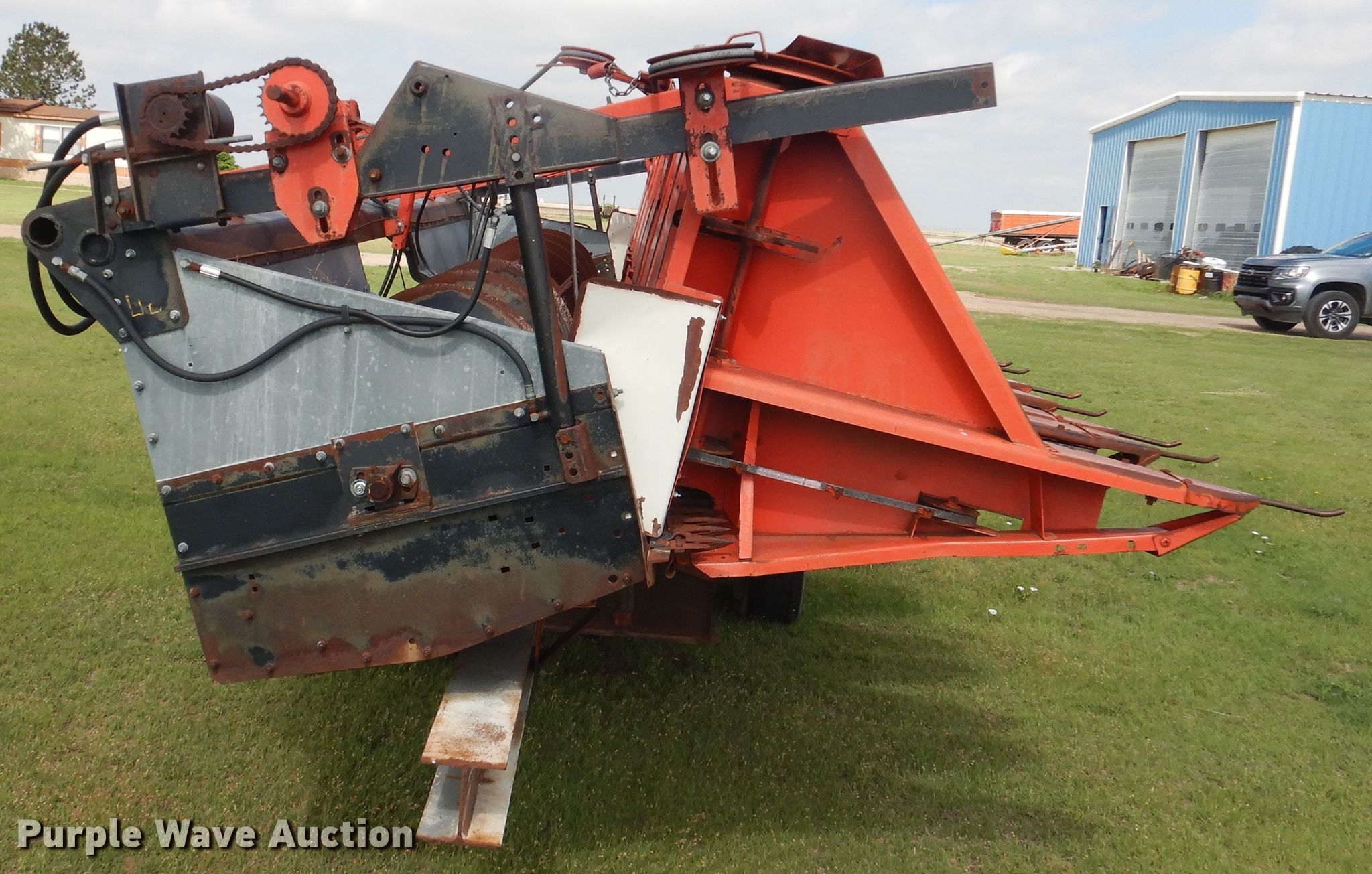 Purple Wave is selling a used Corn or Row Head in Oklahoma. This item is a Allis Chalmers rigid head with the following: Serial: LMG51893N-83