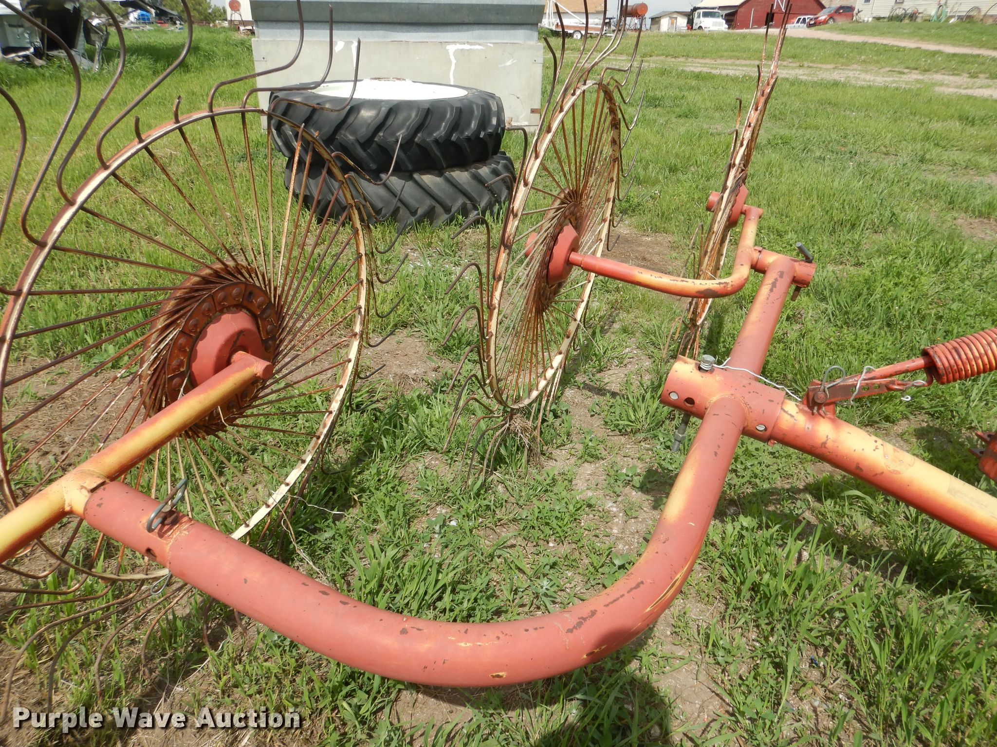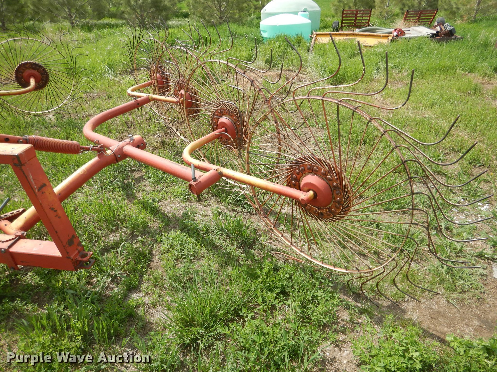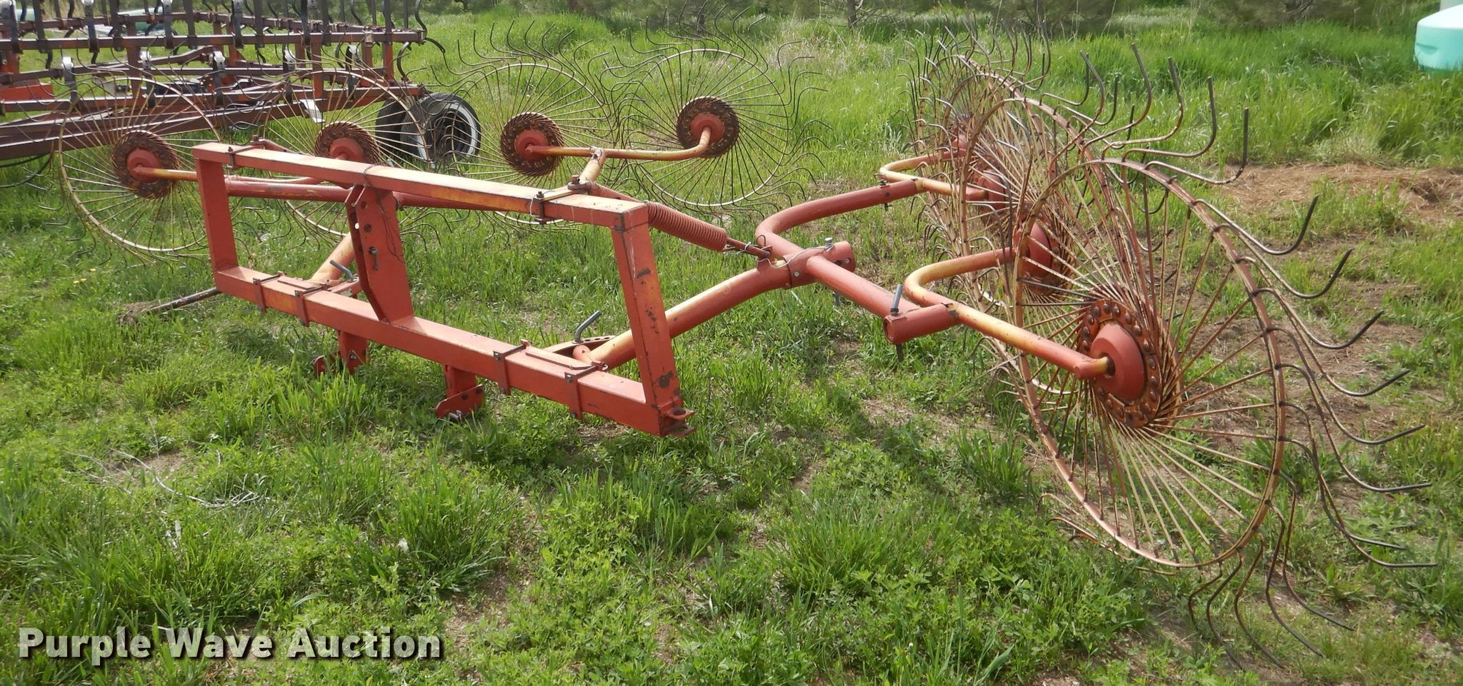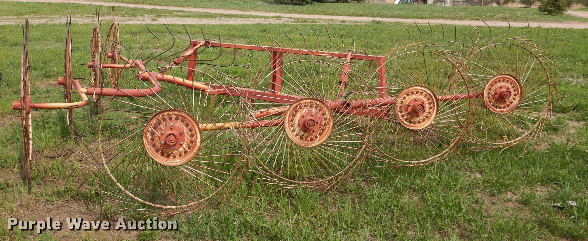 Purple Wave is selling a used Hay Rake in Nebraska. This item is a Vicon hay rake with the following: (8) wheels, Hitch: Three point, Serial 4400402081