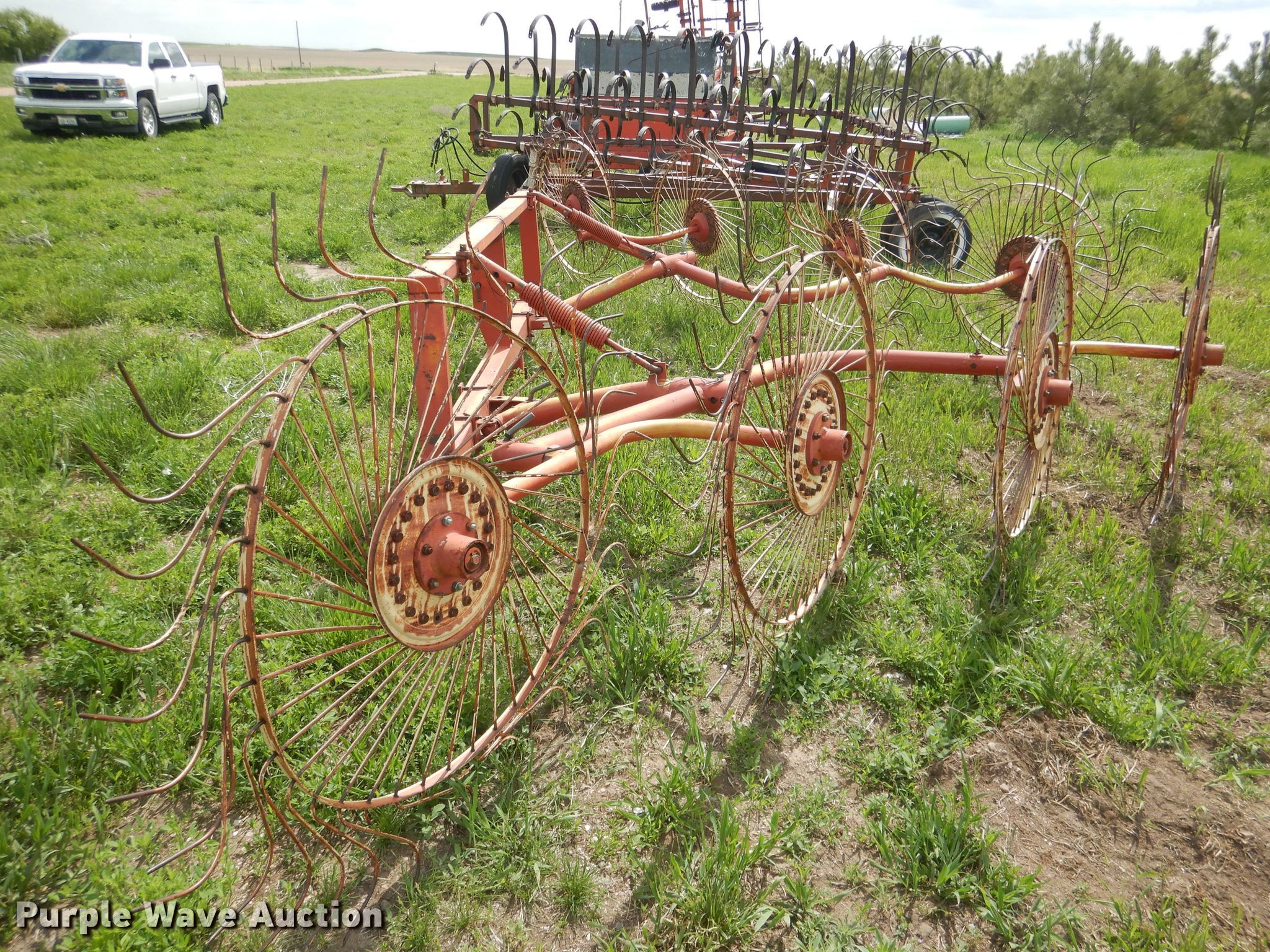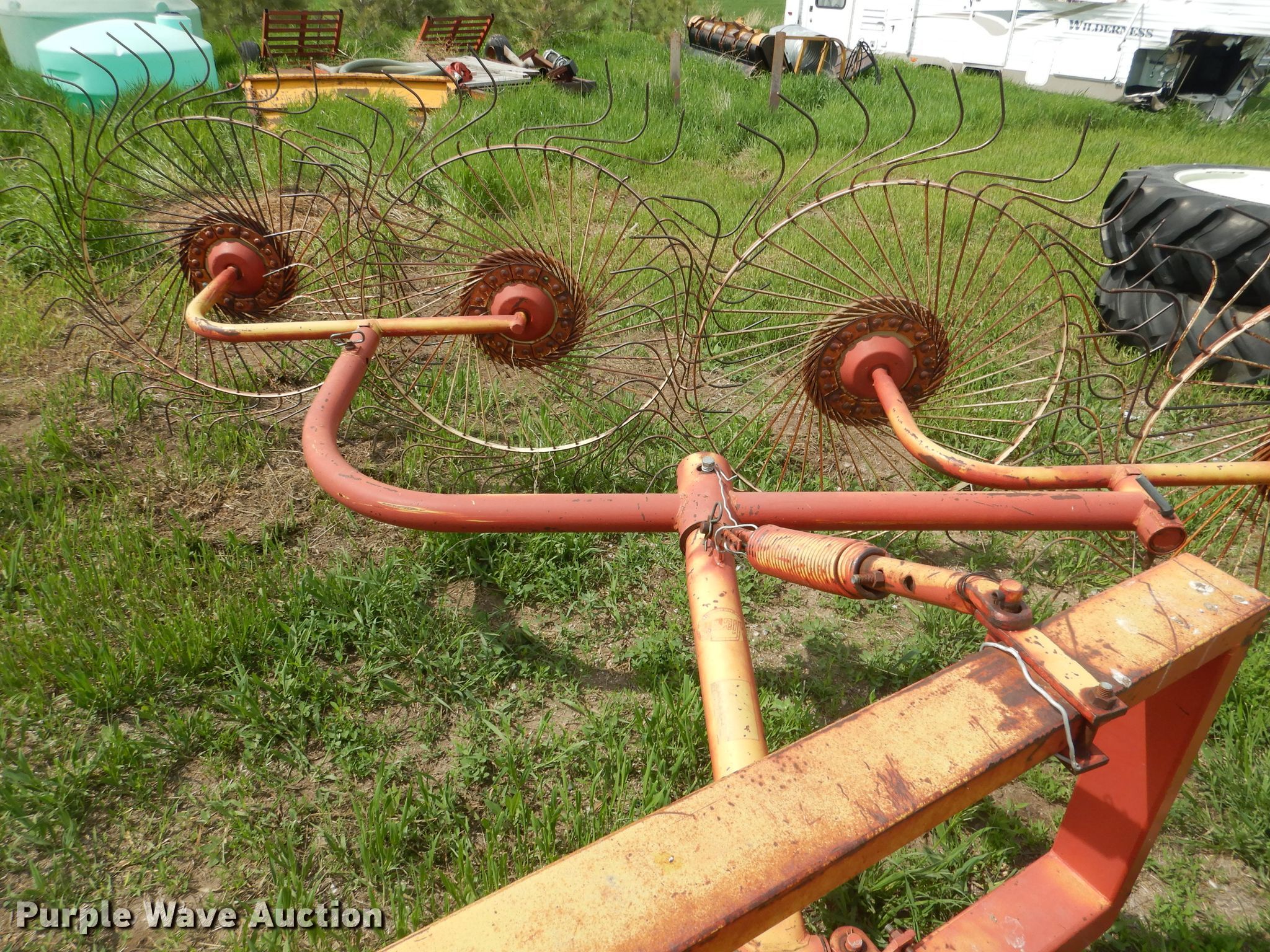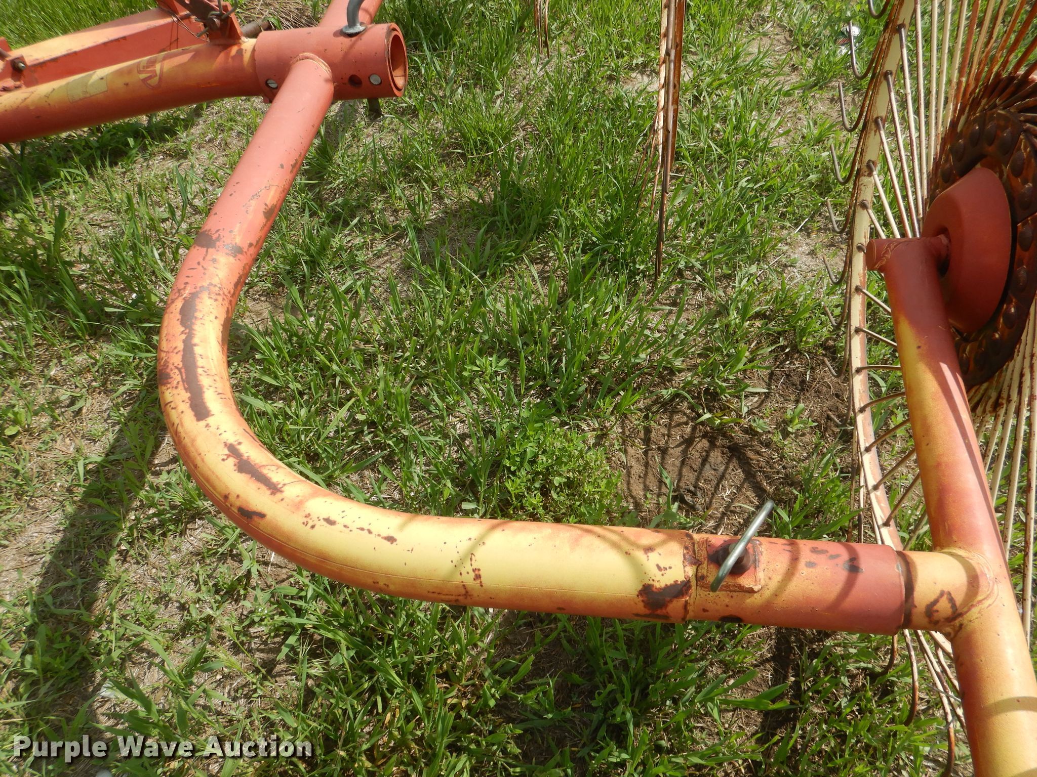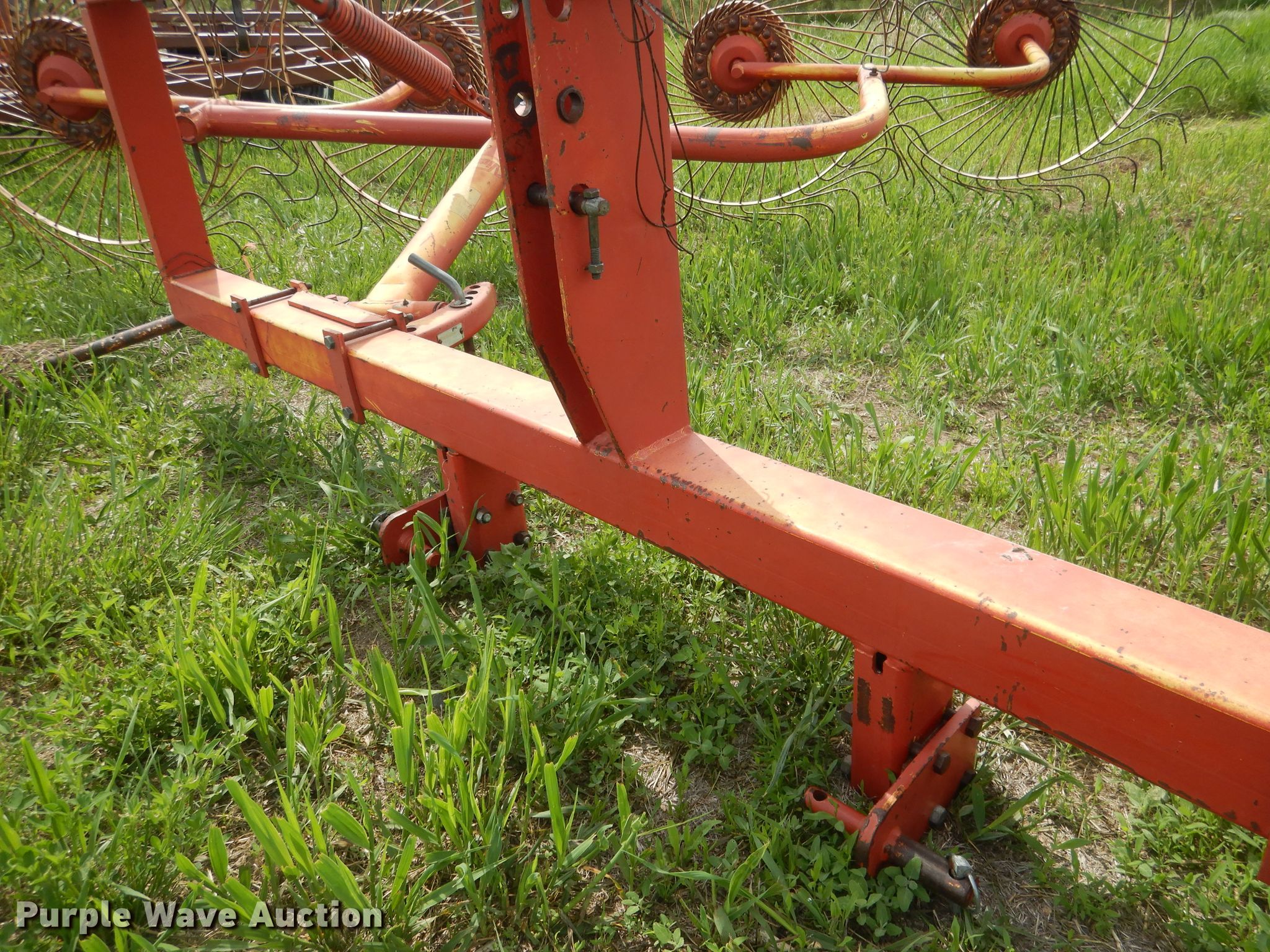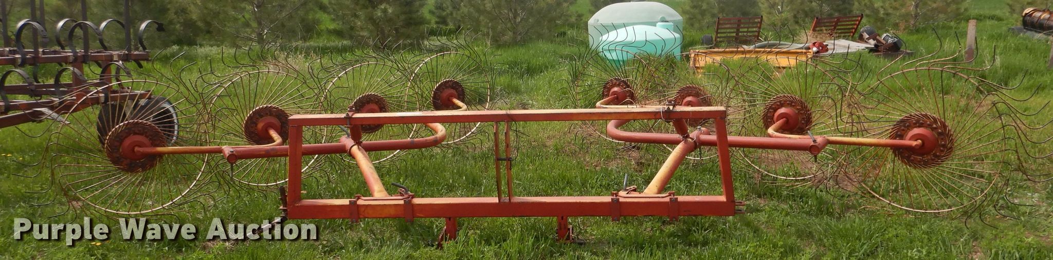 Purple Wave is selling a used Hay Rake in Nebraska. This item is a Vicon hay rake with the following: (8) wheels, Hitch: Three point, Serial 4400402081