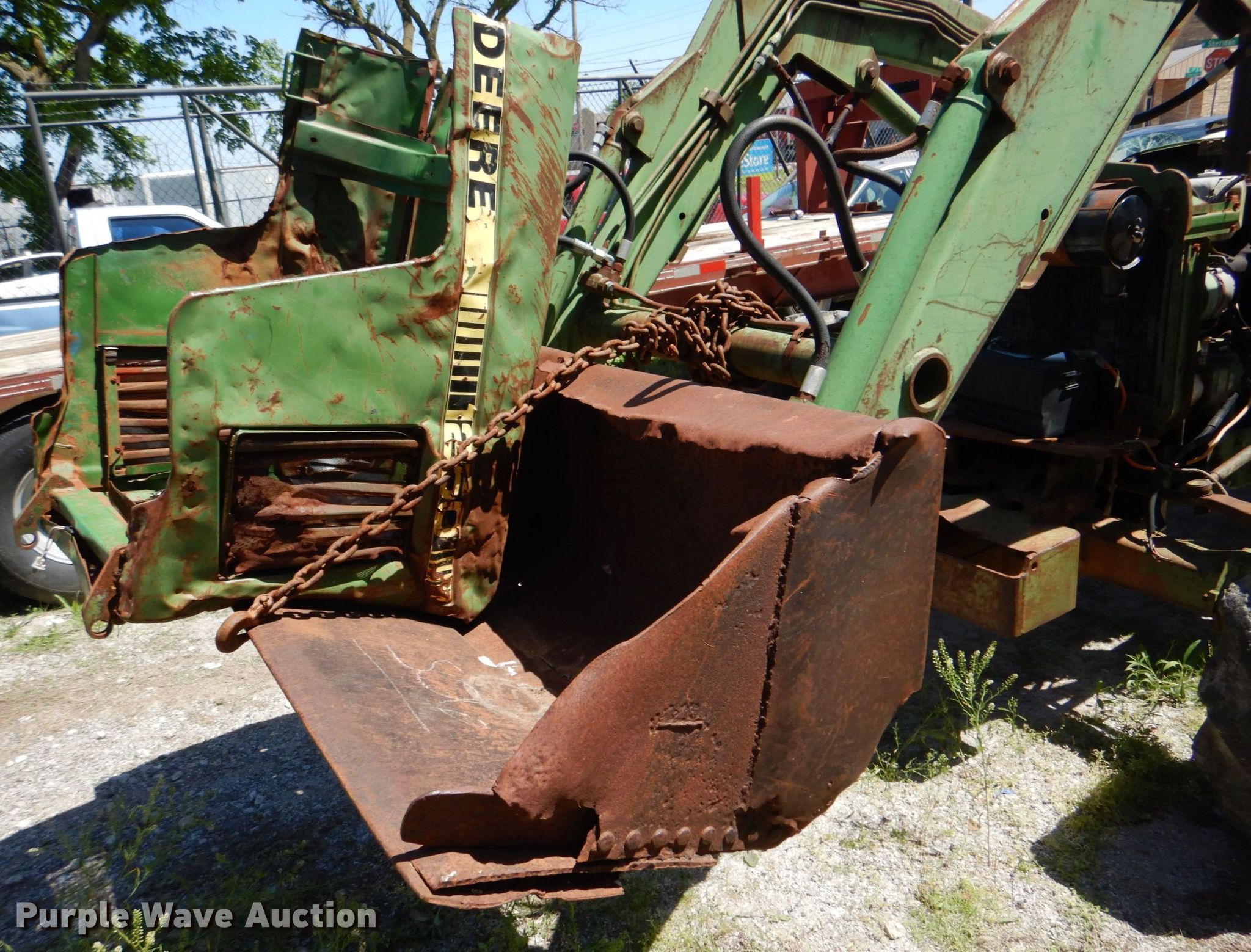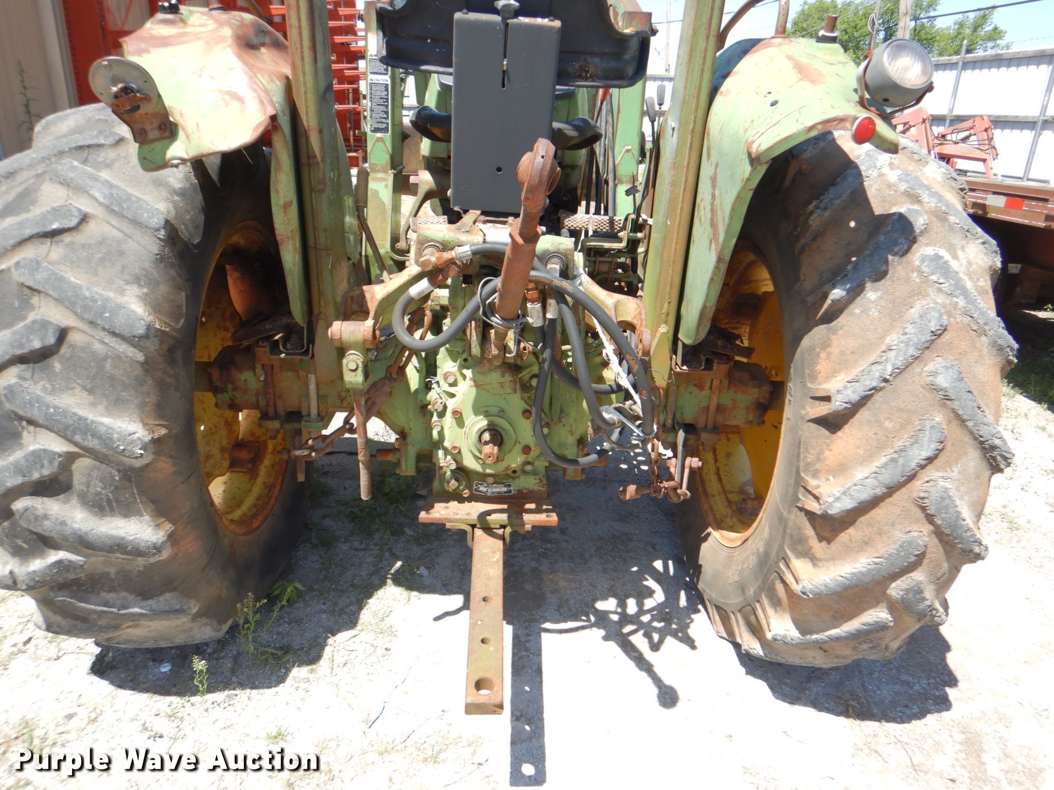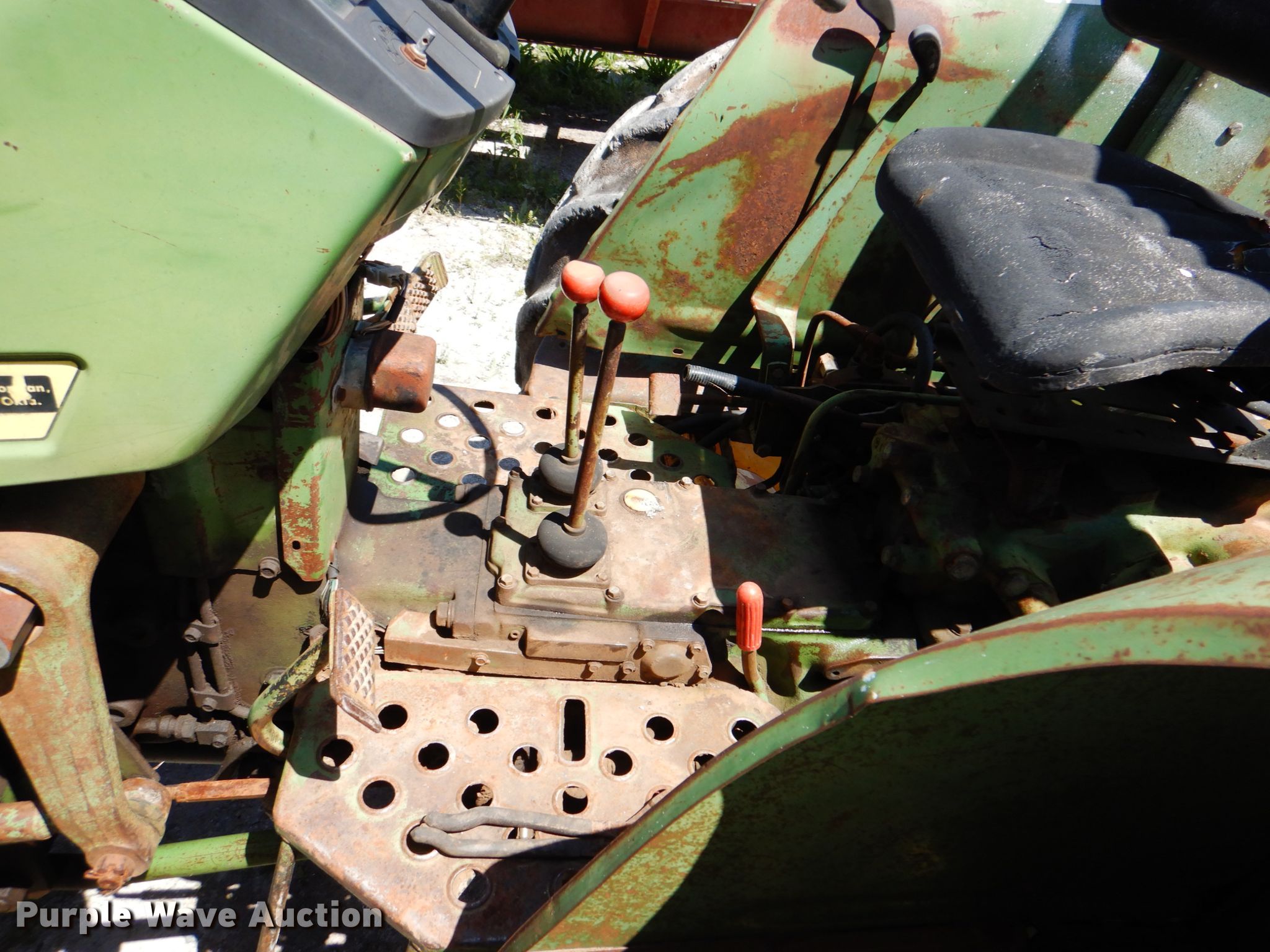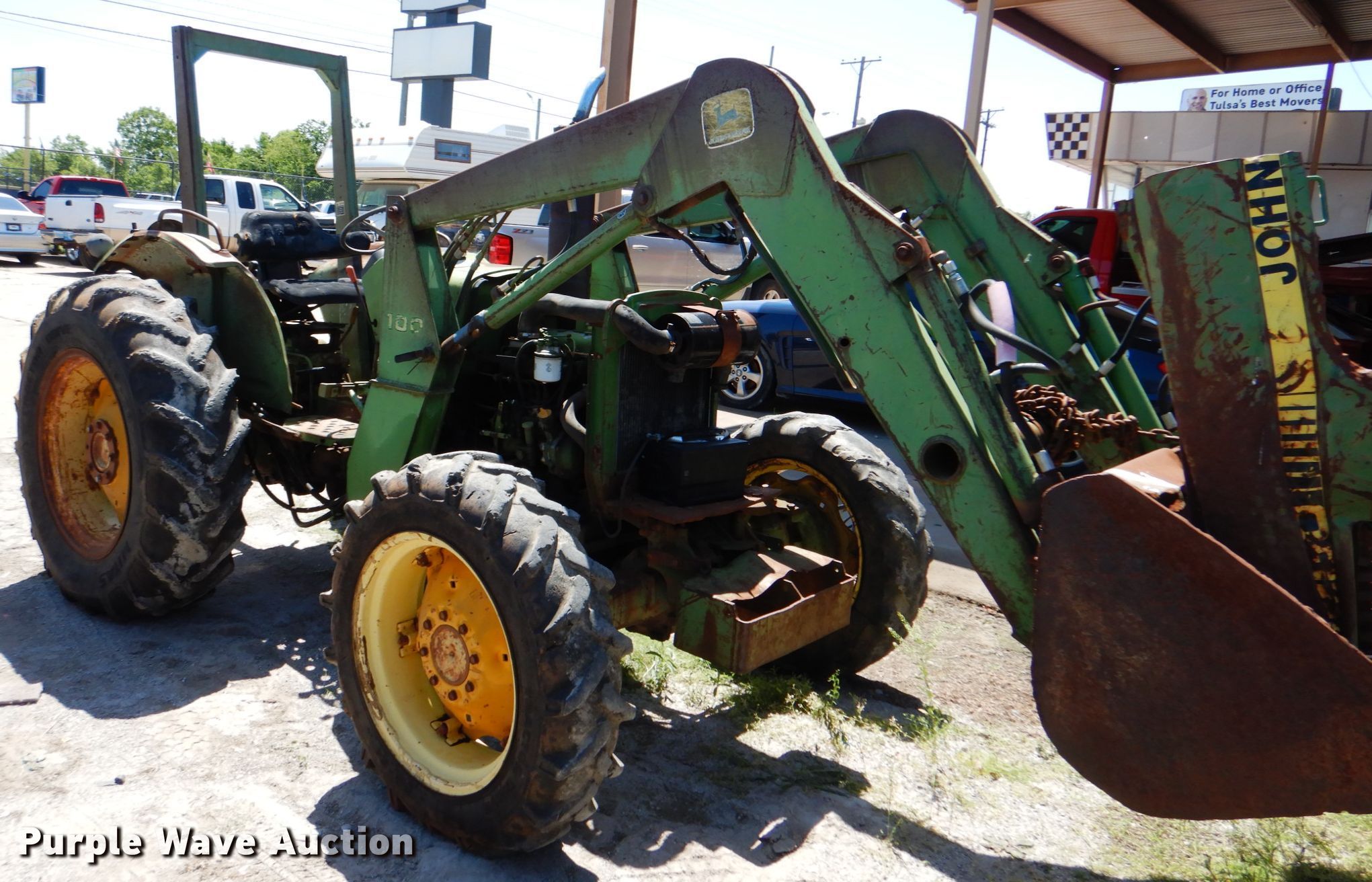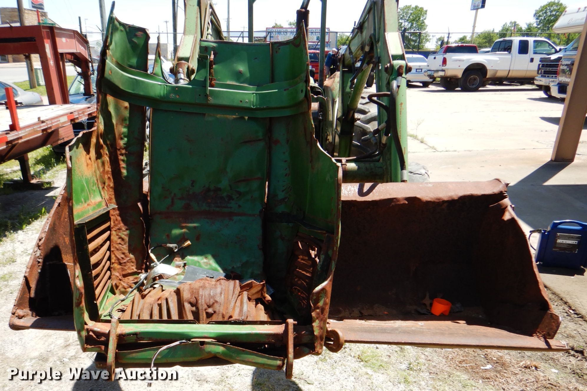 John Deere 1250 tractor. 1,594 hours on meter, Serial: CH1250A0041044. Engine John Deere 3T95J, Serial: CH3078DC020984, Displacement: 2.3L, Cylinders: 3, Fuel type: Diesel, HP: 44. Transmission Manual, 9F - 3R. Operational PTO: 540, Three point, Hydraulic remote sets Rear: 2, Loader Controls: Two lever, Bucket Width: 24".. Tires Front: 9.5-24, Rear: 14.9-28, Wheelbase: 78". Notes Tires damaged, may need to be replaced. S.S. Services. 5523 E Archer St N. Tulsa, OK 74115
