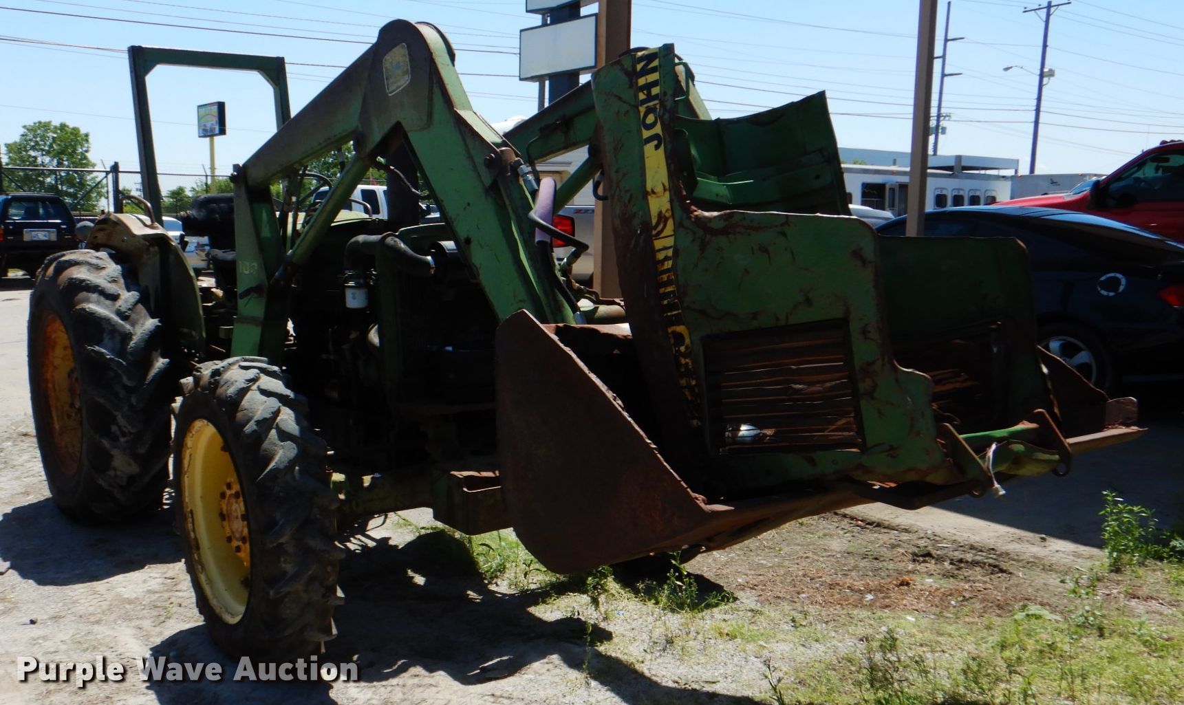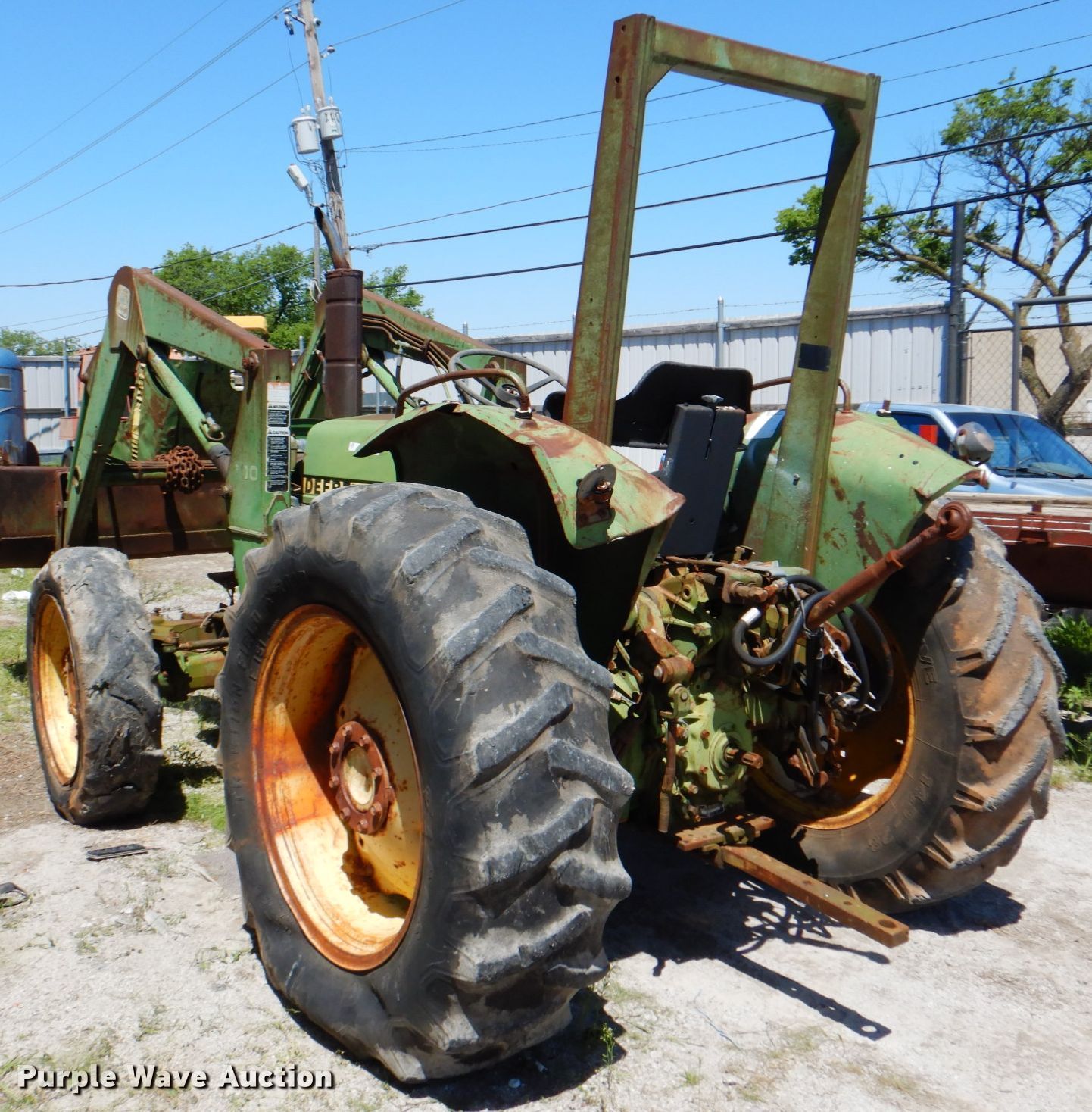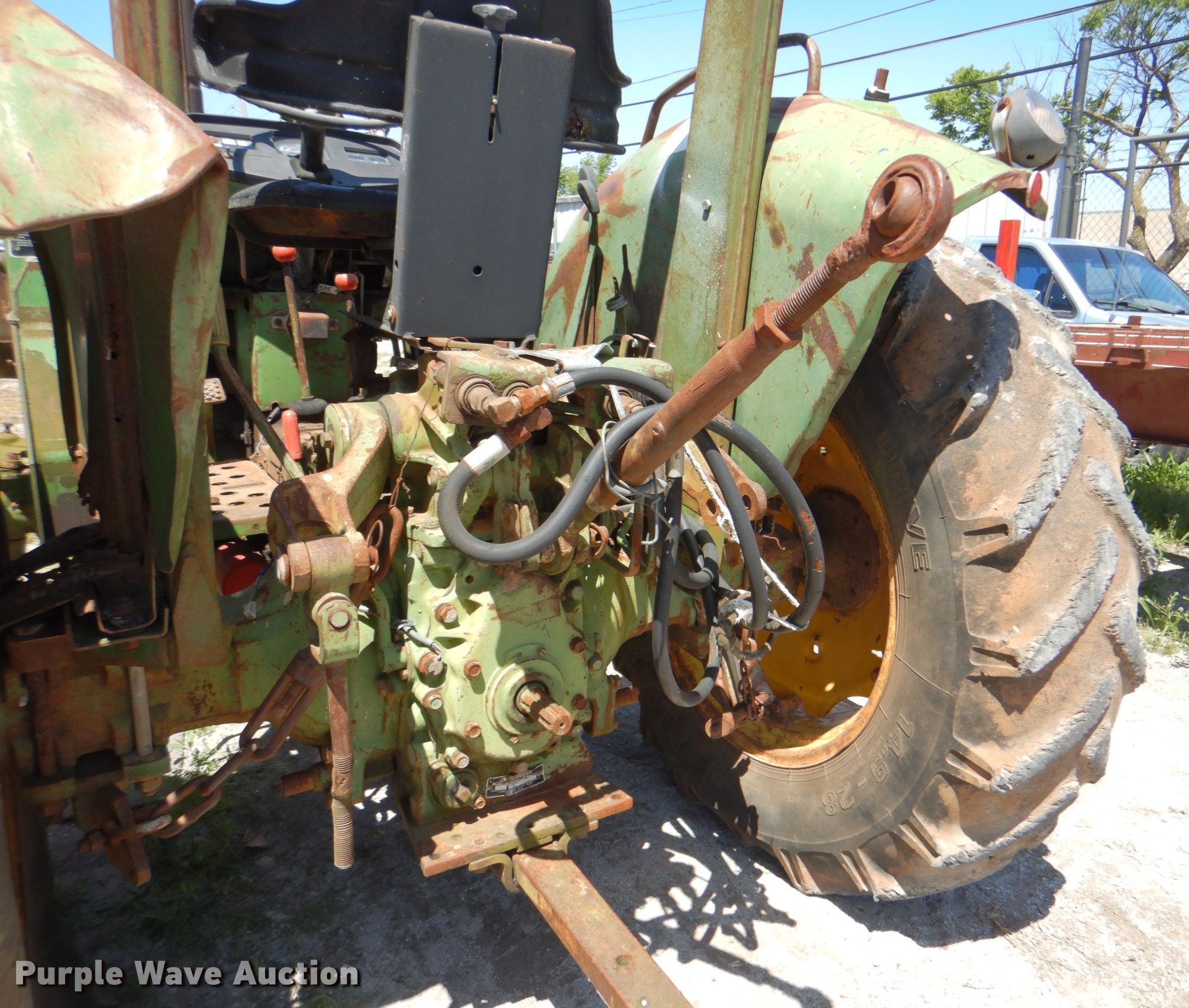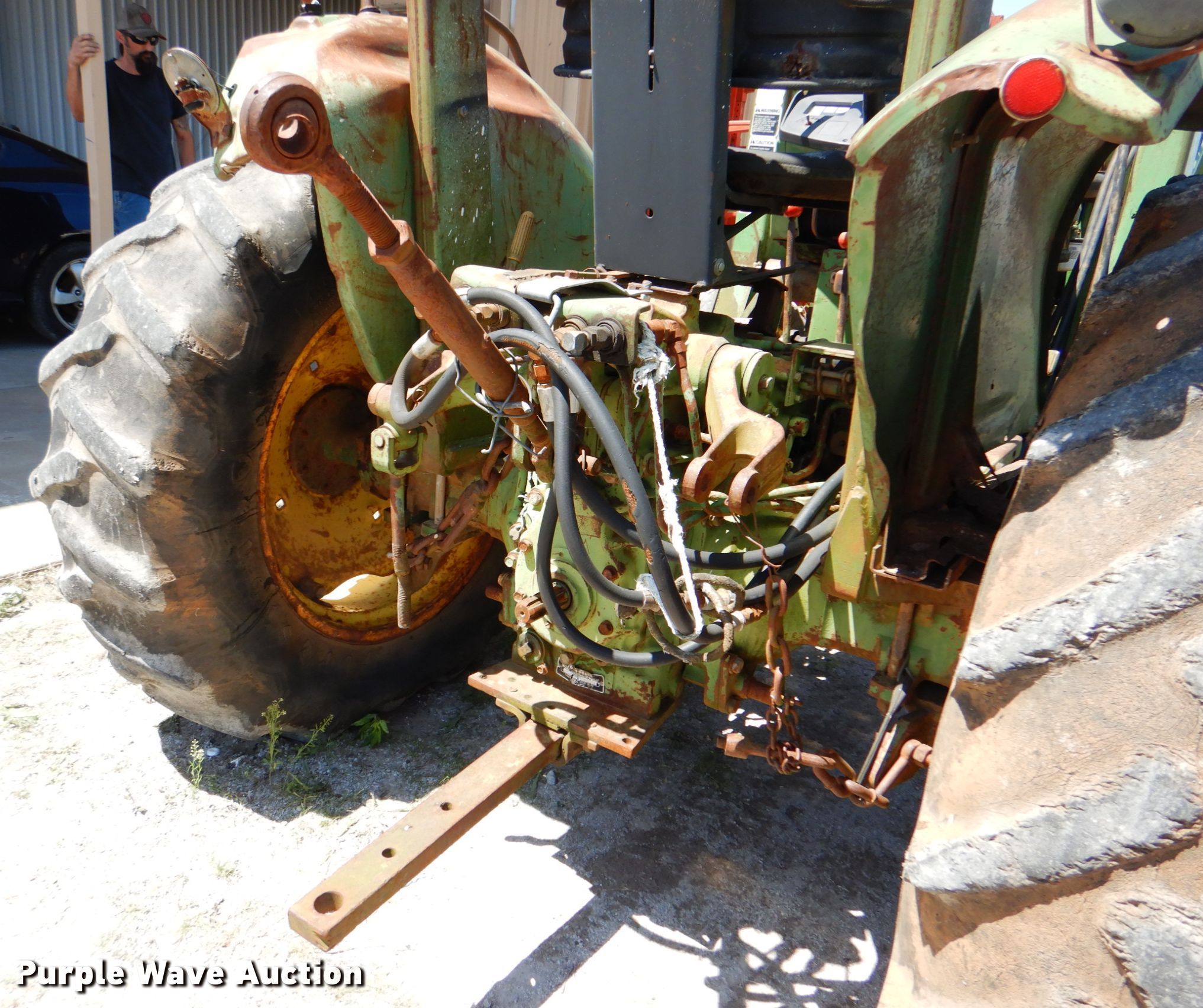 John Deere 1250 tractor. 1,594 hours on meter, Serial: CH1250A0041044. Engine John Deere 3T95J, Serial: CH3078DC020984, Displacement: 2.3L, Cylinders: 3, Fuel type: Diesel, HP: 44. Transmission Manual, 9F - 3R. Operational PTO: 540, Three point, Hydraulic remote sets Rear: 2, Loader Controls: Two lever, Bucket Width: 24".. Tires Front: 9.5-24, Rear: 14.9-28, Wheelbase: 78". Notes Tires damaged, may need to be replaced. S.S. Services. 5523 E Archer St N. Tulsa, OK 74115