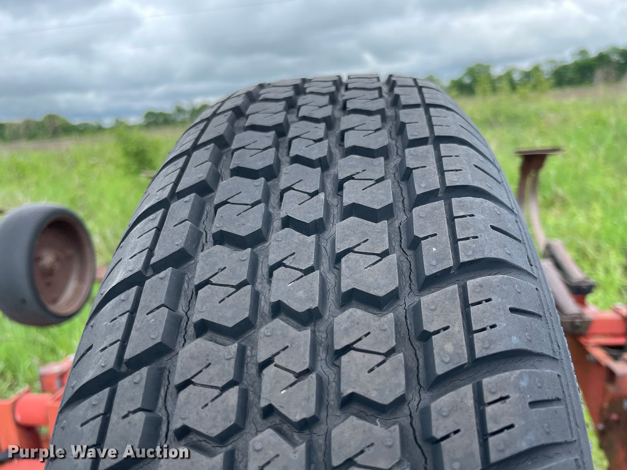 Case IH row crop cultivator. Overall width: 31' 10". Operational Number of rows: 12, Row spacing: 12", Disk openers: Double, Shanks, Hitch: Three point. Tires Tire size: 185/80-13. Works Farms. 720 600th St. Humboldt, KS 66748