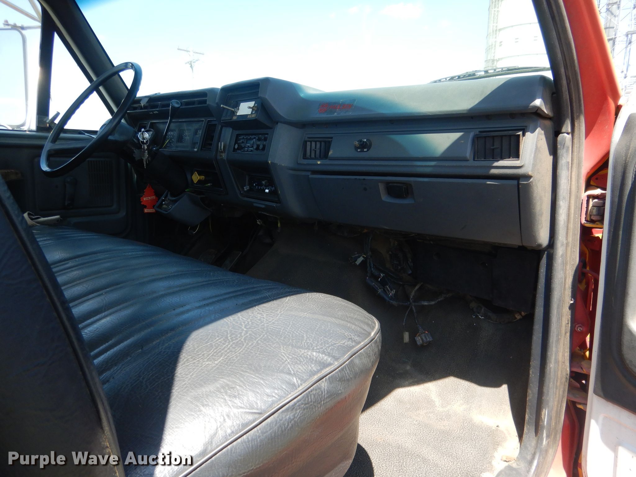 This 1991 Ford F700 truck cab and chassis will sell to the highest bidder regardless of price.