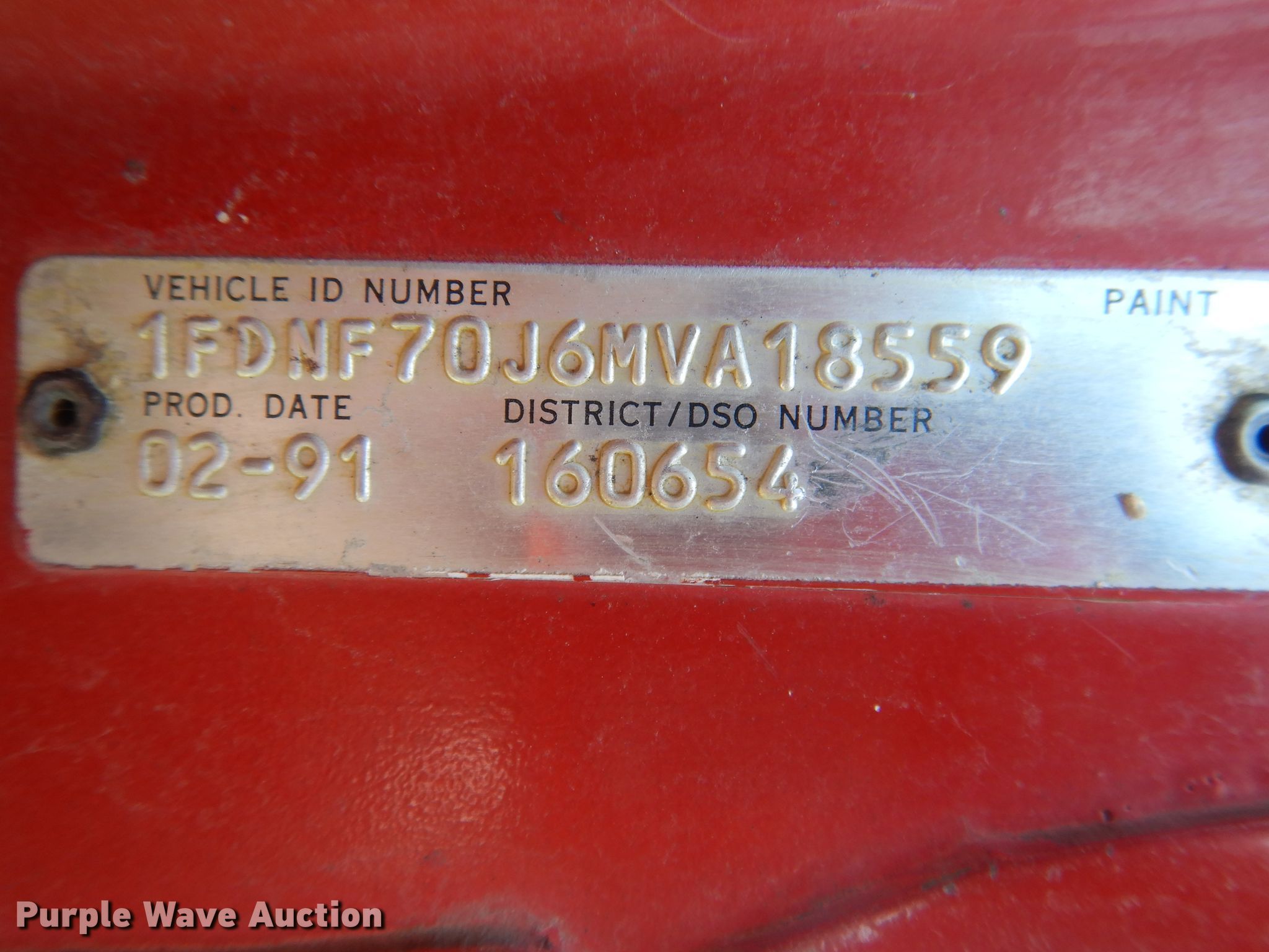 1991 Ford F700 truck cab and chassis. 220,104 miles on odometer. Engine Displacement: 7.0L, Cylinders: 8, Fuel type: Gas. Transmission Allison, Automatic. Chassis Axles: Single, Suspension: Spring, Brakes: Air, Truck chassis: 219", GVWR: 24,500 lbs, Wheelbase: 255". Interior AC, Heat. Tires Size: 11R22.5. Nebraska title. 1FDNF70J6MVA18559. Paulsen Inc.. Cozad, NE 69130
