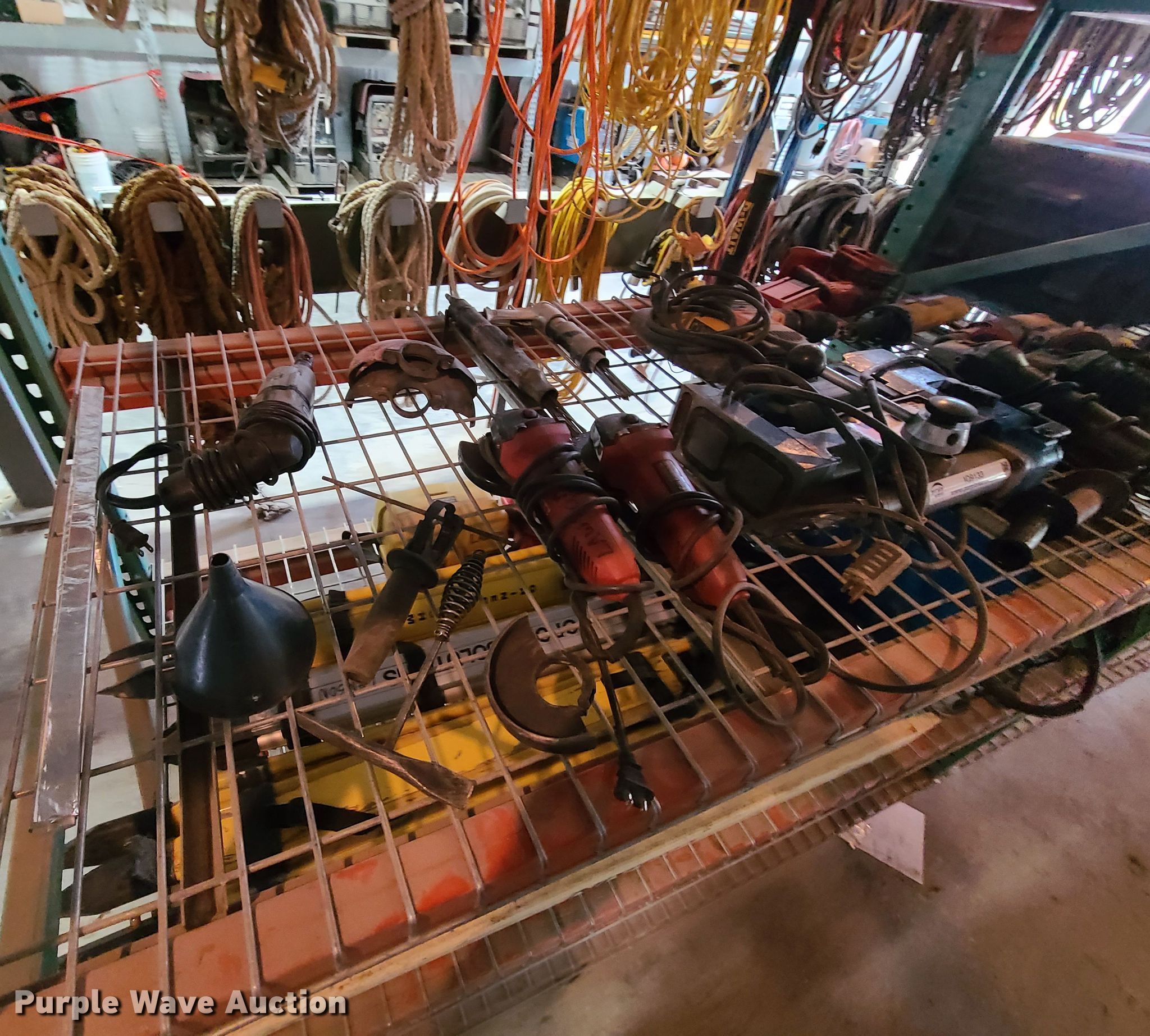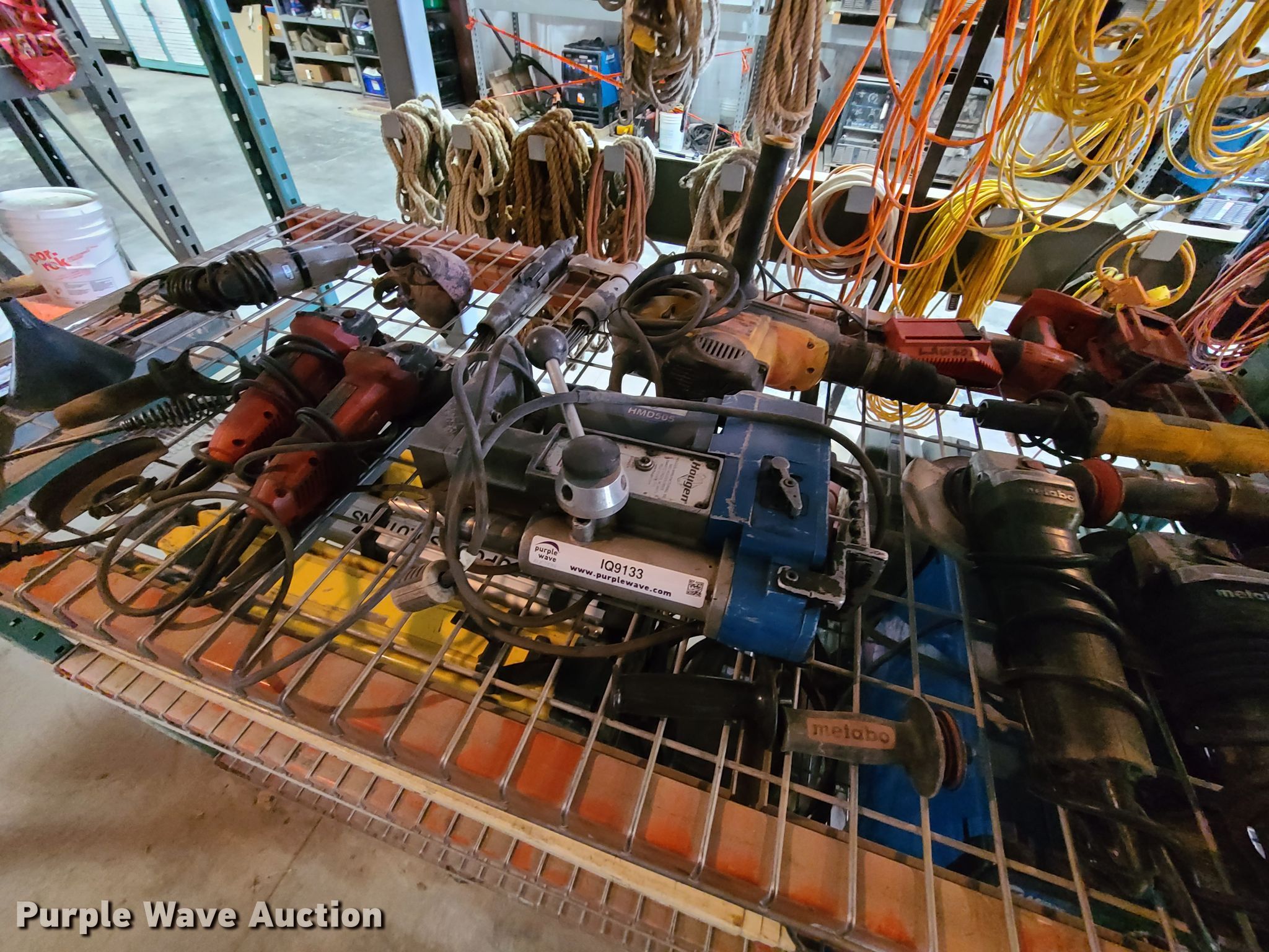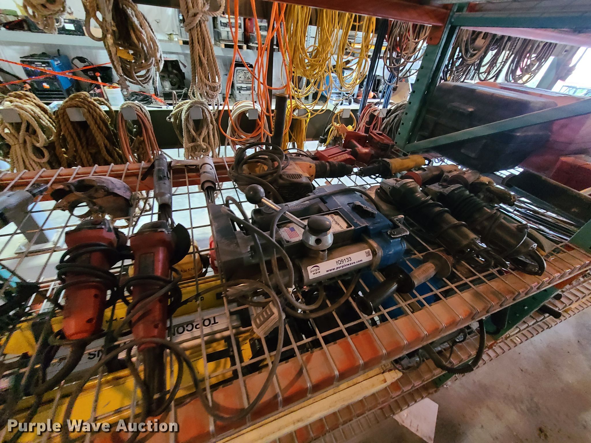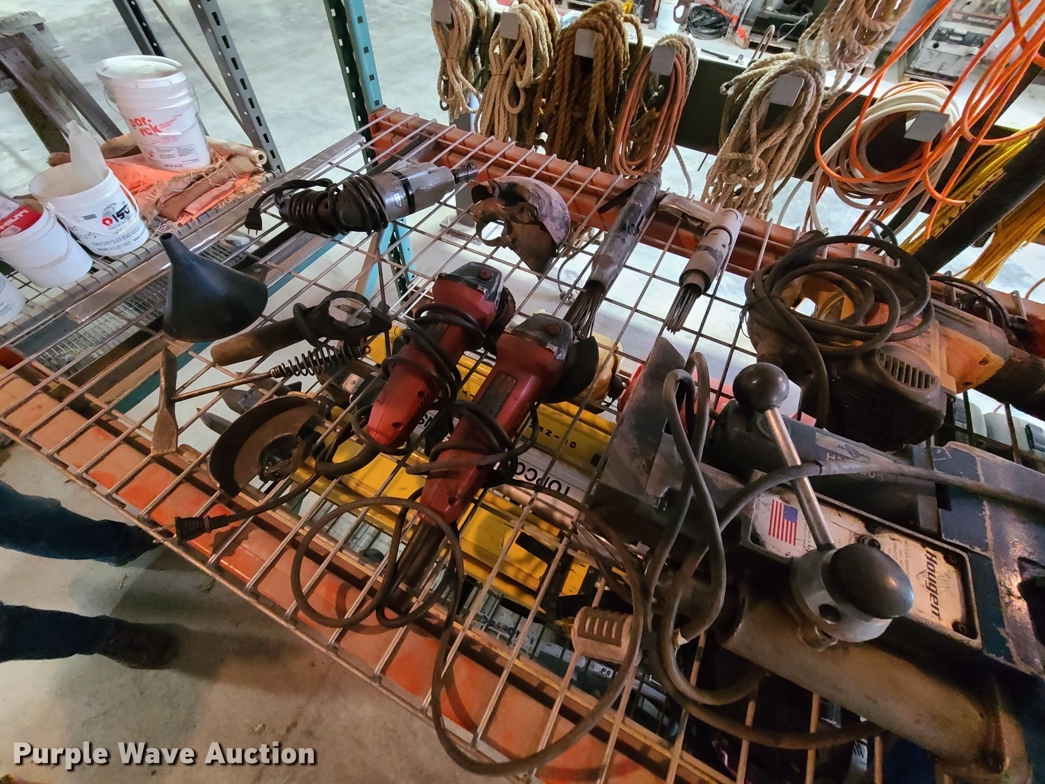 Purple Wave is selling a used Tools in Missouri. This item is a Tools with the following: Grinders, Mag drill, Electric drills, Survey equipment, Miller 118 welder, Weed eater, Bolt cutters, Pry bars, Levels, Saws, Air compressor