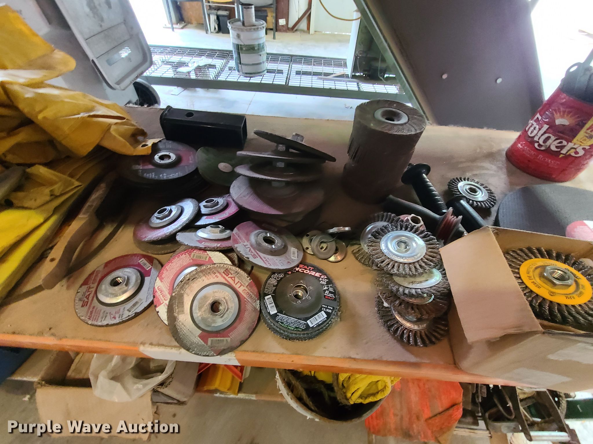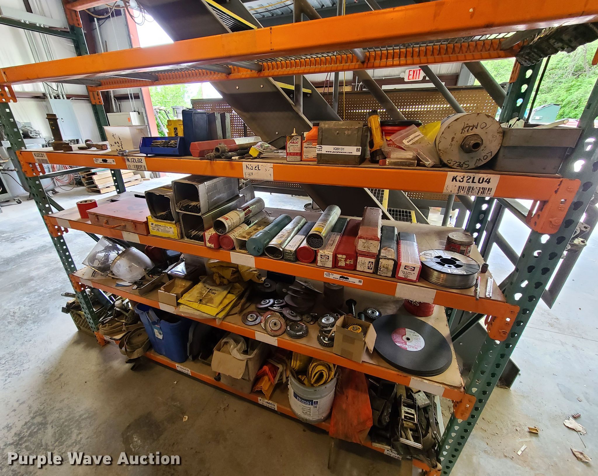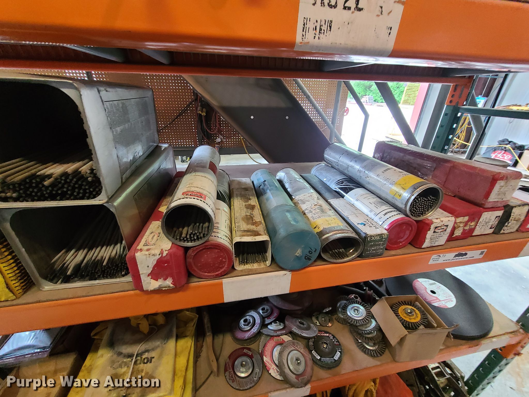 Purple Wave is selling a used Tools in Missouri. This item is a Tools with the following: Welding rods, Straps, Grinding disks, Welding supplies, Drill bits