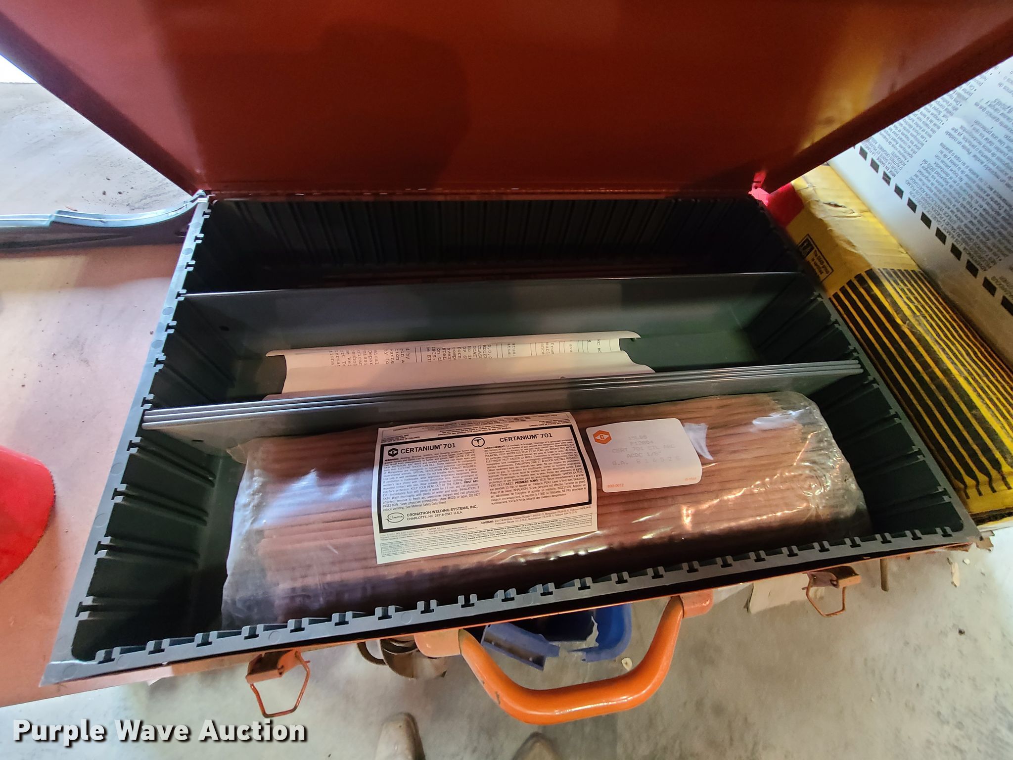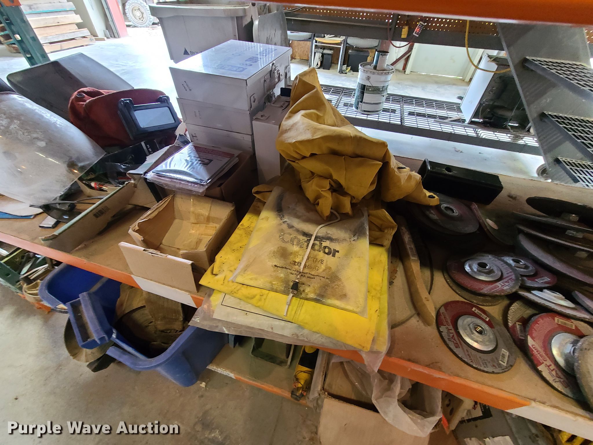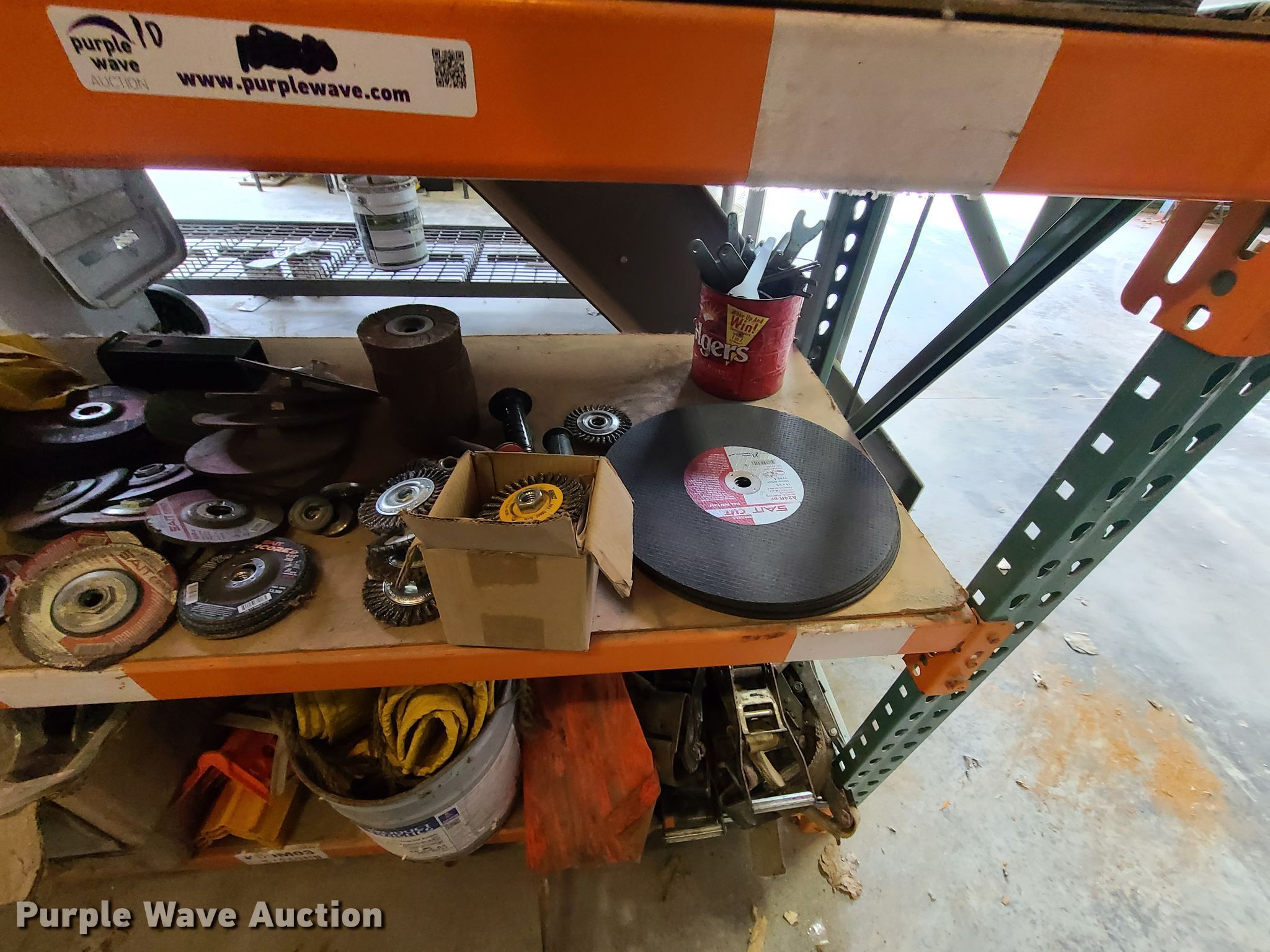 Purple Wave is selling a used Tools in Missouri. This item is a Tools with the following: Welding rods, Straps, Grinding disks, Welding supplies, Drill bits