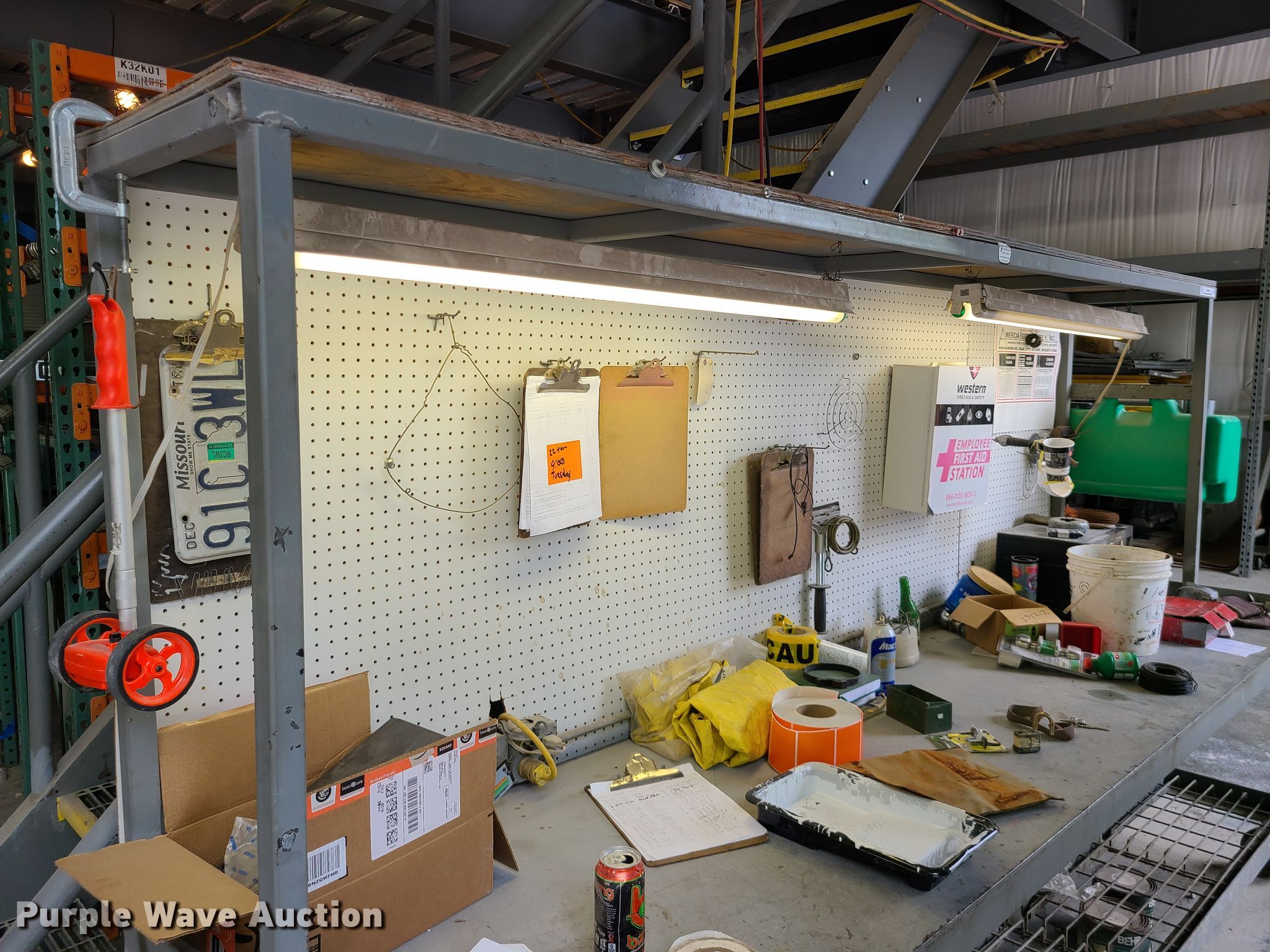 Purple Wave is selling a used Tools in Missouri. This item is a Work bench with the following: Steel, 10.5' L x 32" W x 34" T, Contents not included
