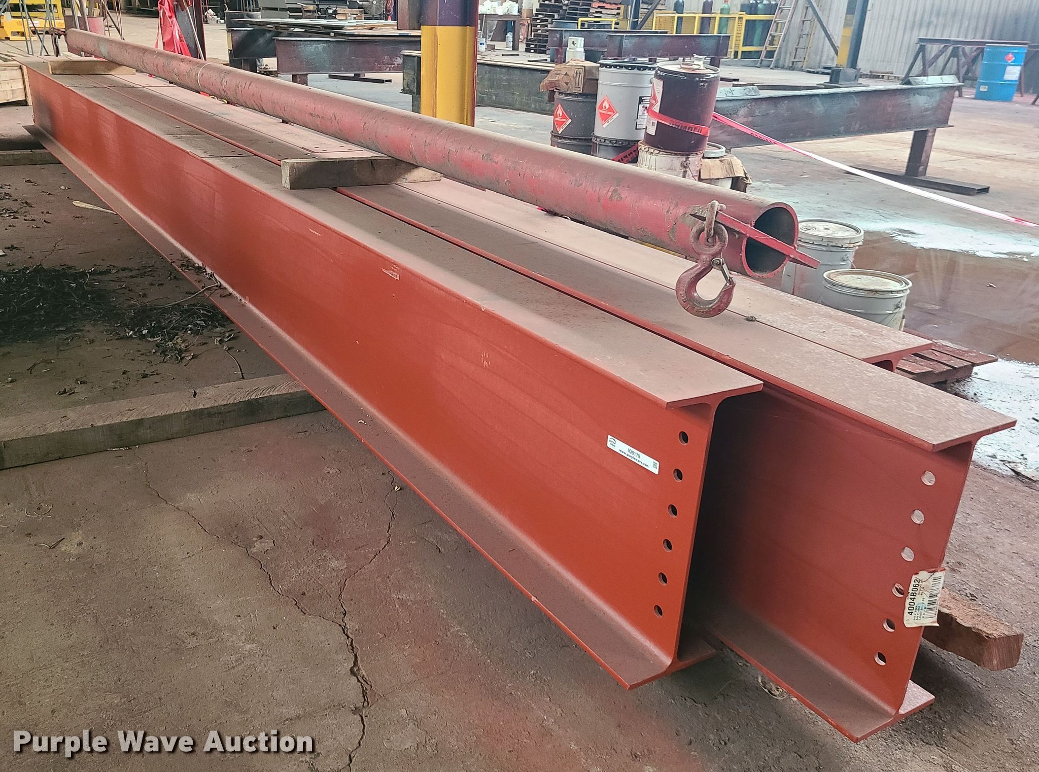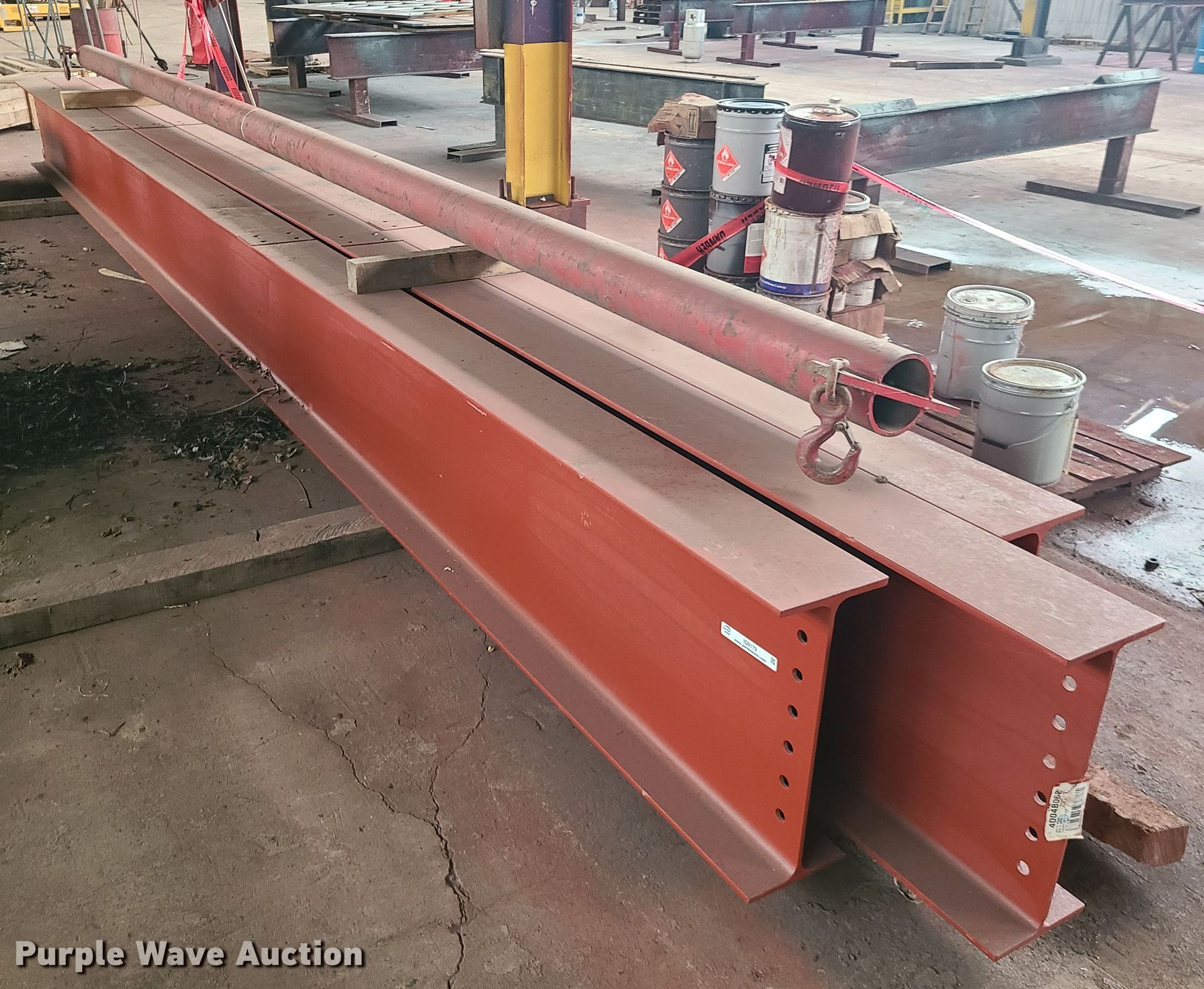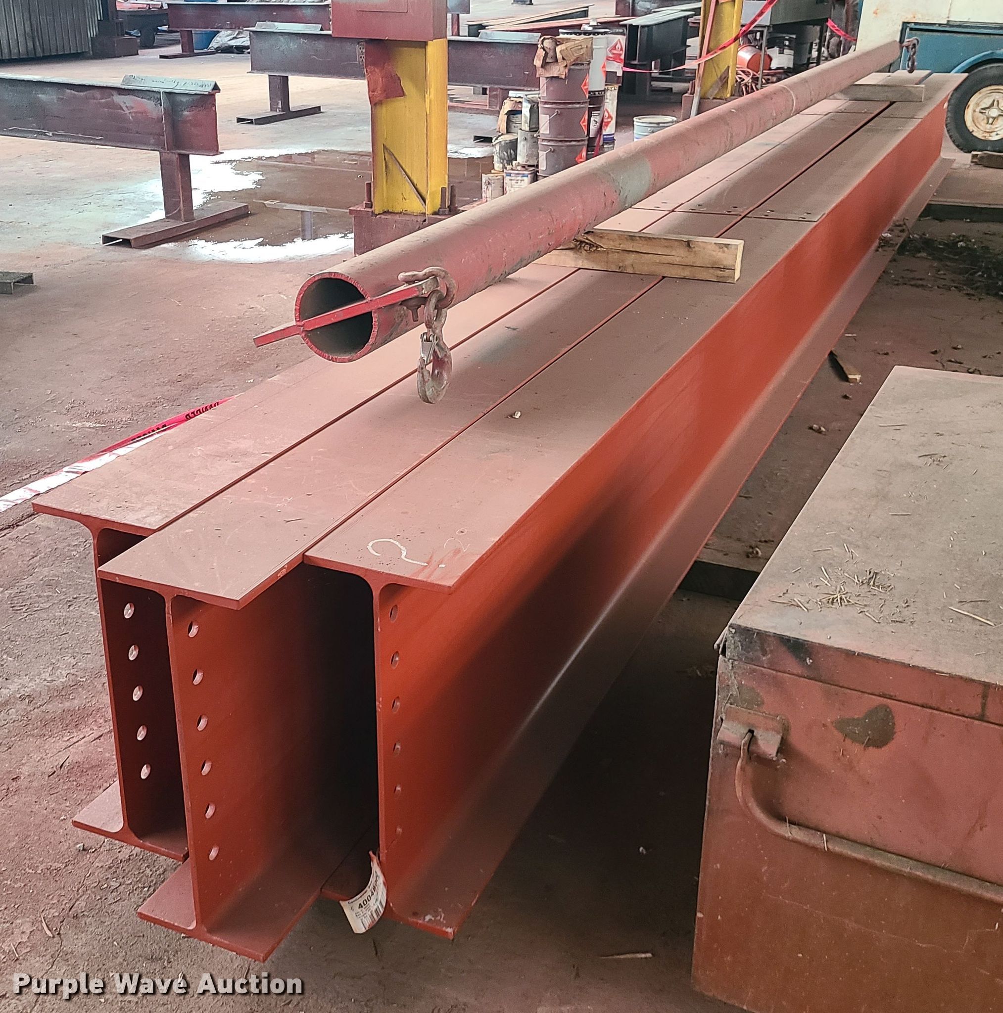 Purple Wave is selling a used Building Materials in Missouri. This item is a (3) I-beams with the following: Approx. 28'9"L x 9"W x 24"H, (2) approx. 30'2"L x 9"W x 24"H, 25'L spreader bar