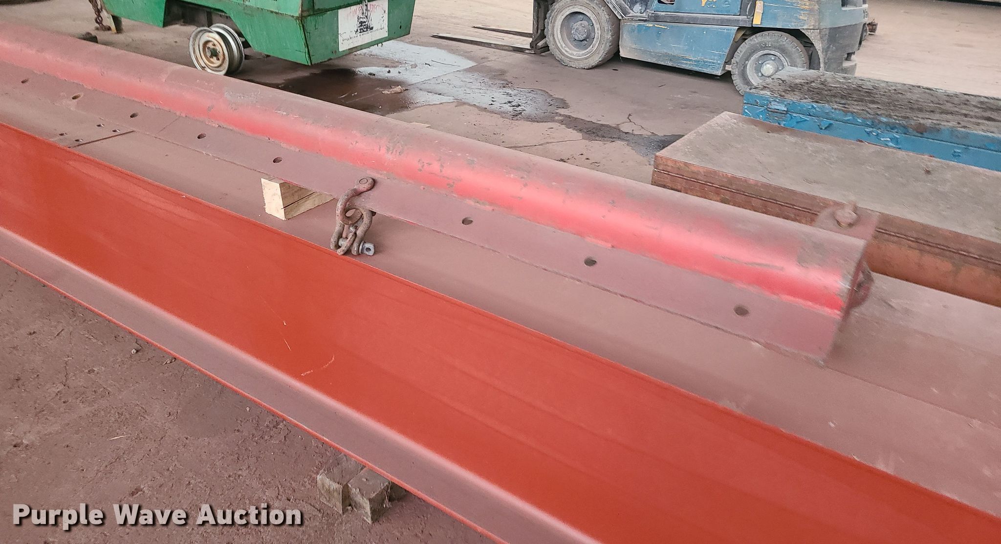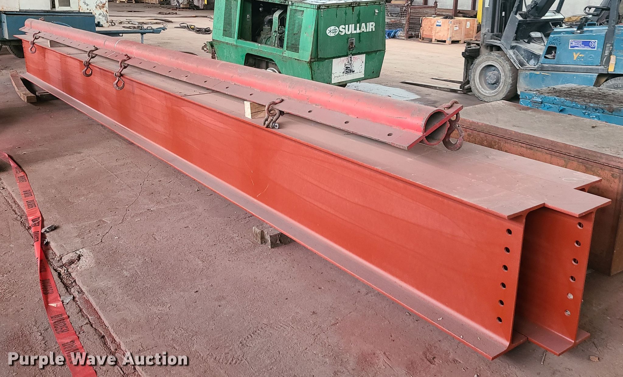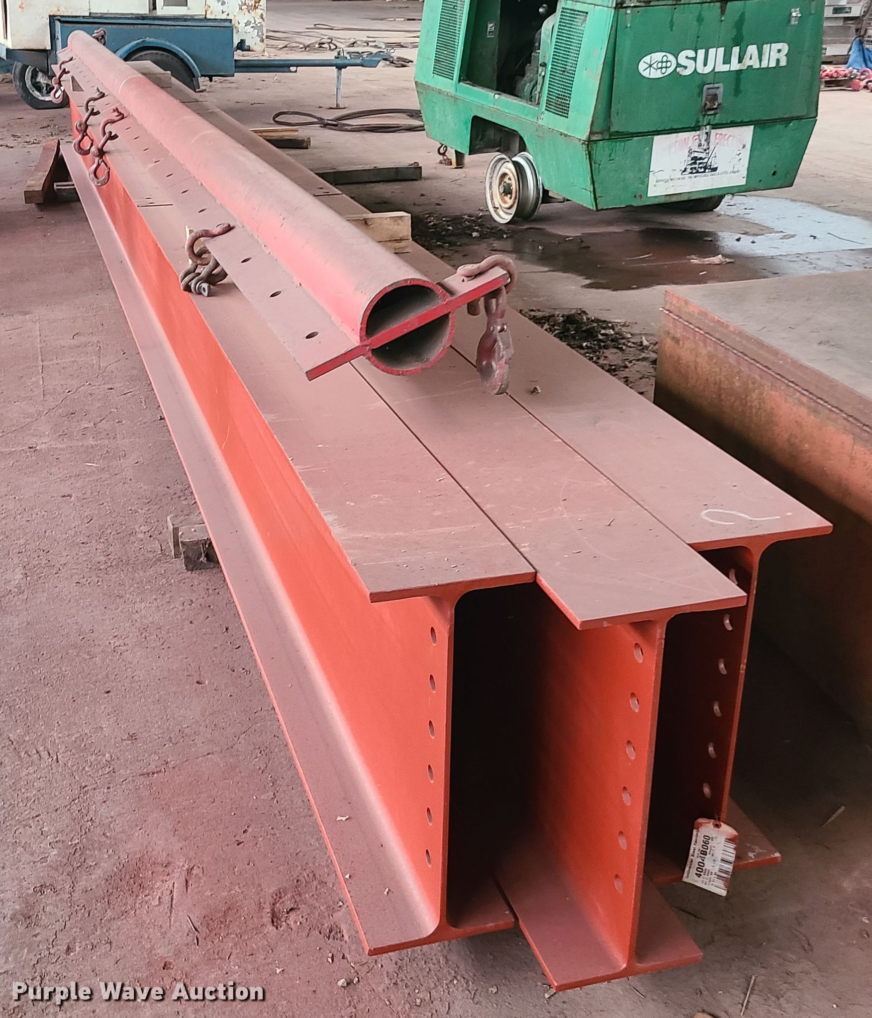 Purple Wave is selling a used Building Materials in Missouri. This item is a (3) I-beams with the following: Approx. 28'9"L x 9"W x 24"H, (2) approx. 30'2"L x 9"W x 24"H, 25'L spreader bar
