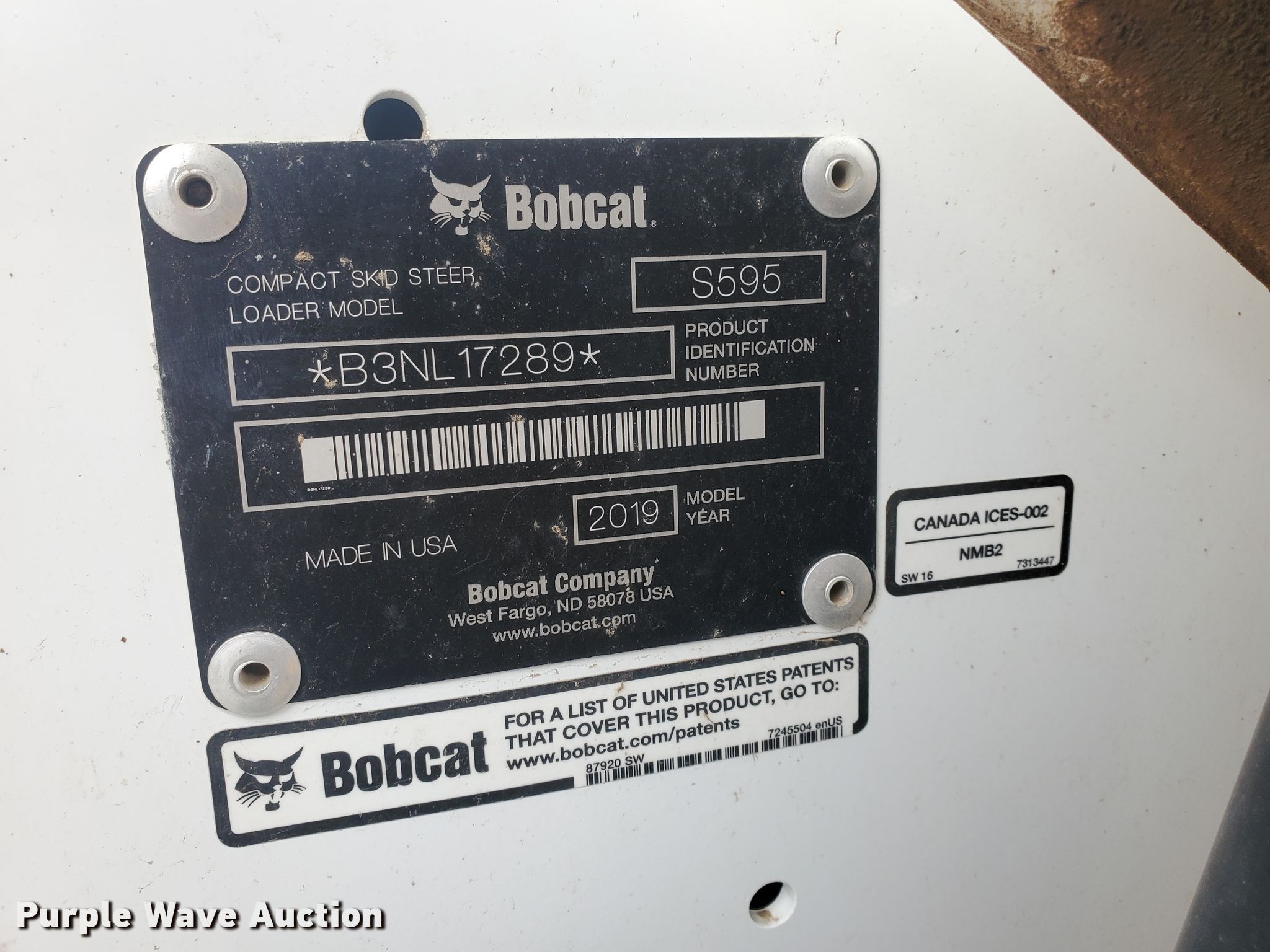 Purple Wave is selling a used Skid Steer Loader in Kansas. This item is a 2018 Bobcat S595 skid steer loader with the following: 458 hours on meter, Serial: B3NL17289