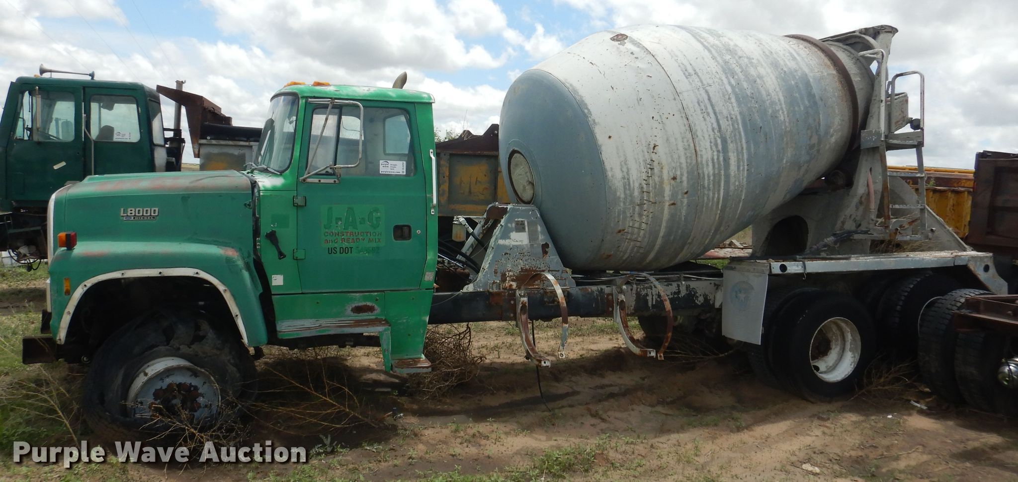 Purple Wave is selling a used Ready Mix or Pump Truck in Kansas. This item is a 1993 Ford L8000 ready mix truck with the following: Unknown miles on odometer, Unit #: JAG 40