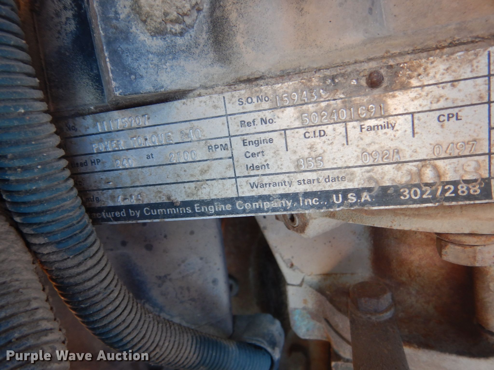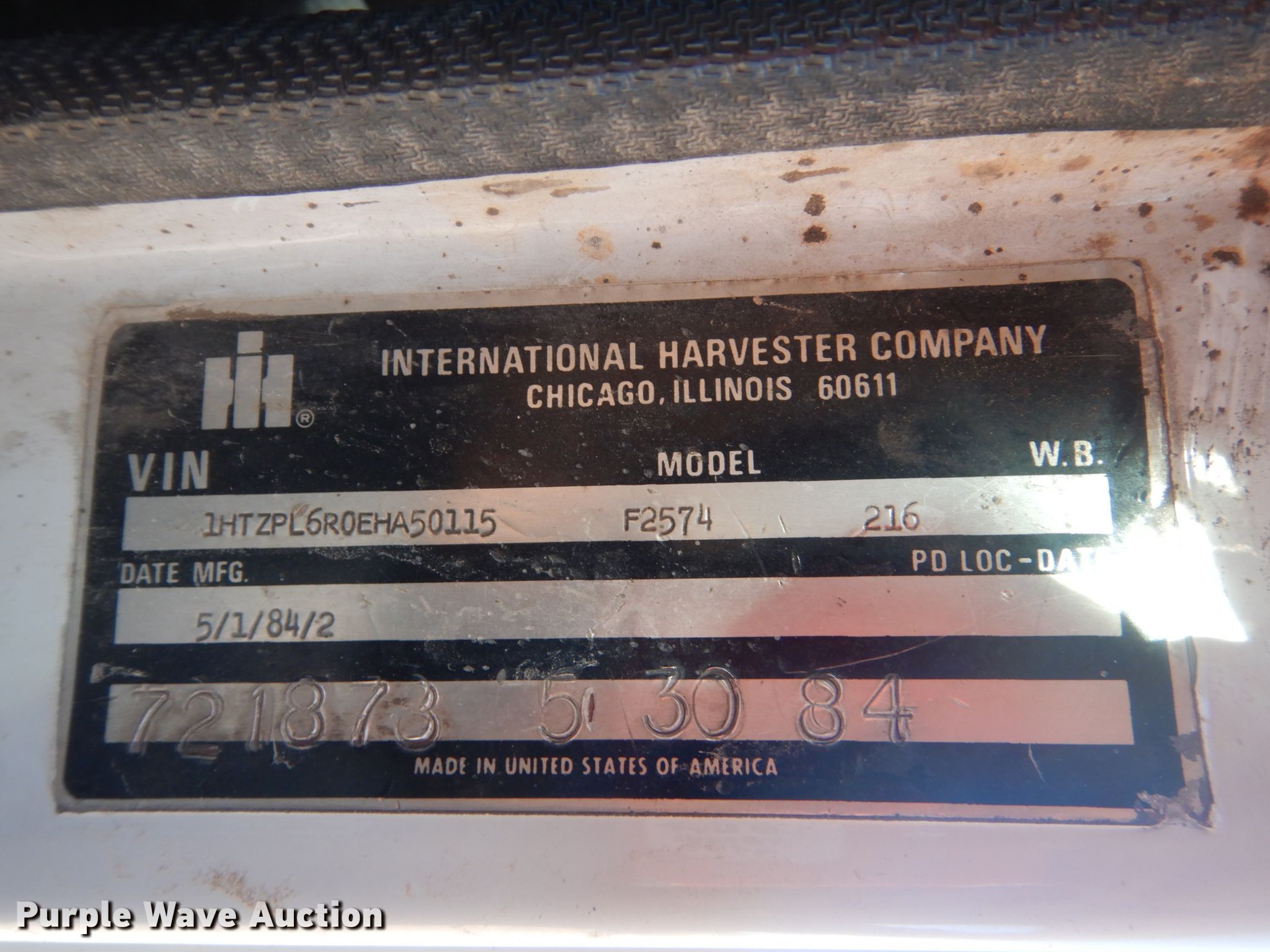 1984 International S2500 dump truck. 708,861 miles on odometer. Engine Cummings, Displacement: 14.0L, Cylinders: 6, Fuel type: Diesel. Transmission Manual, Speed: 9. Chassis Double frame, Axles: Tandem, Differential lock: Inter-axle, Suspension: Walking beam, Brakes: Air, PTO. Interior Heat. Operational Dump bed Johnon JD 201, 15' L x 94" W, Side height: 35", Side board height: 15", Bed type: Steel, Bed vibrator, Ram: Single , End gate: Air operated. Tires Front: 425/65R22.5, Rear: 11R22.5. Iowa title. 1HTZPL6R0EHA50115. 230 Croell Dr. Sundance, WY 82729