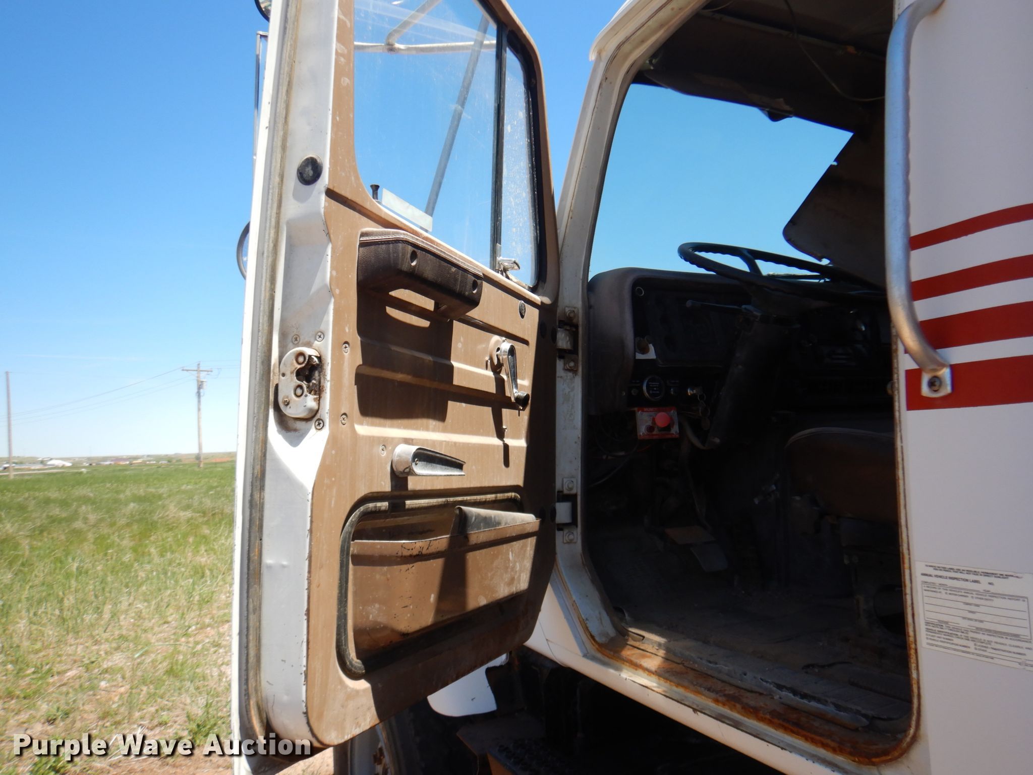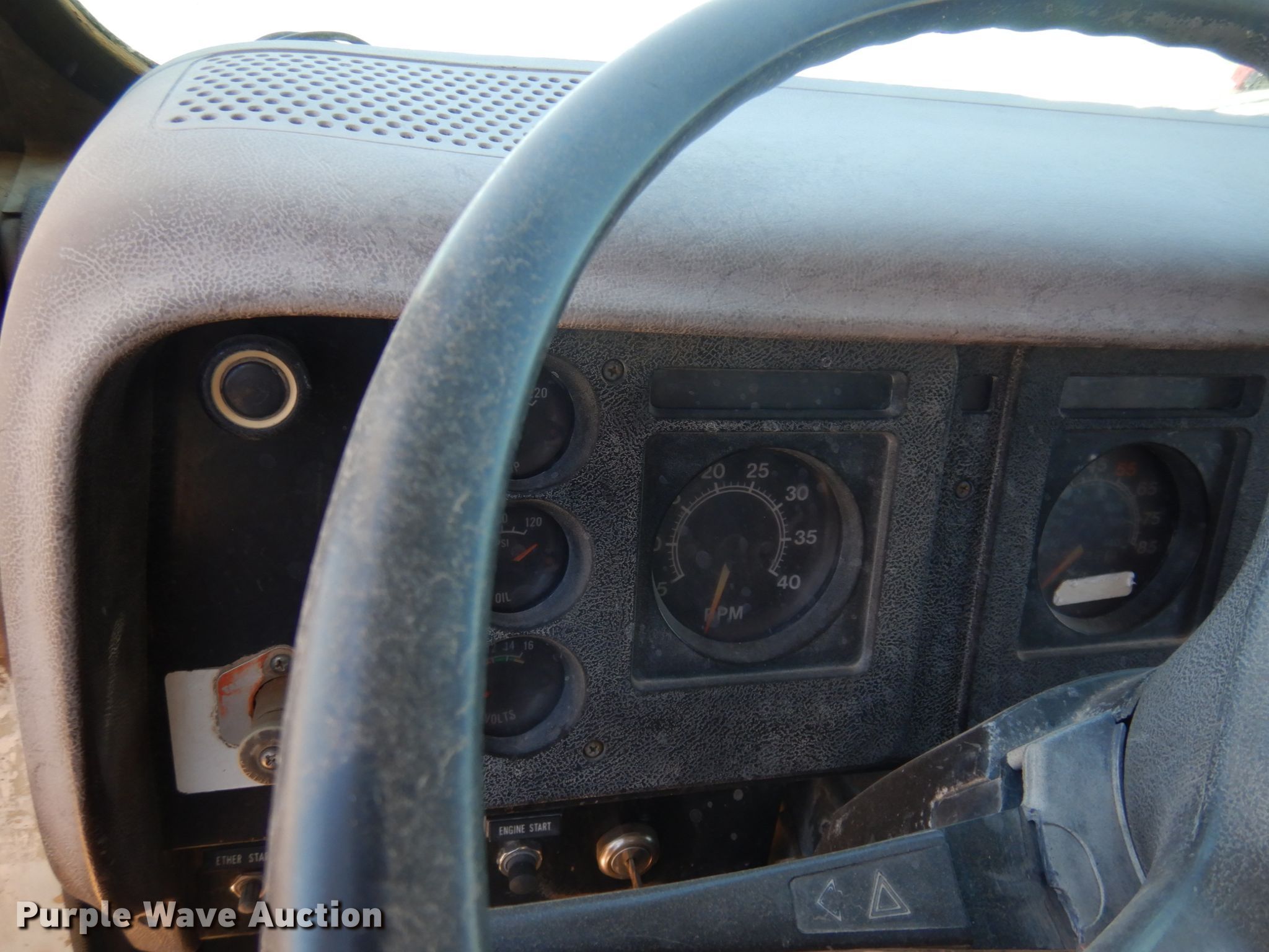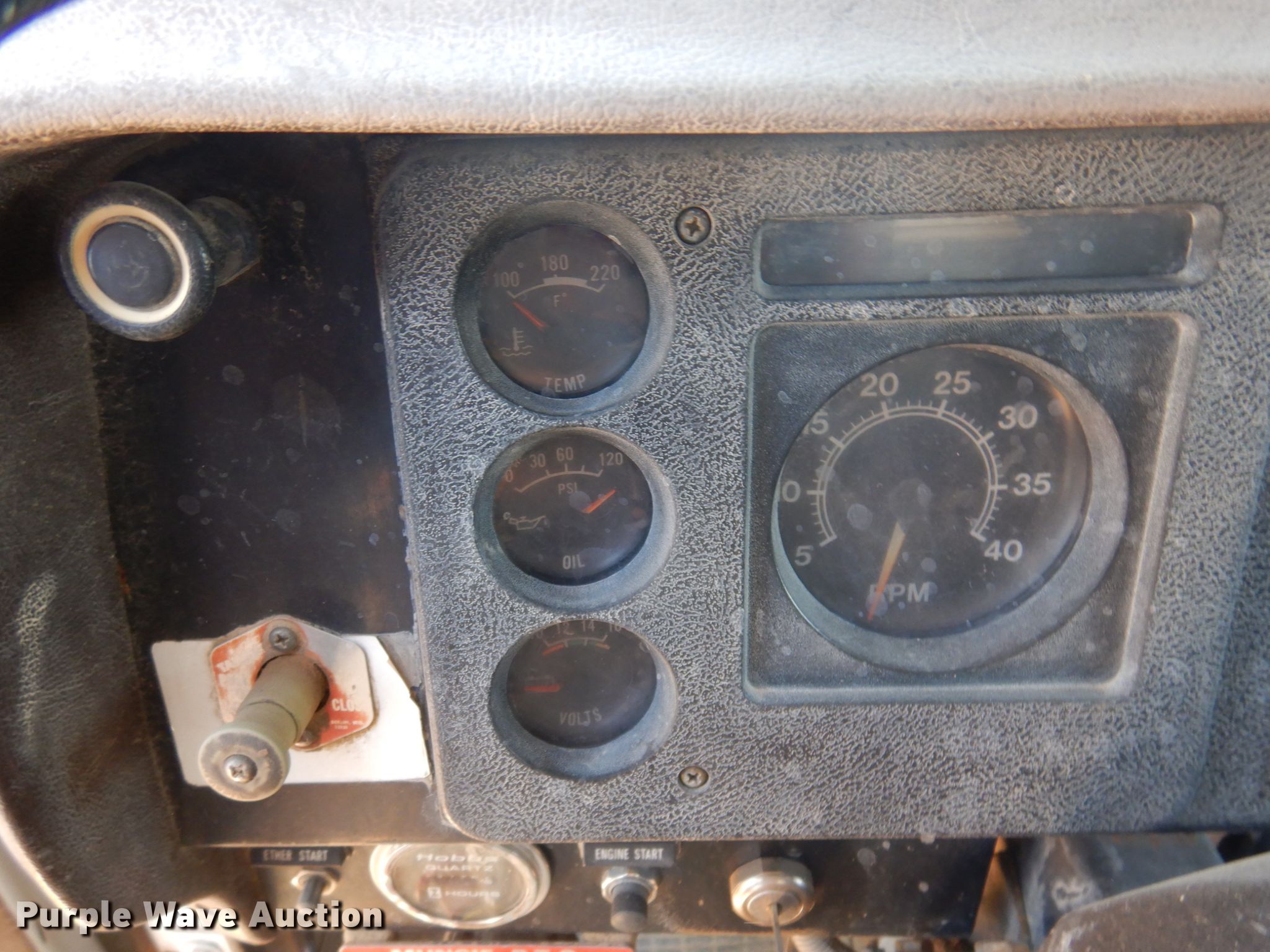 1981 International F2574 dump truck. 259,842 miles on odometer, Engine hours: 2,510. Engine Cummins, Displacement: 9.0L, Cylinders: 6, Fuel type: Diesel. Transmission Manual. Chassis Axles: Tandem, Differential lock: Inter-axle, Suspension: Walking beam, Brakes: Air, PTO. Interior Heat. Operational Dump bed 15'2" L x 7'6" W, Side height: 39", Bed type: Steel, End gate: Air. Tires Front: 425/65R22.5, Rear: 11R22.5. Notes Non-operational unit. Iowa title. 1HTCF2577BHA31849. 230 Croell Dr. Sundance, WY 82729