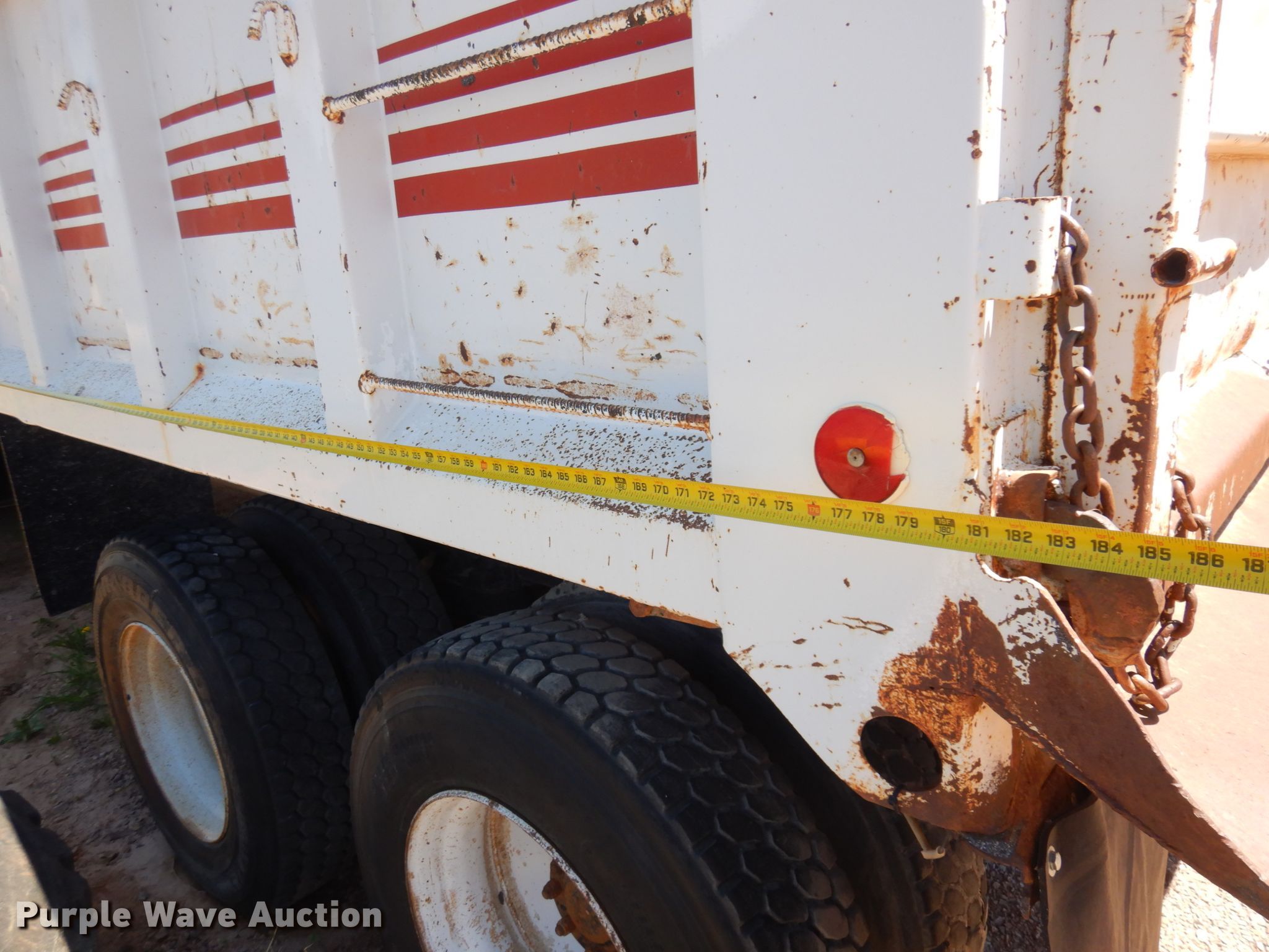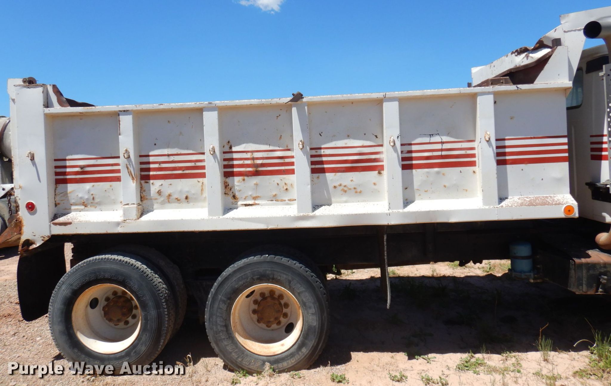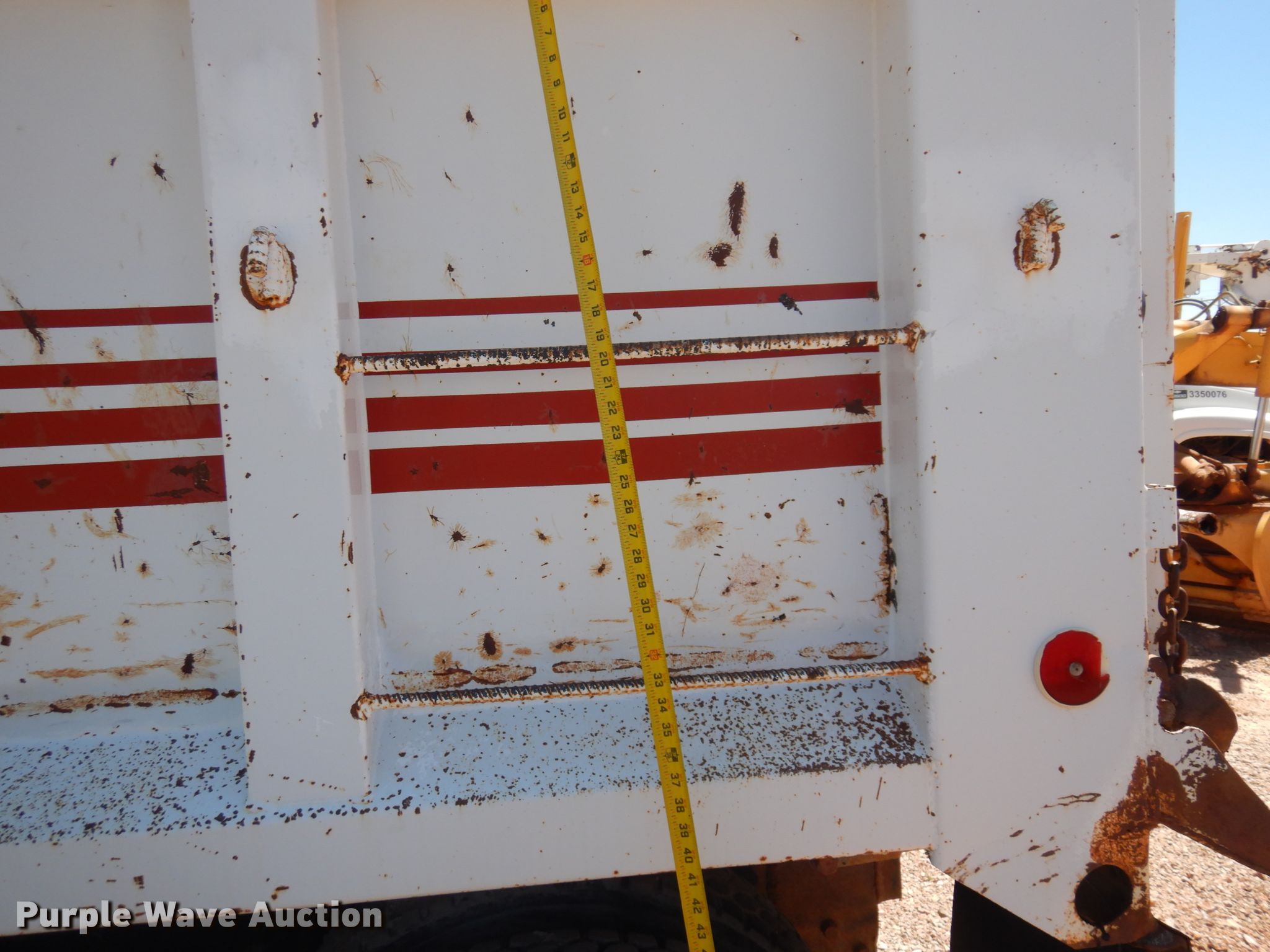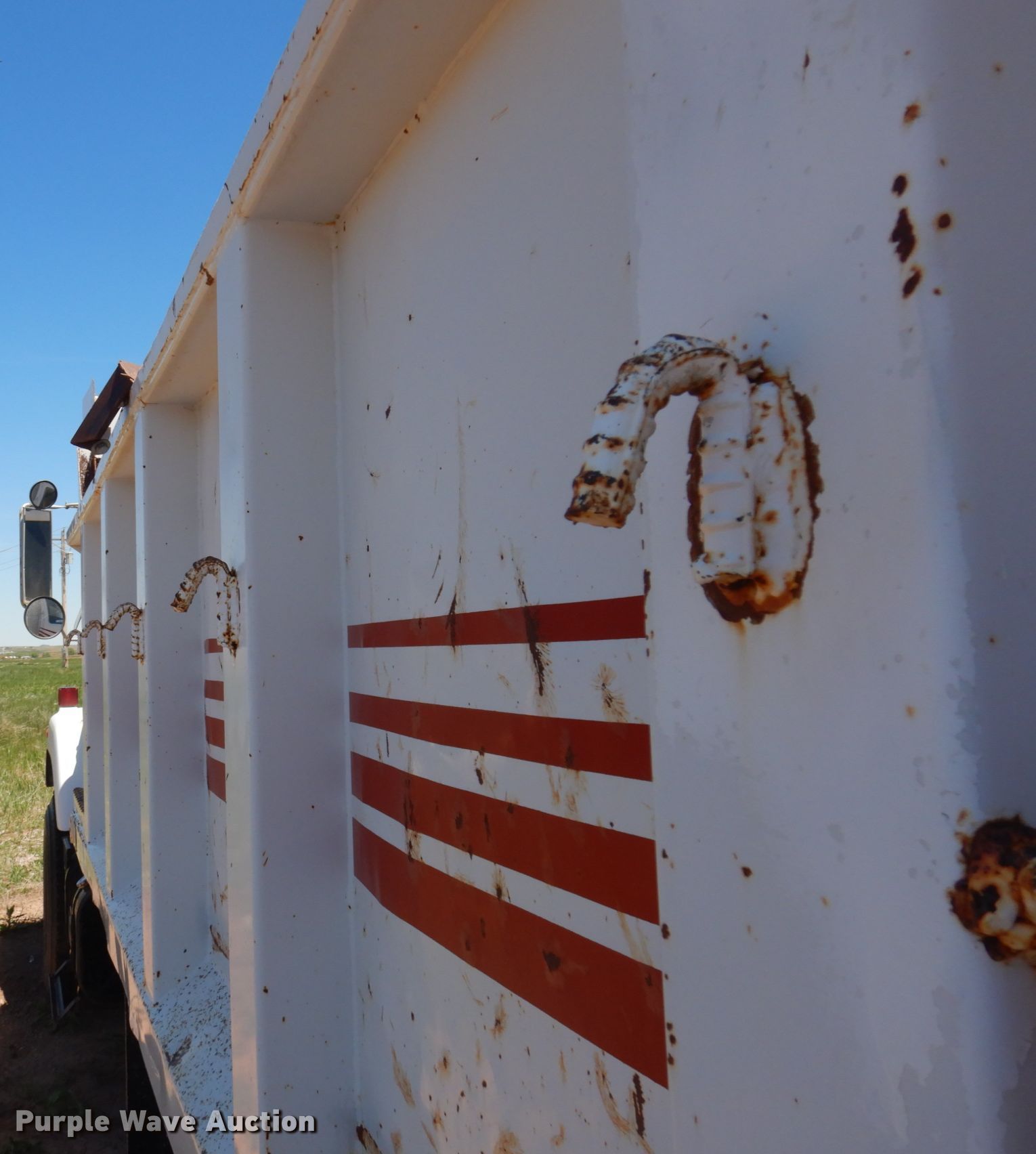 1981 International F2574 dump truck. 259,842 miles on odometer, Engine hours: 2,510. Engine Cummins, Displacement: 9.0L, Cylinders: 6, Fuel type: Diesel. Transmission Manual. Chassis Axles: Tandem, Differential lock: Inter-axle, Suspension: Walking beam, Brakes: Air, PTO. Interior Heat. Operational Dump bed 15'2" L x 7'6" W, Side height: 39", Bed type: Steel, End gate: Air. Tires Front: 425/65R22.5, Rear: 11R22.5. Notes Non-operational unit. Iowa title. 1HTCF2577BHA31849. 230 Croell Dr. Sundance, WY 82729