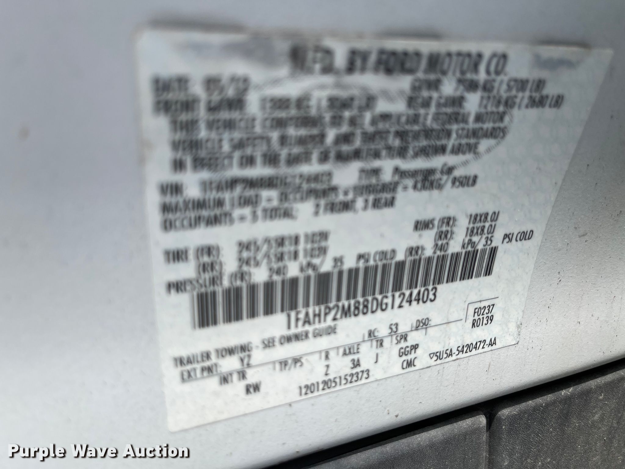 2013 Ford Taurus Police. 80,438 miles on odometer, Unit #: 180. Engine Displacement: 3.5L V6 DOHC 24V, Cylinders: 6, Fuel type: Gas. Transmission Automatic, All wheel drive. Interior AC, Heat, Power windows, Power locks, Cruise control. Tires Size: 245/55R18. Nebraska title. 1FAHP2M88DG124403. City of Lincoln Police Garage. Lincoln, NE 68504