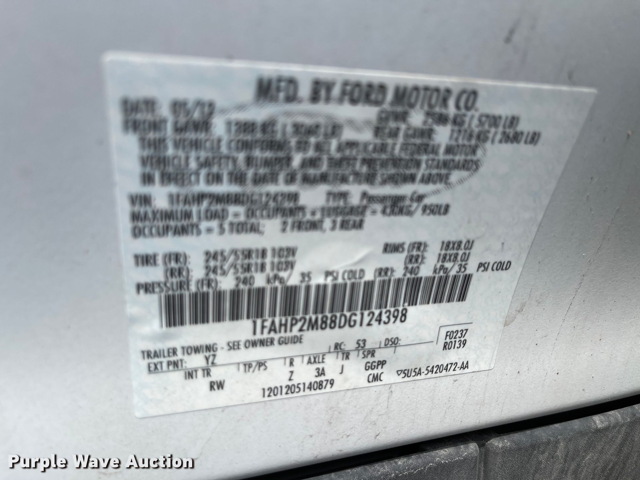 2013 Ford Taurus Police. 83,159 miles on odometer, Unit #: 182. Engine Displacement: 3.5L V6 DOHC 24V, Cylinders: 6, Fuel type: Gas. Transmission Automatic, All wheel drive. Interior AC, Heat, Power windows, Power locks, Cruise control. Tires Size: 245/55R18. Nebraska title. 1FAHP2M88DG124398. City of Lincoln Police Garage. Lincoln, NE 68504