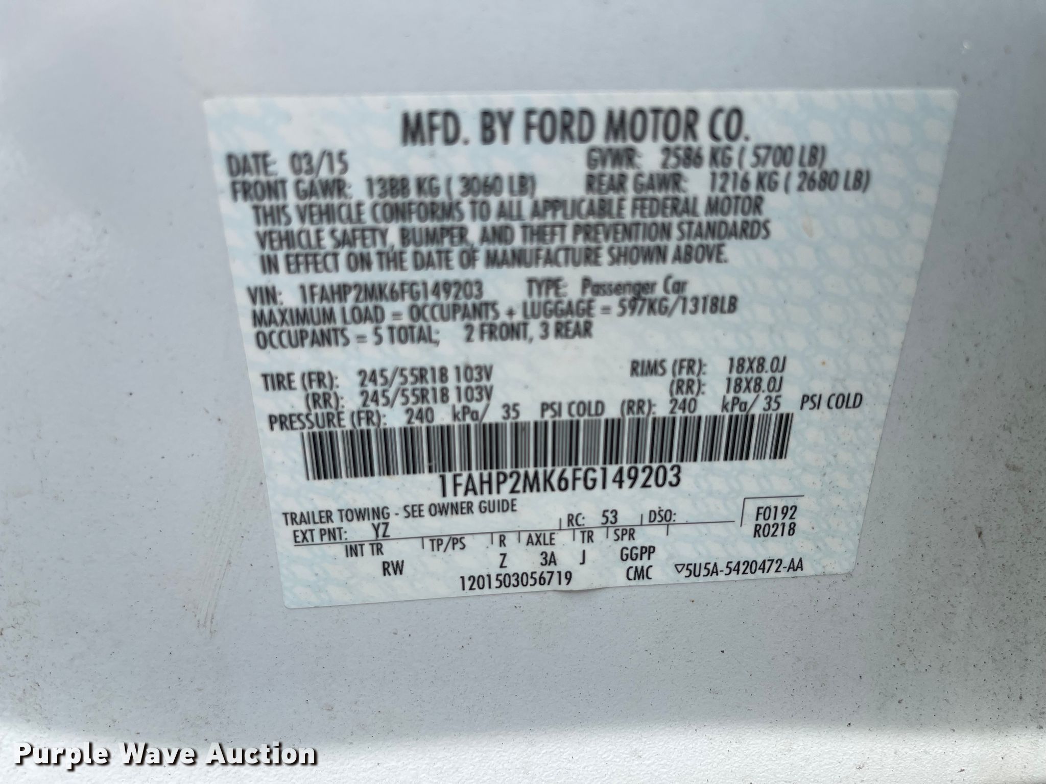 2015 Ford Taurus Police. 105,420 miles on odometer, Unit #: 141. Engine Displacement: 3.7L V6 DOHC 24V, Cylinders: 6, Fuel type: Gas. Transmission Automatic, All wheel drive. Interior AC, Heat, Power windows, Power locks, Cruise control. Tires Size: 245/55R18. Nebraska title. 1FAHP2MK6FG149203. City of Lincoln Police Garage. Lincoln, NE 68504