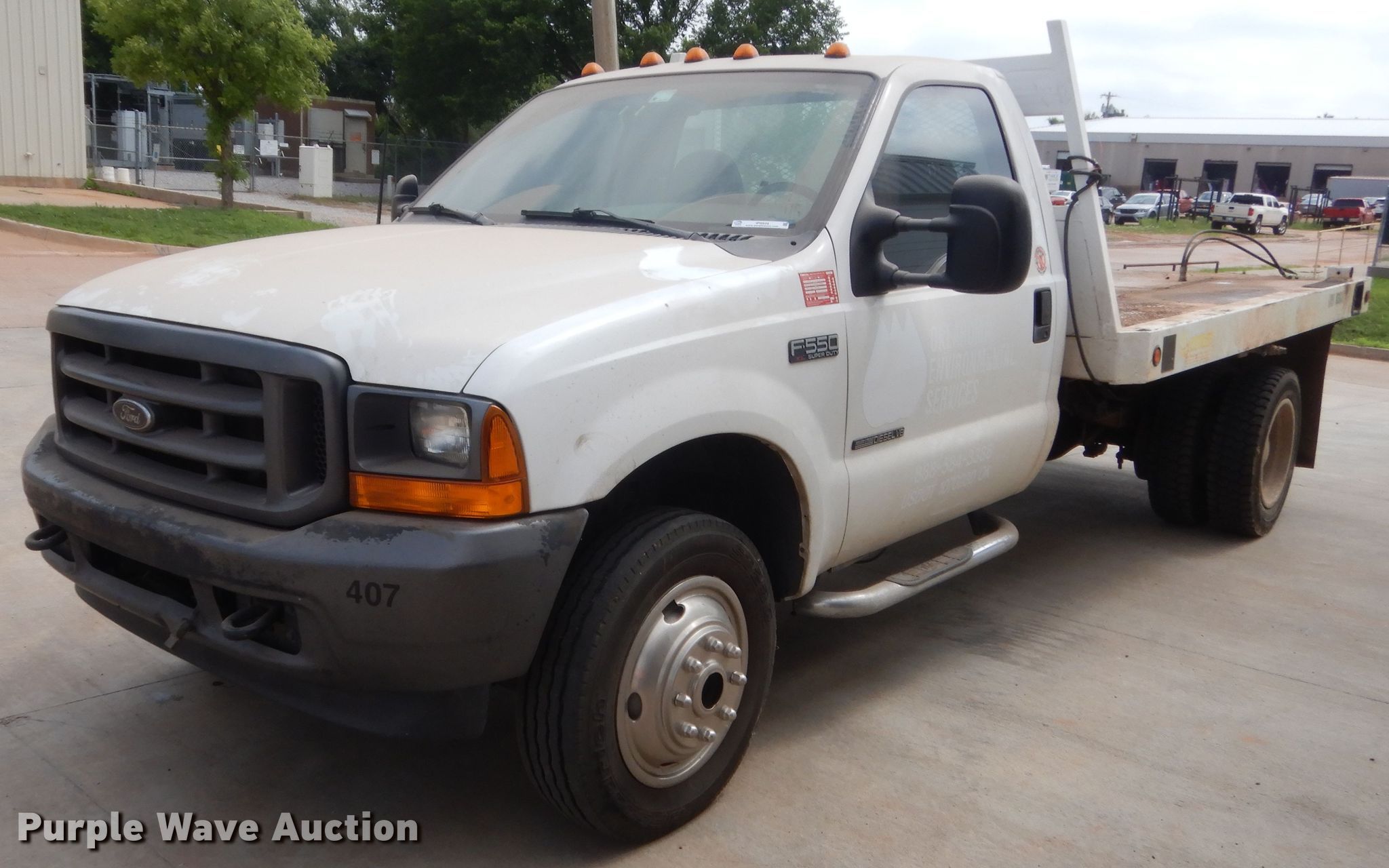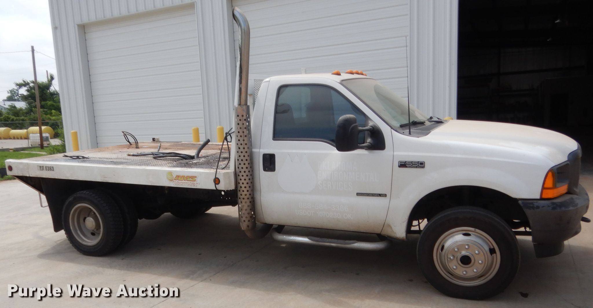 Purple Wave is selling a used Flat Bed Truck in Oklahoma. This item is a 2001 Ford F550 Super Duty flatbed truck with the following: 94,715 miles on odometer