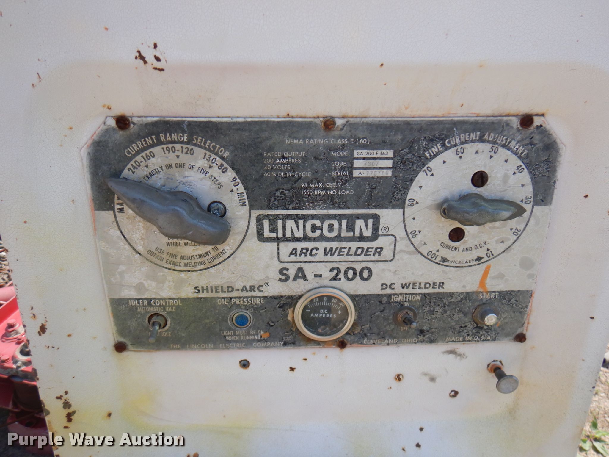 Purple Wave is selling a used Welder (Manual) in Illinois. This item is a Lincoln SA-200-F-163 welder with the following: Serial: A775760