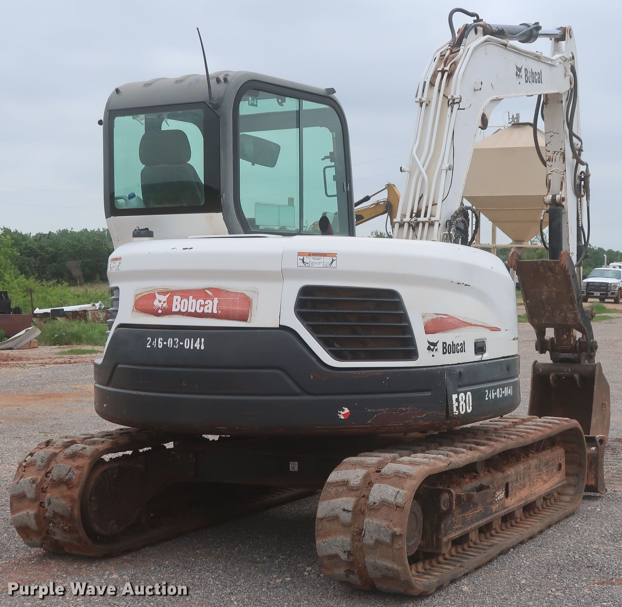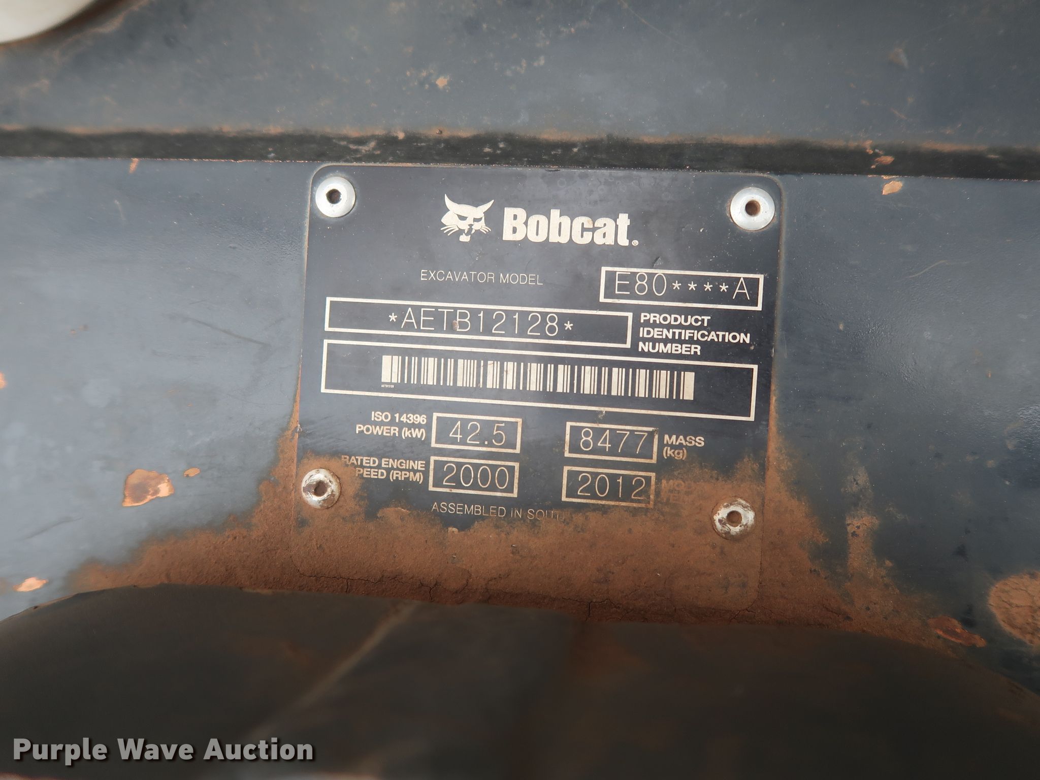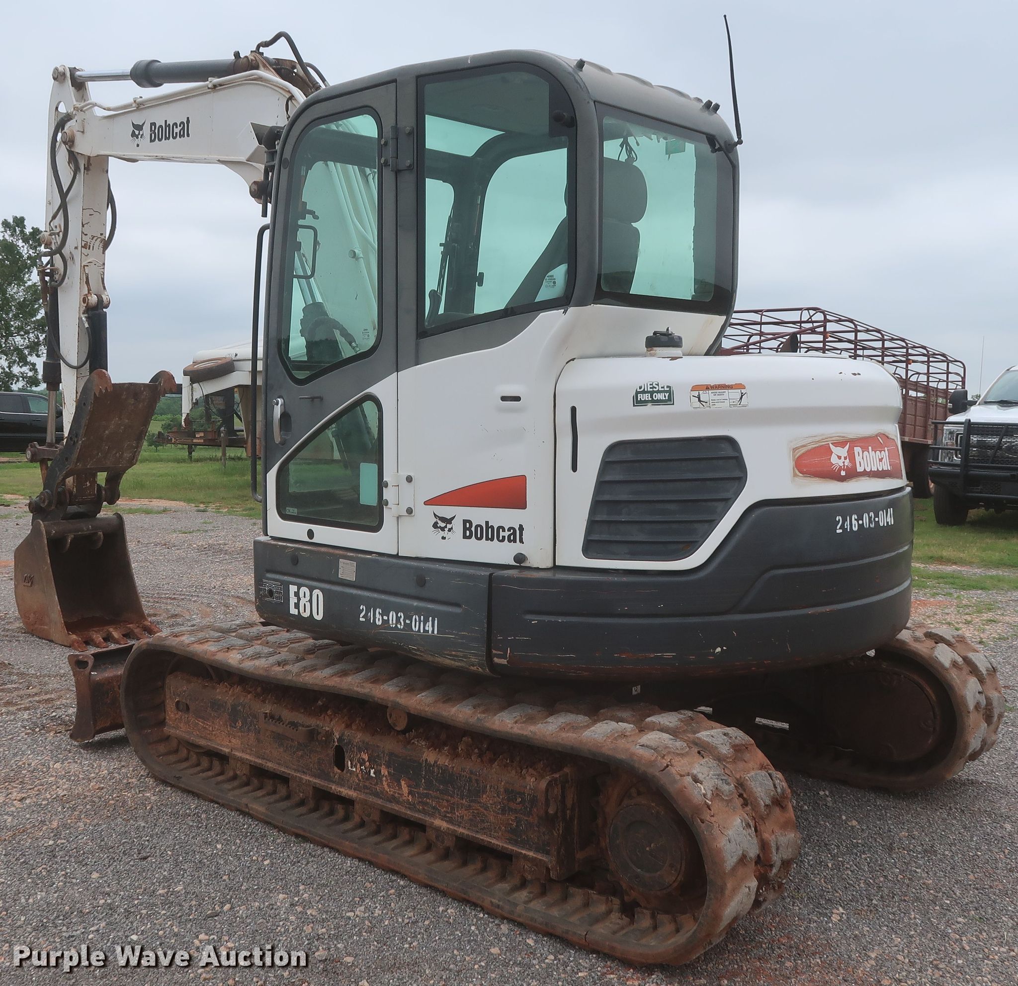 Purple Wave is selling a used Mini Excavator in Oklahoma. This item is a 2012 Bobcat E80 mini excavator with the following: 2,742 hours on meter, Serial: AETB12128