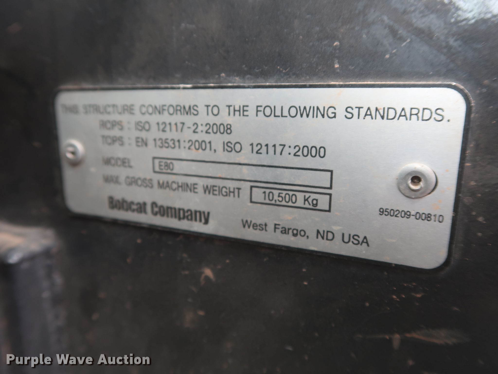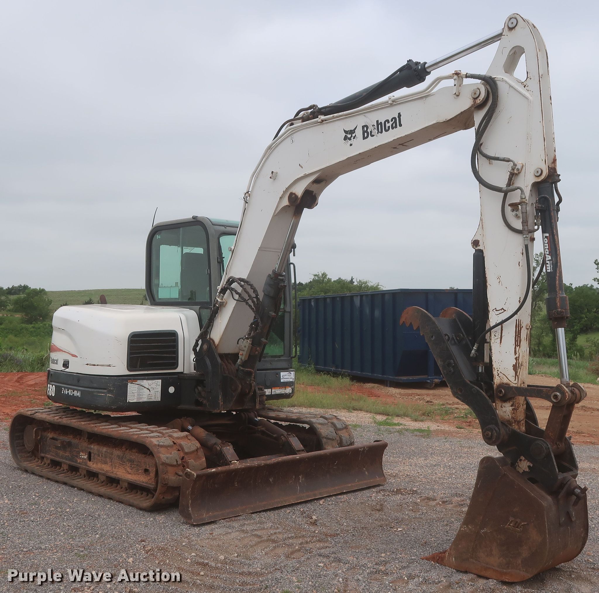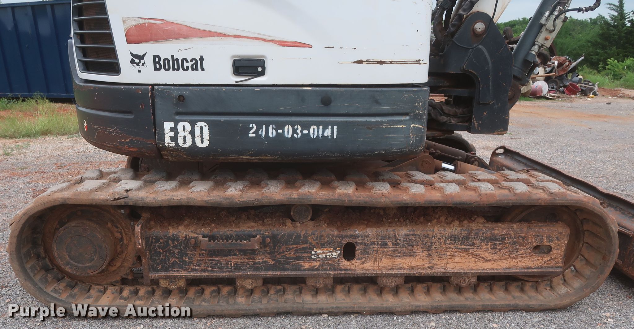 Purple Wave is selling a used Mini Excavator in Oklahoma. This item is a 2012 Bobcat E80 mini excavator with the following: 2,742 hours on meter, Serial: AETB12128