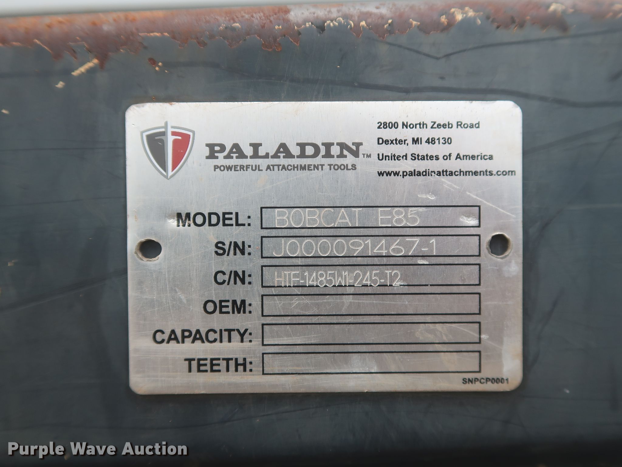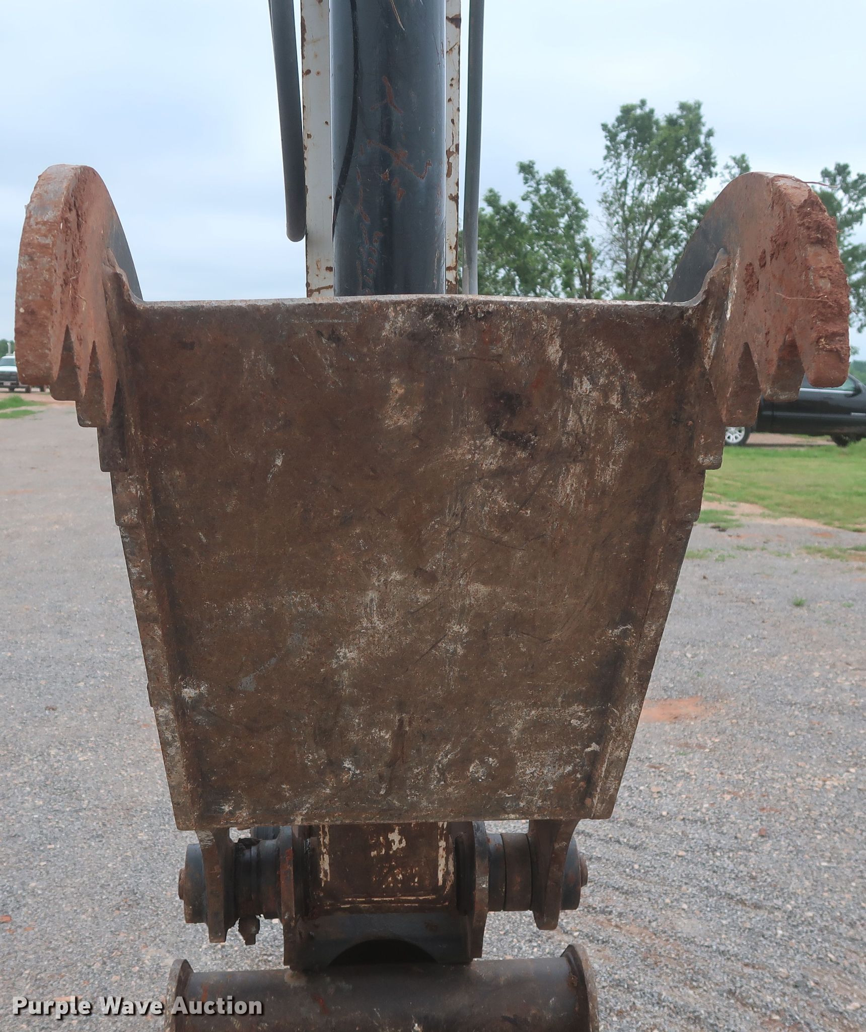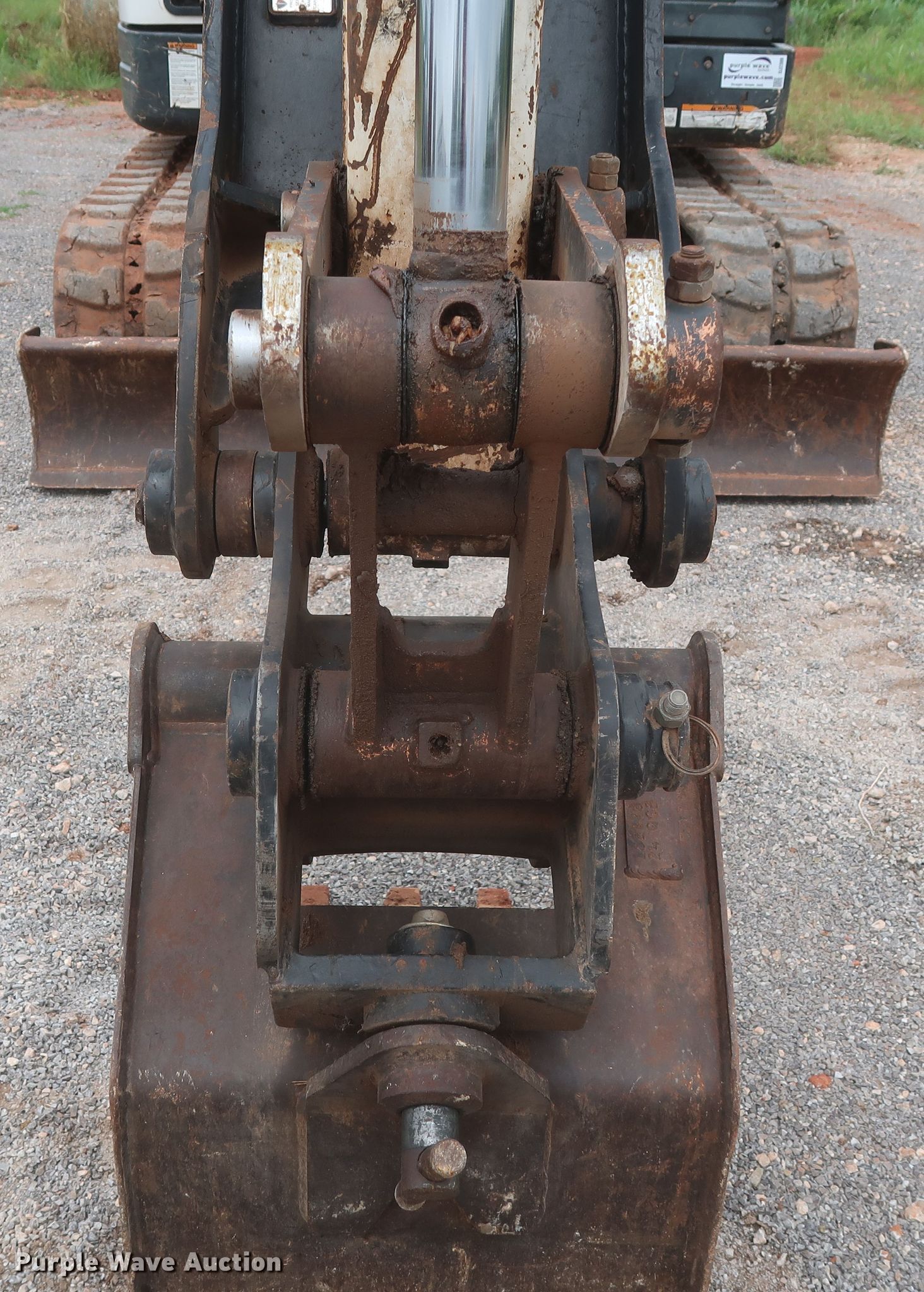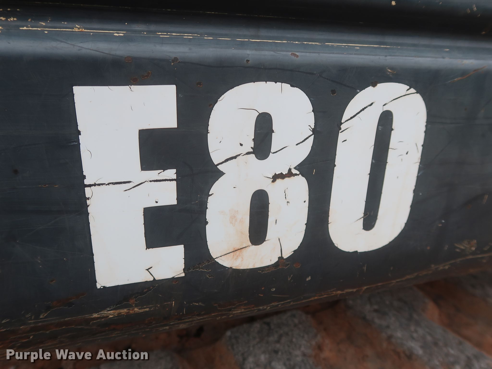 2012 Bobcat E80 mini excavator. 2,742 hours on meter, Serial: AETB12128. Engine Yanmar 4TNV98-ZWDB8U, Serial: K2119, Displacement: 3.3L, Cylinders: 4, Fuel type: Diesel, HP: 57. Transmission Hydrostatic. Operators station EROPS AC, Heat, Pattern changer. Operational Auxiliary hydraulics Two-way, Backfill blade Width: 90", Boom Swing, Stick Stick length: 90", Quick coupler: Mechanical Paladin, Thumb: Hydraulic Paladin, Bucket Tag, Width: 24", Teeth: 5. Tracks Width: 17.5", Rubber. 12101 S May Ave. Edmond, OK 73003