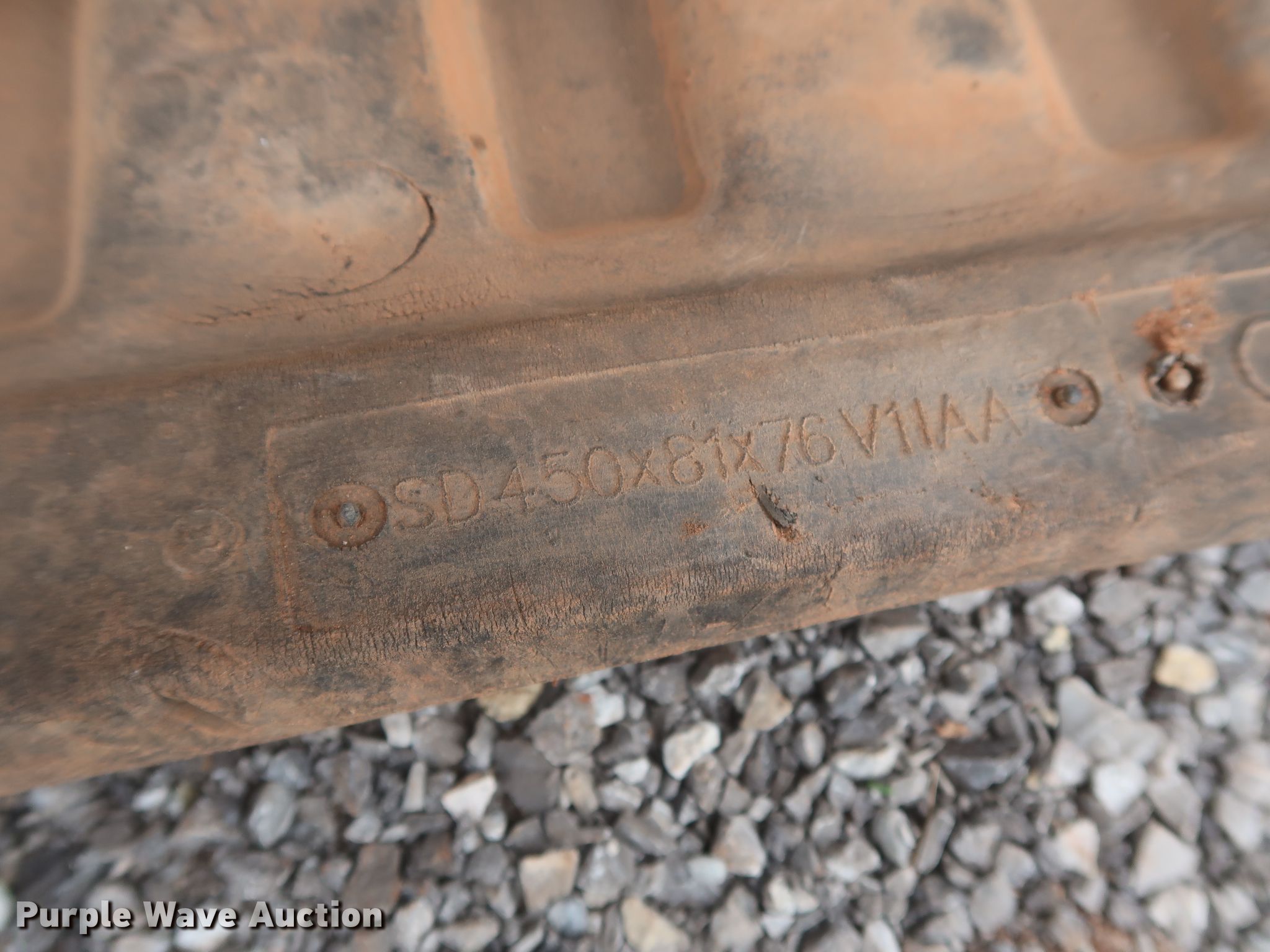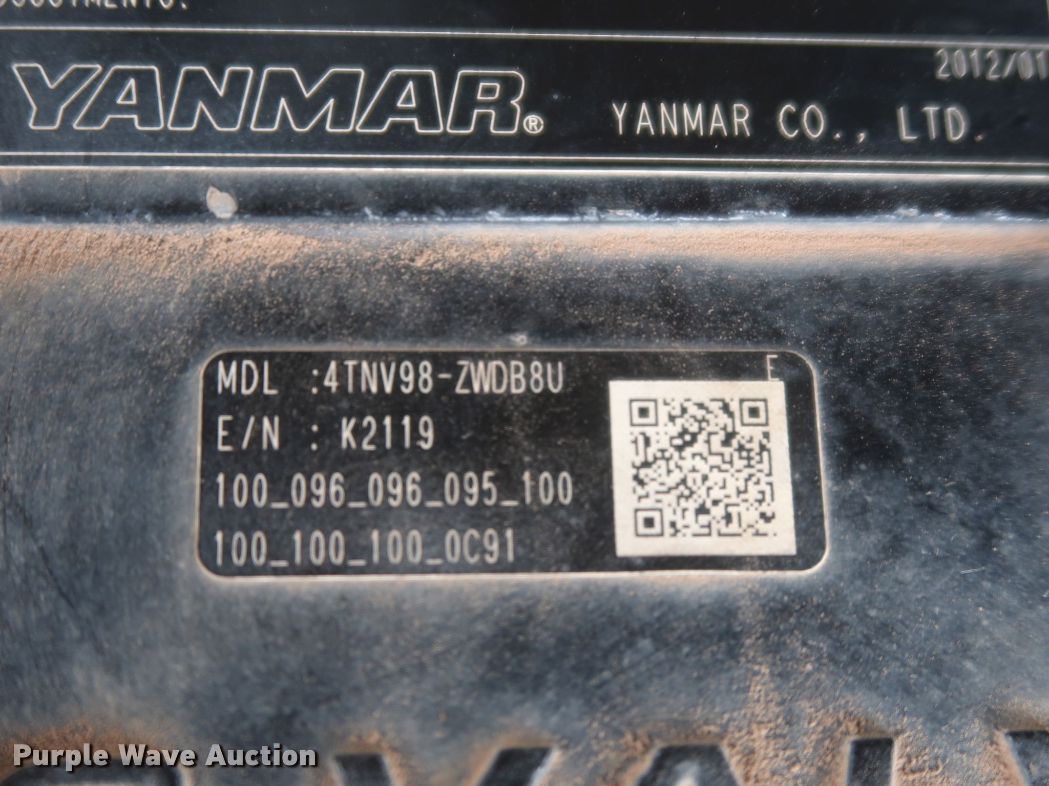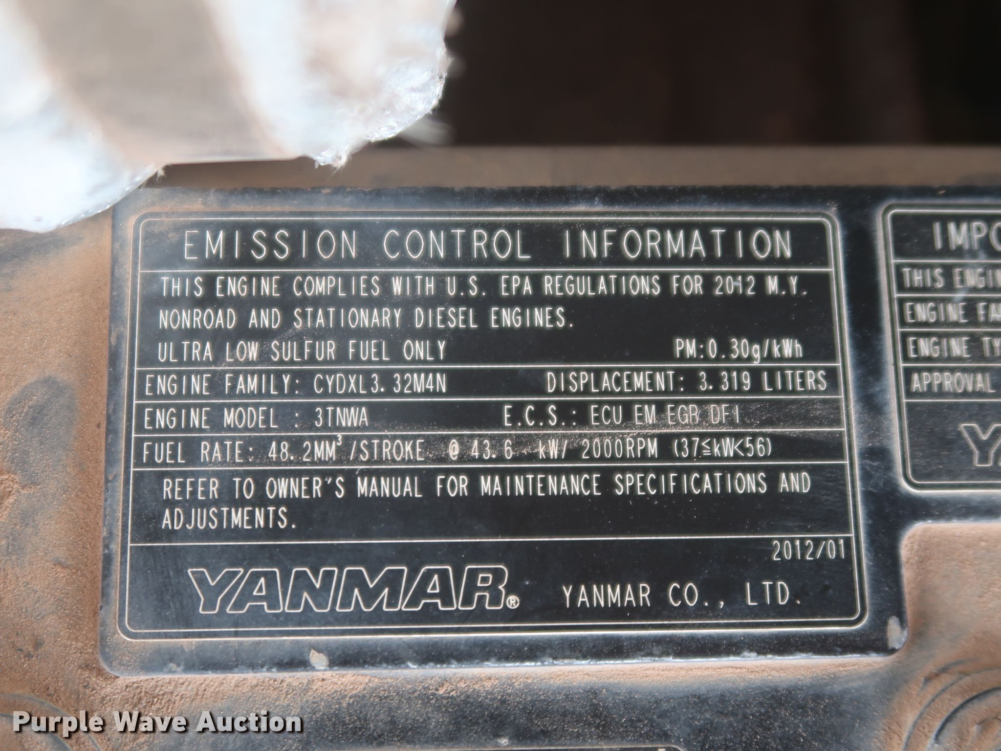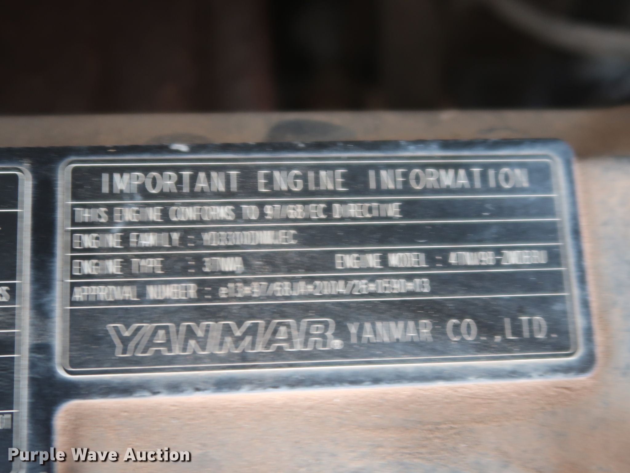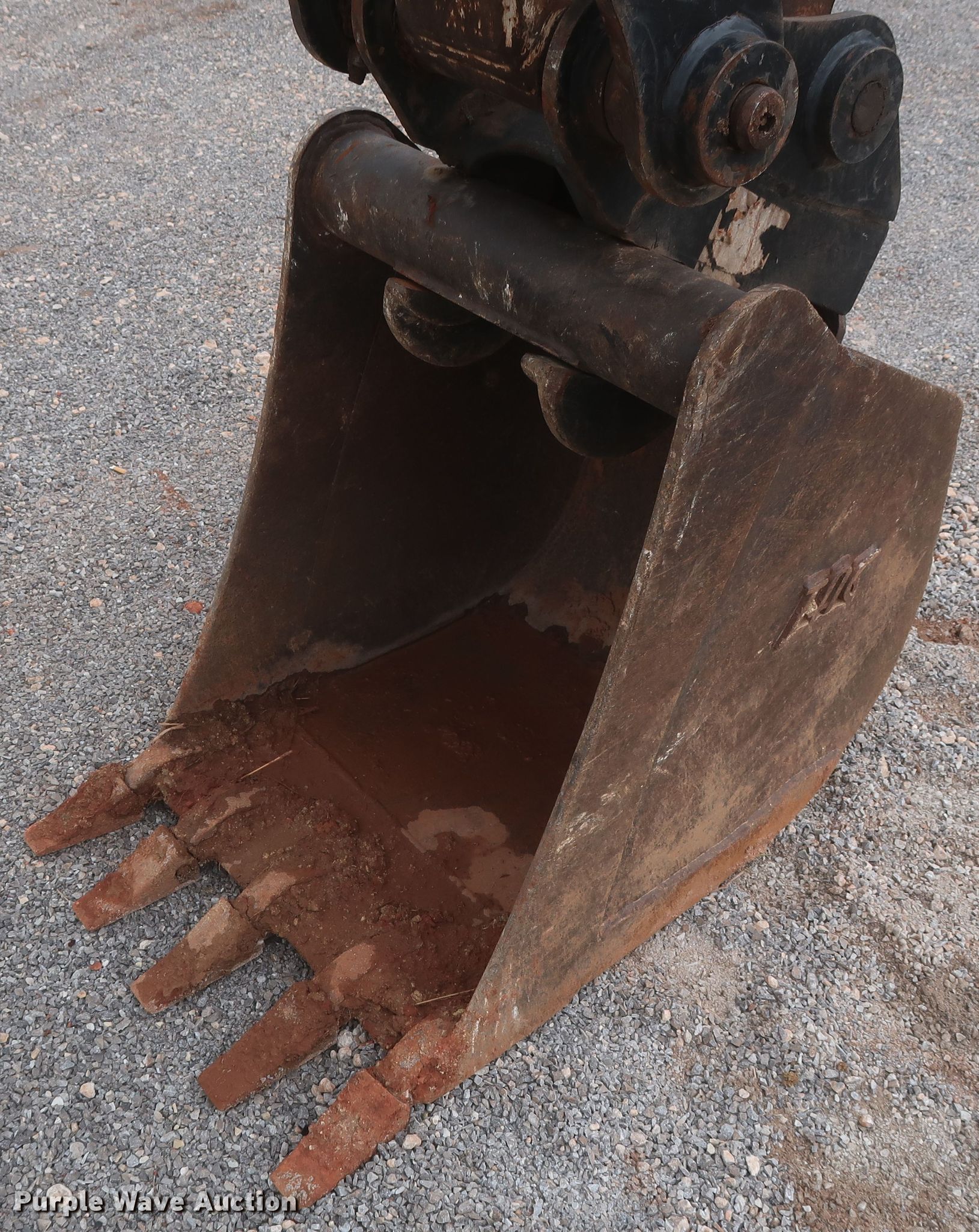 2012 Bobcat E80 mini excavator. 2,742 hours on meter, Serial: AETB12128. Engine Yanmar 4TNV98-ZWDB8U, Serial: K2119, Displacement: 3.3L, Cylinders: 4, Fuel type: Diesel, HP: 57. Transmission Hydrostatic. Operators station EROPS AC, Heat, Pattern changer. Operational Auxiliary hydraulics Two-way, Backfill blade Width: 90", Boom Swing, Stick Stick length: 90", Quick coupler: Mechanical Paladin, Thumb: Hydraulic Paladin, Bucket Tag, Width: 24", Teeth: 5. Tracks Width: 17.5", Rubber. 12101 S May Ave. Edmond, OK 73003
