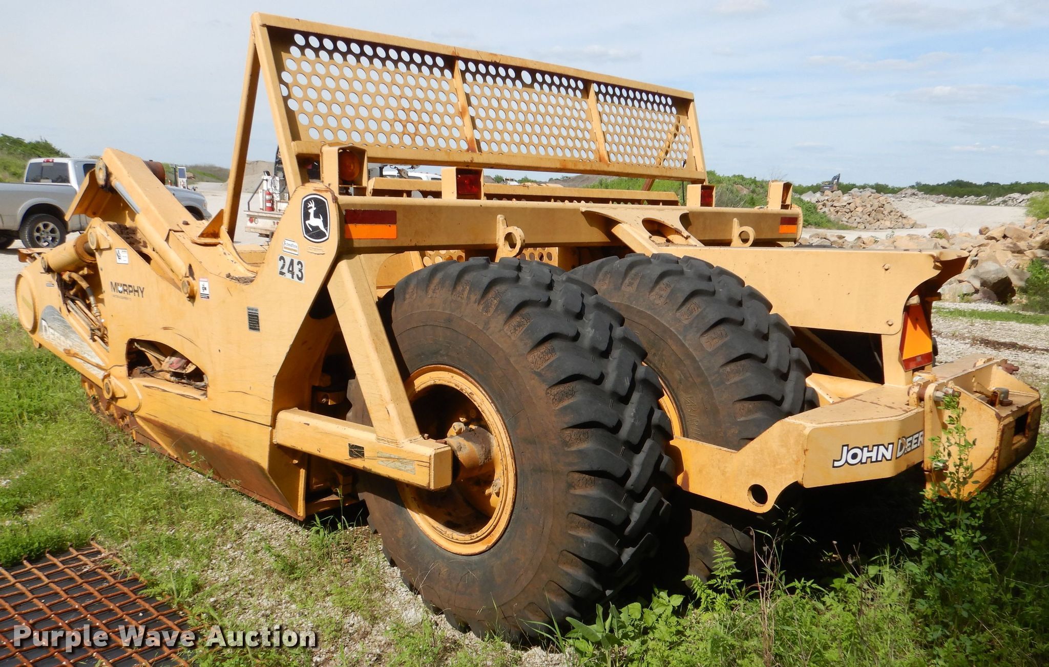 Purple Wave is selling a used Pull Type Scraper in Kansas. This item is a 2006 John Deere 1810E scraper with the following: Serial: T81810E060212, Unit #: 243