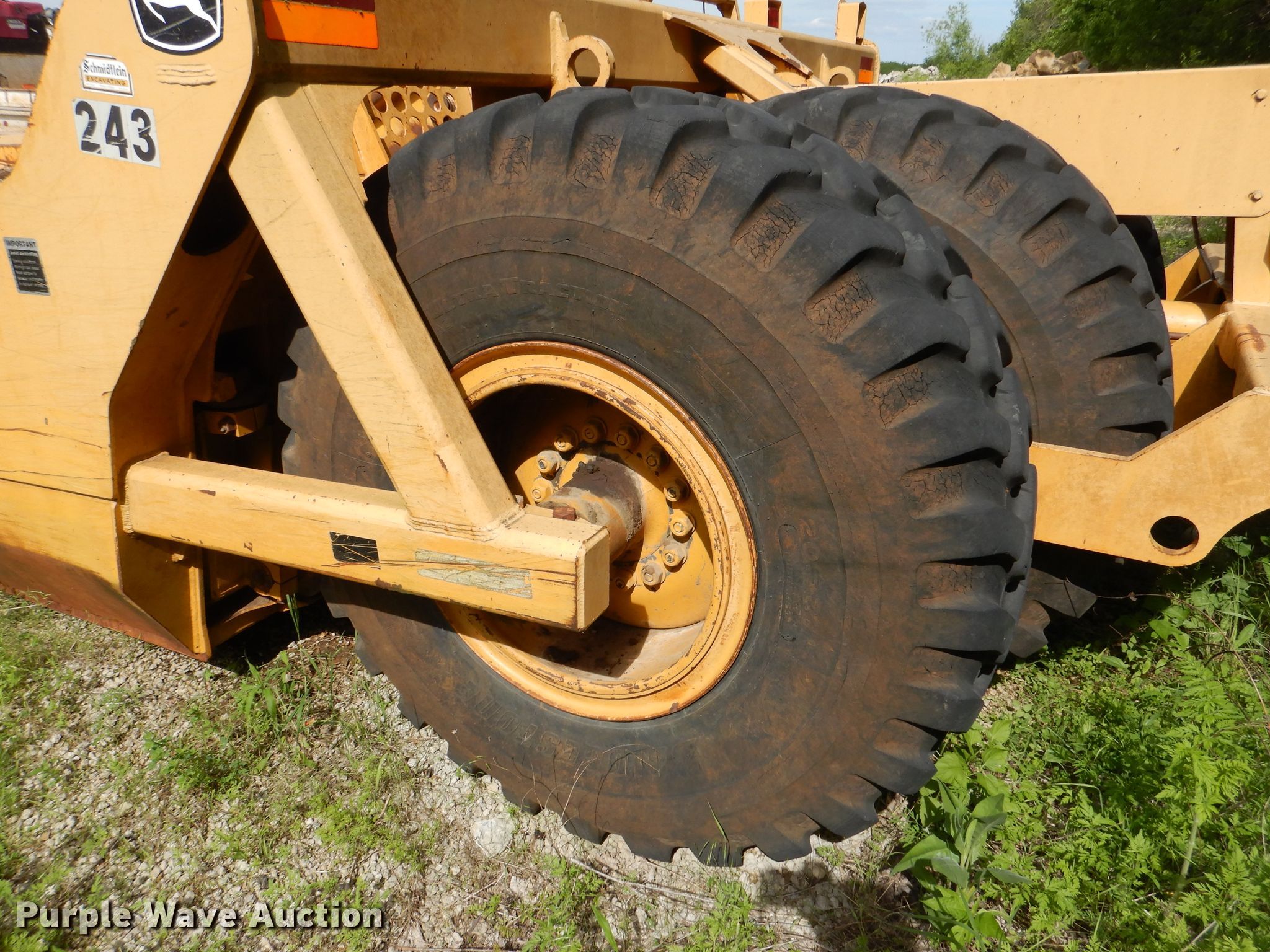 2006 John Deere 1810E scraper. Serial: T81810E060212, Unit #: 243. Operational Bowl capacity: 18 cu.yd., Hydraulic lift, Hitch: Rear. Tires Size: 20.5R25. Schmidtlein Excavating. 204 NE Rice Rd. Topeka, KS 66616