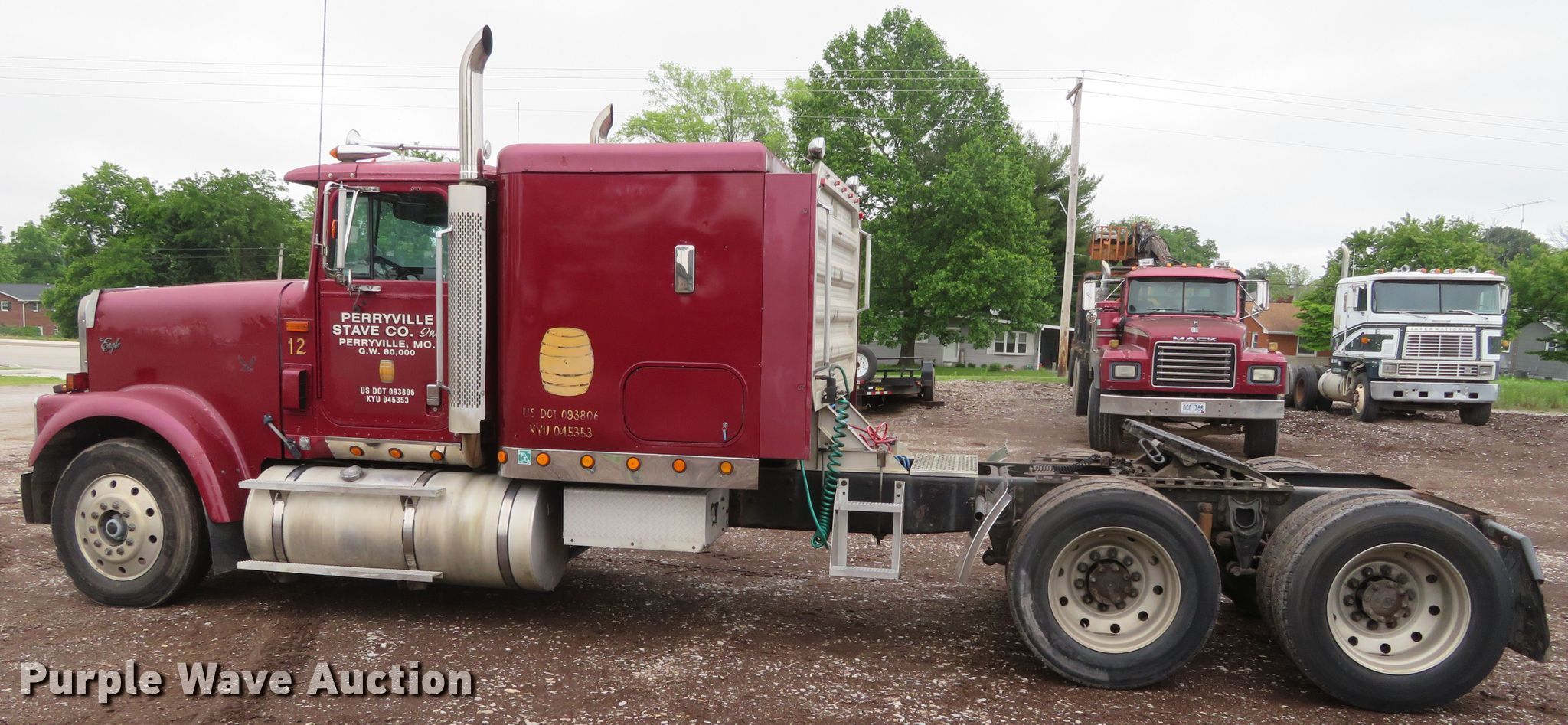 1995 International 9300 semi truck. 644,938 miles on odometer, Unit #: 12. Engine Cummins N14, Displacement: 14.0L, Cylinders: 6, Fuel type: Diesel, Engine brake. Transmission Eaton Fuller, Manual, Speed: 10. Chassis Axles: Tandem, Differential lock: Inter-axle, Suspension: Air, Brakes: Air, GVWR: 52,000 lbs FAWR: 12,000 lbs, IAWR: 20,000 lbs, RAWR: 20,000 lbs, Wheelbase: 250". Interior AC, Heat, Heated mirrors, Cruise control, Sleeper Sleeper length: 48", Beds: Single, Power passenger window. Operational Deck plate: Aluminum, Fifth wheel type: Air operated, Sliding, Fuel tank: Dual. Tires Size: 285/75R24.5. Notes Windshield chipped or cracked. Missouri title. 2HSFBAERXSC036959. Perryville Stave Company Inc.. Perryville, MO 63775