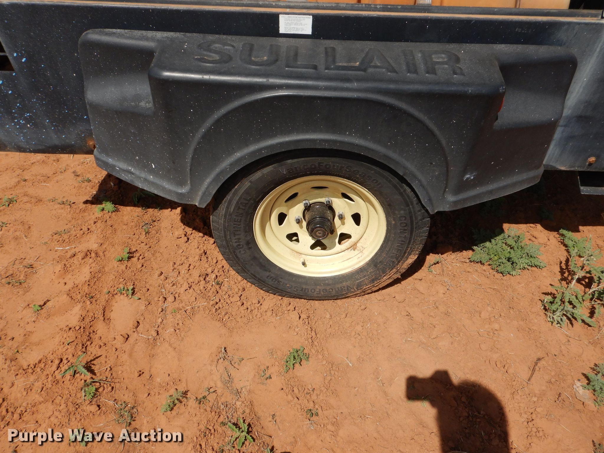 Sullair 375 air compressor. 2,800 hours on meter, Serial: 201103240078. Engine Caterpillar C4.4 Acert, Serial: 44401666, Displacement: 4.4L, Cylinders: 4, Fuel type: Diesel, HP: 142. Operational Air compressor Sullair, CFM: 375, PSI: 150, Tank capacity: 65 gallons, Trailer mounted. Trailer 13' L x 60" W, Ball hitch size: 2 5/16", Suspension: Spring, Brakes: Hydraulic, Axles: Single, Tire size: 225/70P15. Transfer of ownership documentation will be a bill of sale. Cornelius Giesbrecht. 2054 County Rd C3201. Stanton, TX 79782