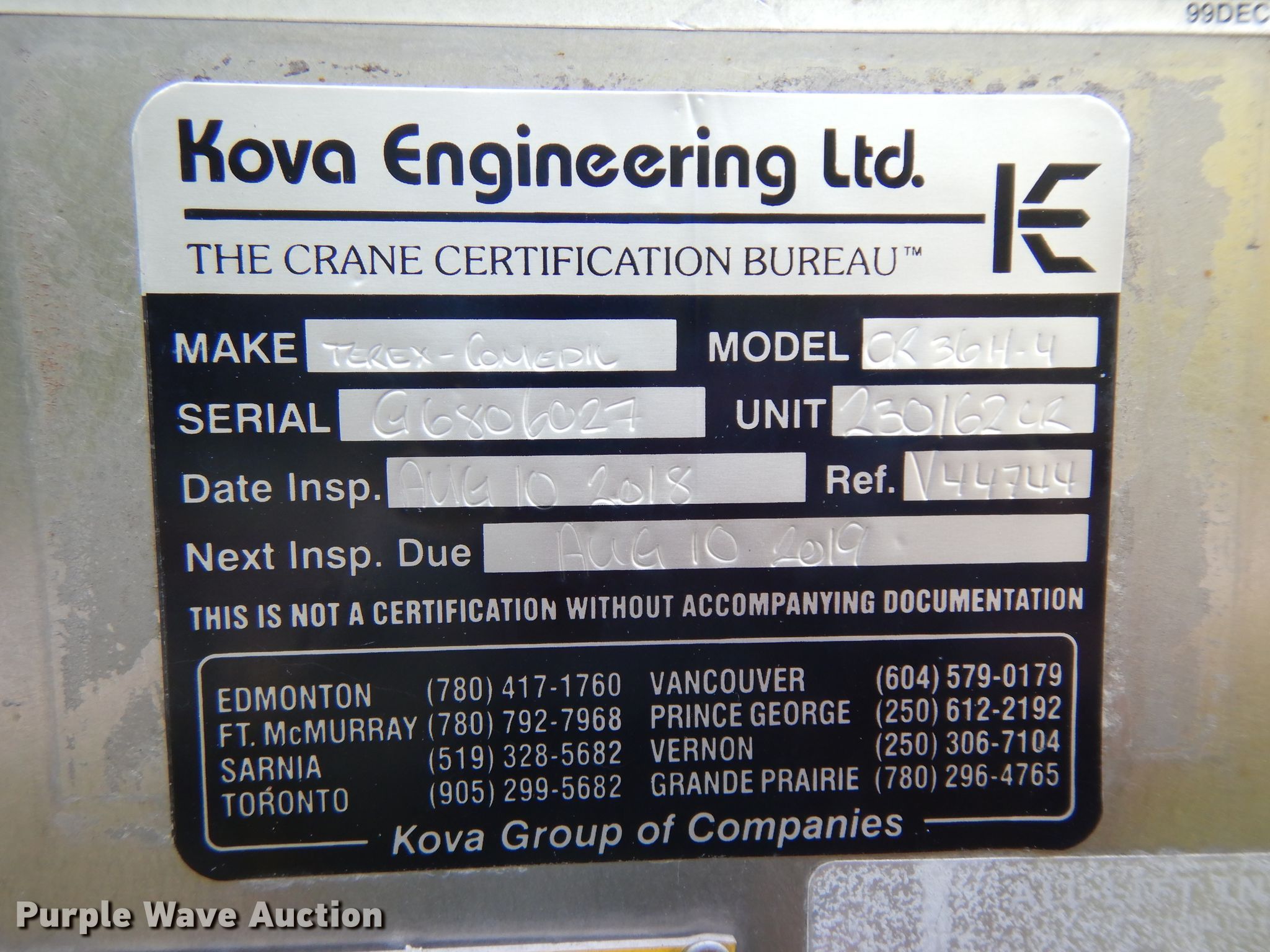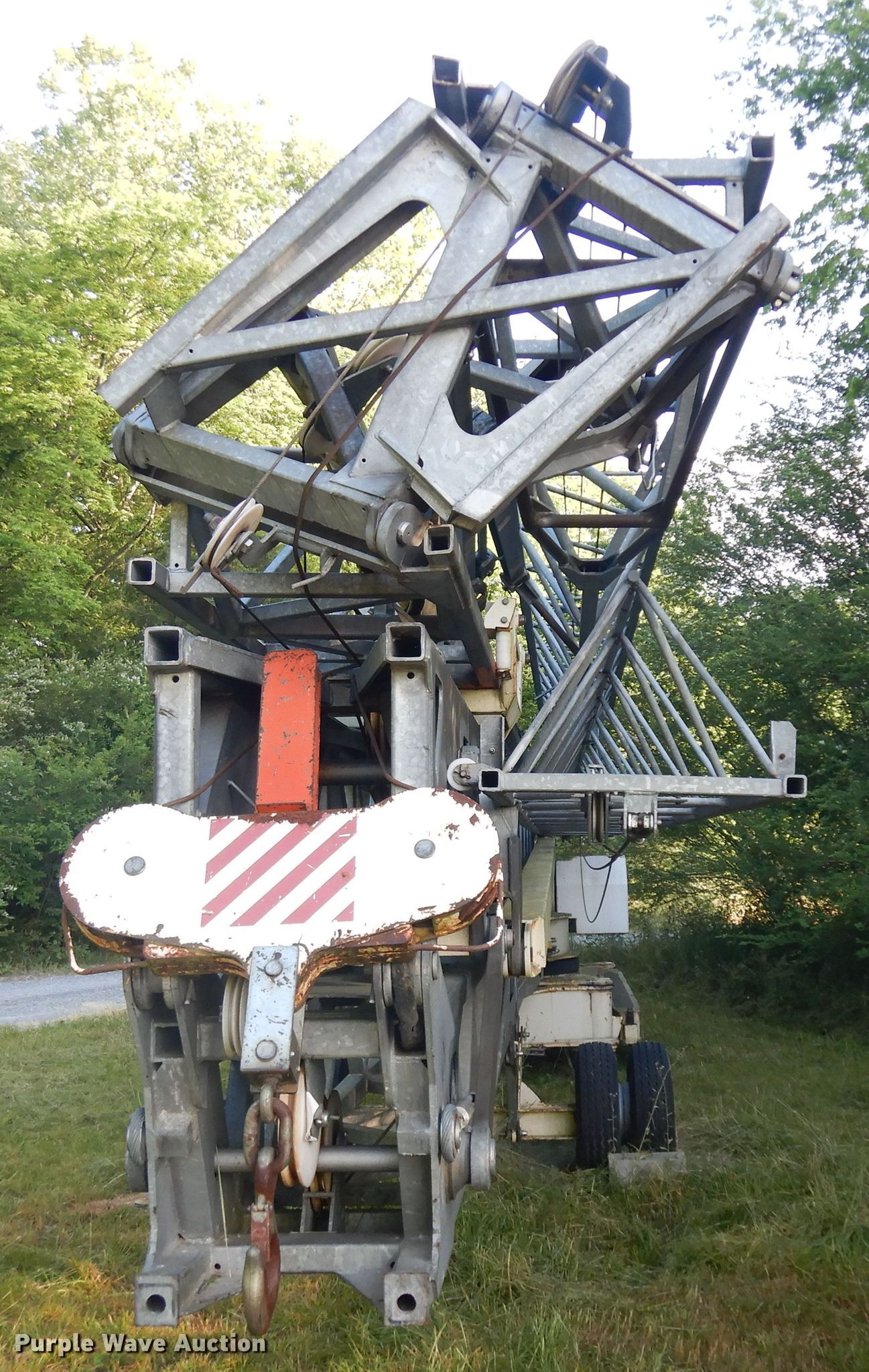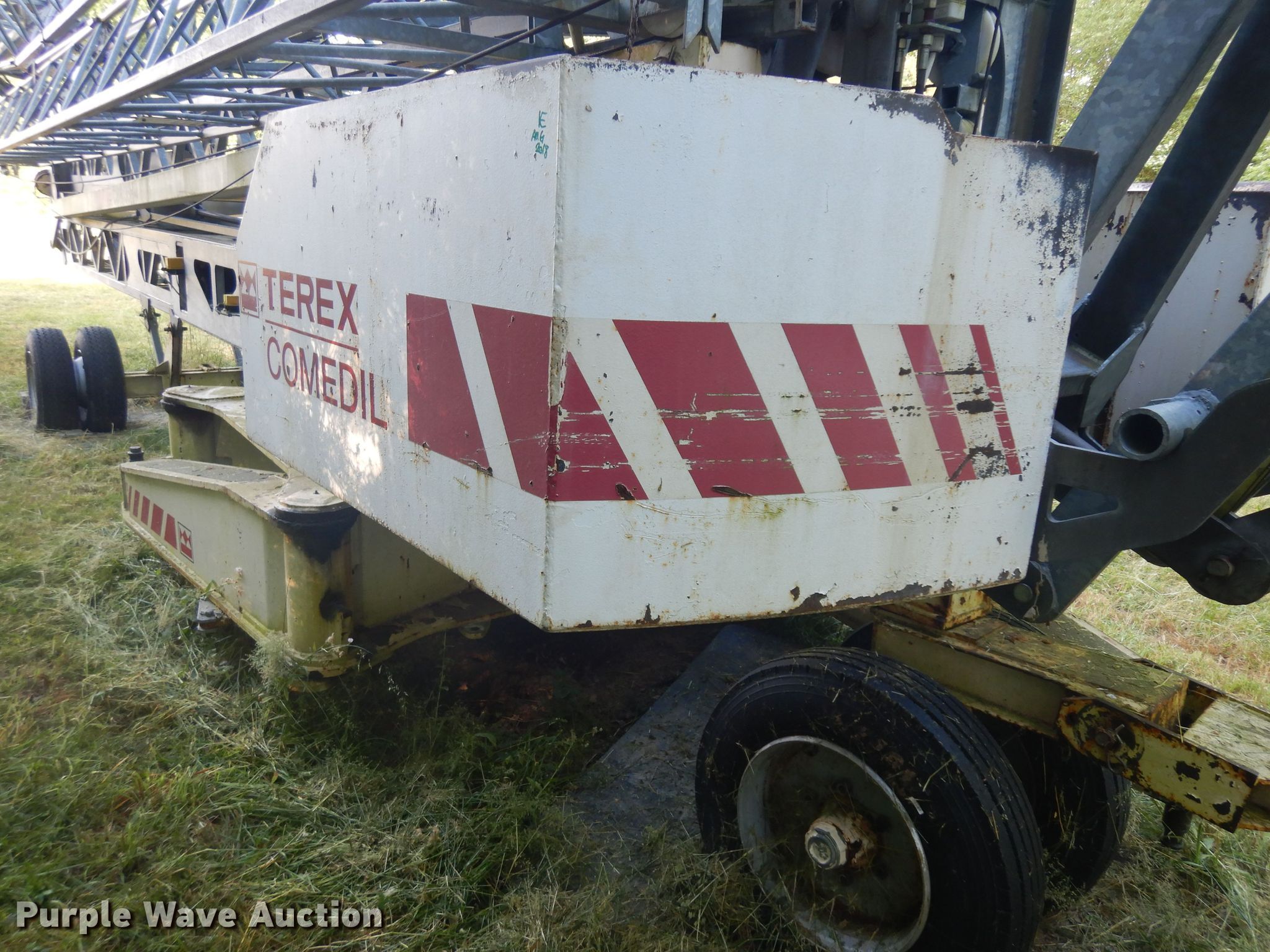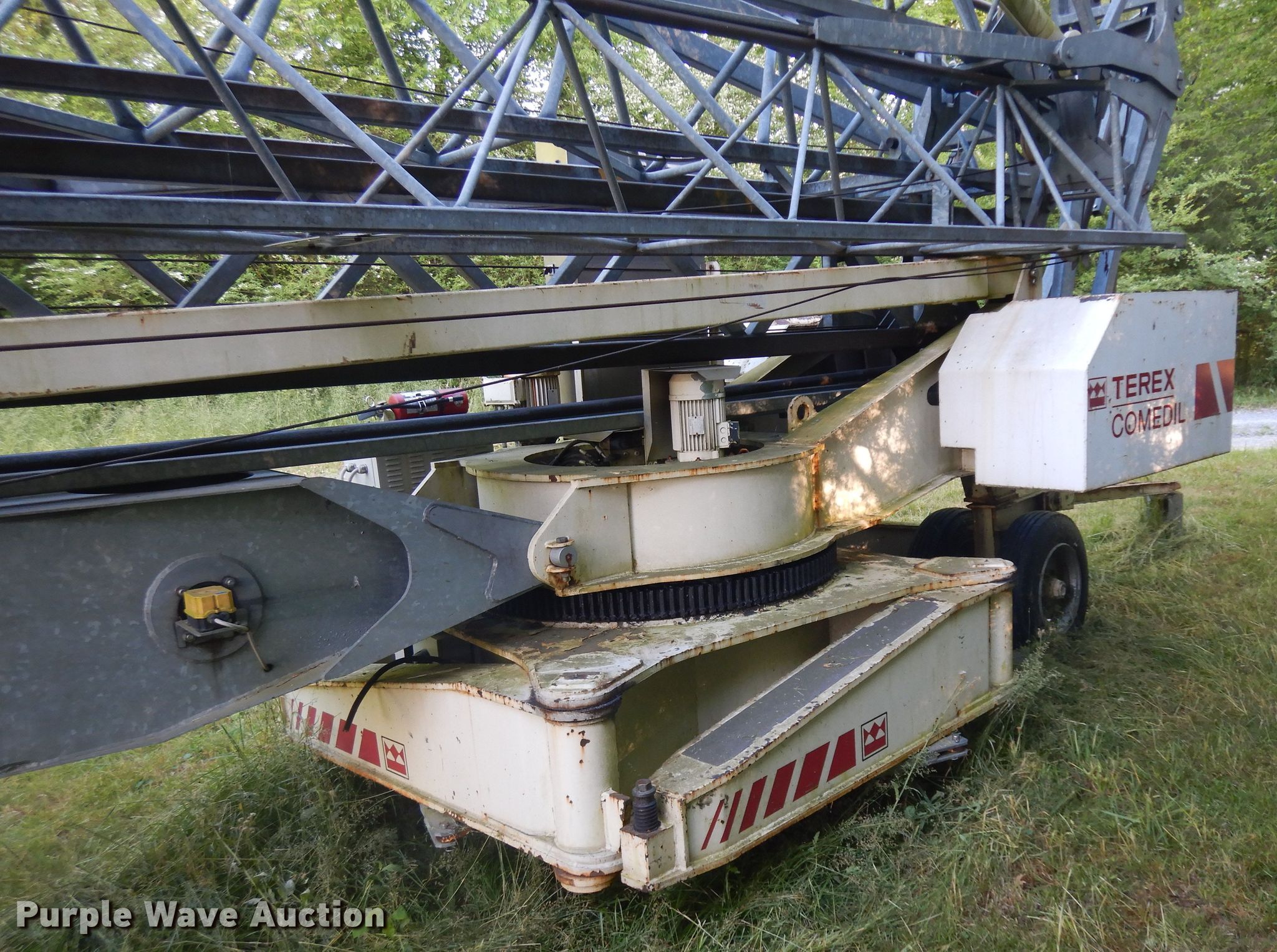2006 Terex CBR36H-4 self-erecting tower crane. Serial: G6806027. Operational Boom length: 118', Maximum lift capacity: 2,000 lbs at tip, Jib: 43', Underhook: 75', Boom controls Remote control, Crane block Sheaves: 2, Manuals, Lift chart. Tires Size: 215/75-17.5. Notes (15) 2,712 lbs counterweights, (4) test weights 2,194 lbs, 4,404 lbs, 4,400 lbs, 790 lbs, 218 lbs transfer weight. 3313 Hwy 82-e. Bell Buckle, TN 37020