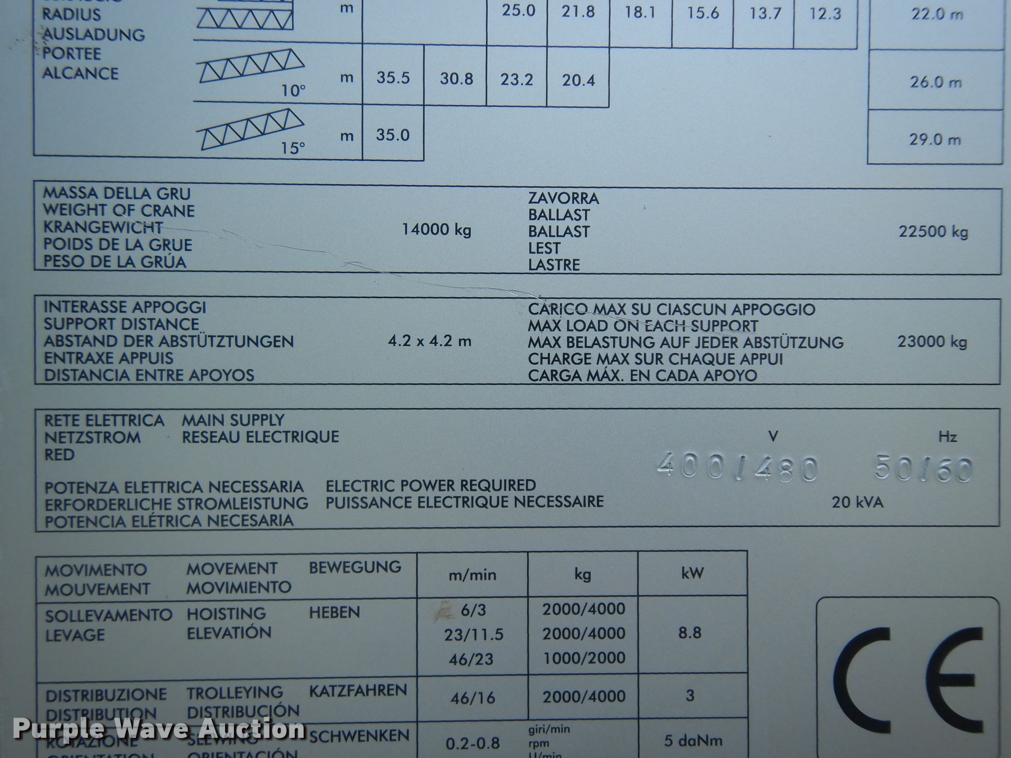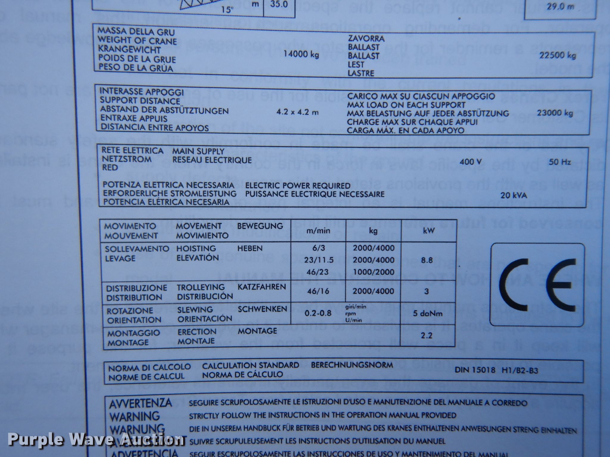 Purple Wave is selling a used Tower Crane in Tennessee. This item is a 2006 Terex CBR36H-4 self-erecting tower crane with the following: Serial: G6806027