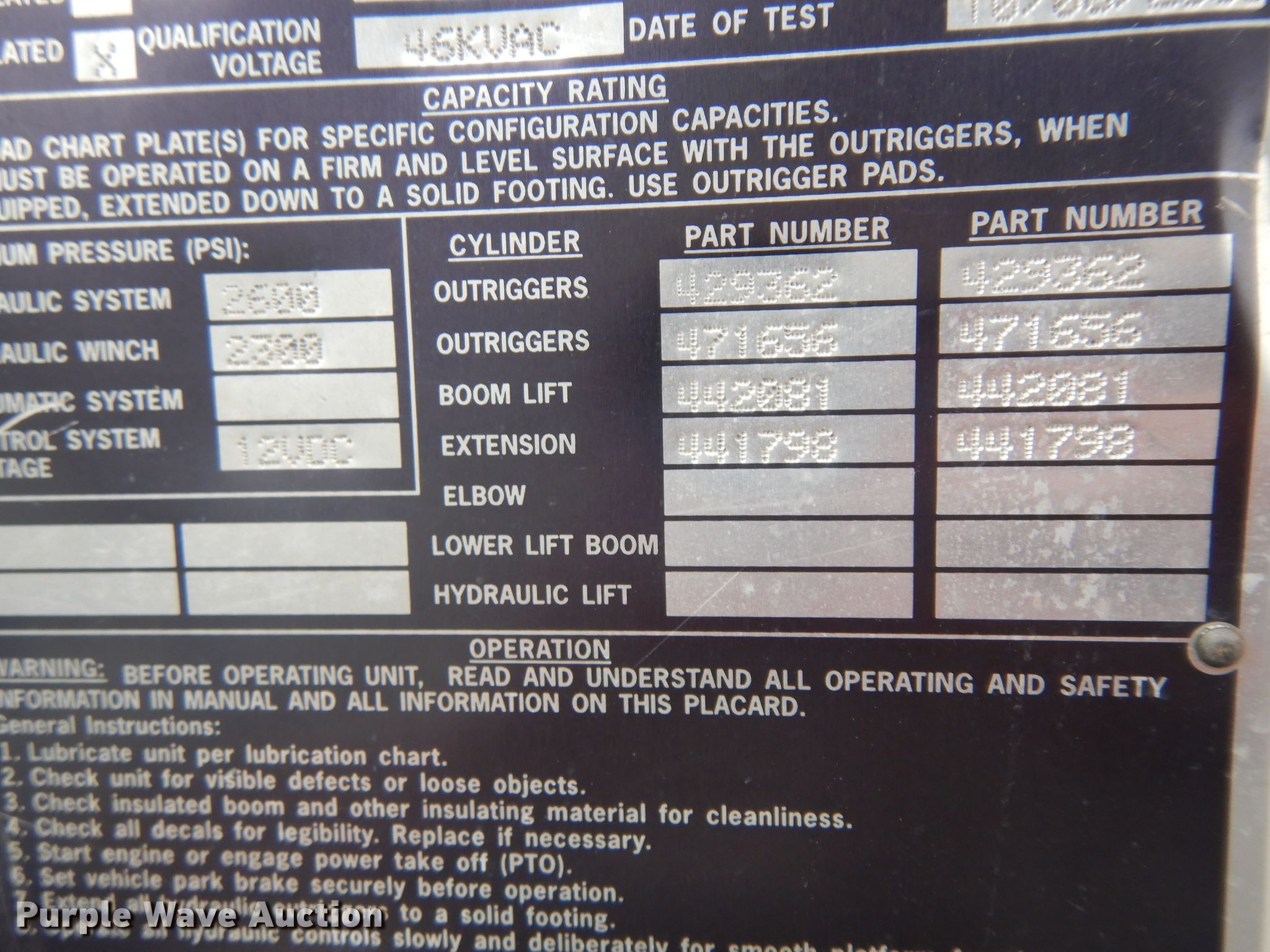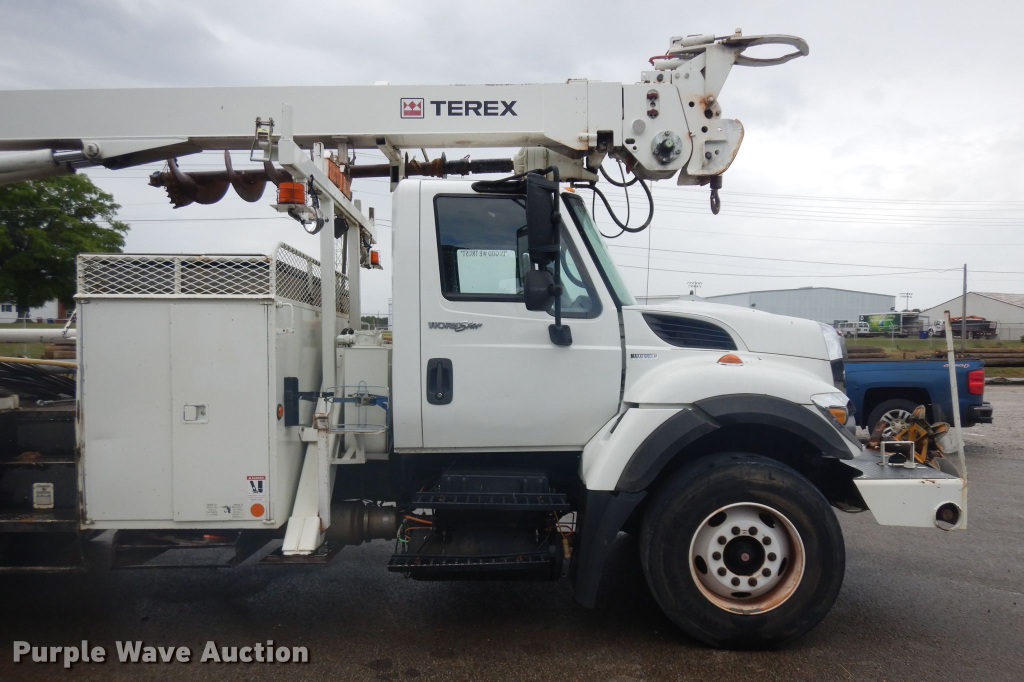 2010 International WorkStar 7300 digger derrick truck. 88,655 miles on odometer, Engine hours: 7,899. Engine Maxxforce, Cylinders: 6, Fuel type: Diesel. Transmission Allison, Automatic. Chassis Axles: Single, Suspension: Spring, Brakes: Air, PTO, GVWR: 37,000 lbs. Interior AC, Heat, Cruise control. Operational Bed Terex, Serial: IN16923, Length: 16', Boom 2009 Terex Commander C4047, Serial: 2091040300, Boom length: 48', Mast height: 4', Maximum lift capacity: 18,820 lbs, Maximum lift height: 48', Boom type: Telescopic, Boom controls Ground, Remote control, Material handler, Pole guide, Auger Diameter: 18".. Tires Front: 385/65R22.5, Rear: 11R22.5. Tennessee title. 1HTWDAAR5AJ240581. Lexington Electric System. 280 Factory Dr. Lexington, TN 38351