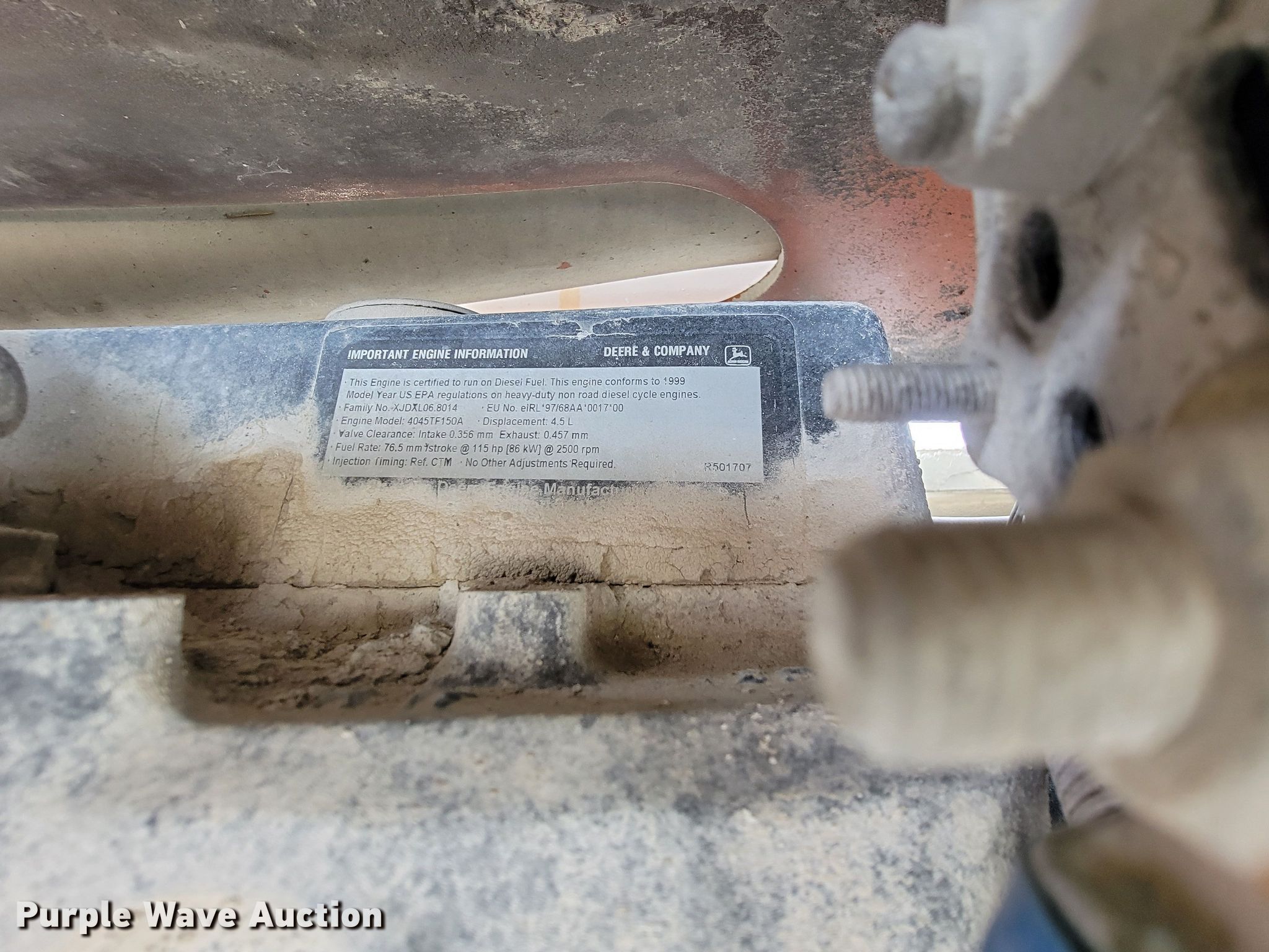 2000 Lull 844 telehandler. 4,131 hours on meter, Serial: 00W20P22-2559. Engine John Deere, Cylinders: 4, Fuel type: Diesel. Transmission Powershift, 4F - 3R, Four wheel drive. Operators station Enclosed cab, Steering: Crab. Operational Maximum lift capacity: 8,000 lbs, Maximum lift height: 42', Boom stages: 2, Fork length: 48", Swing carriage, Tilt carriage, Hydraulic leveling, Quick attach: Manual. Tires Size: 13.00-24. Woody Farms. 3042 E 700th Rd. El Dorado Springs, MO 64744