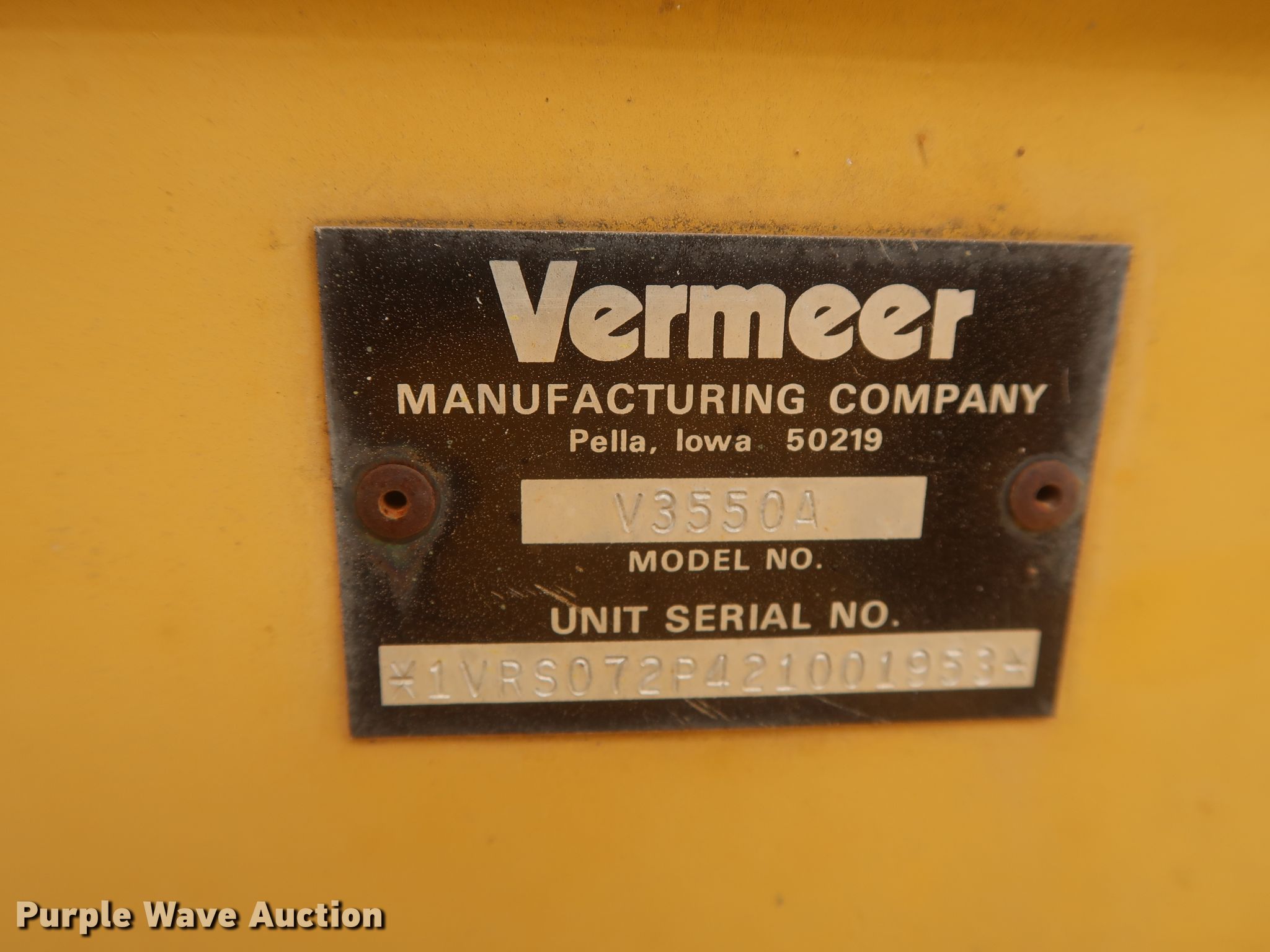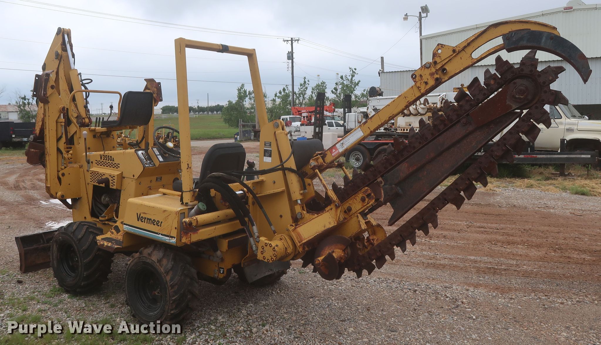 Purple Wave is selling a used Trencher or Rock Saw in Oklahoma. This item is a 2002 Vermeer V3550A trencher with the following: 1,561 hours on meter, Serial: 1VRS072P421001953