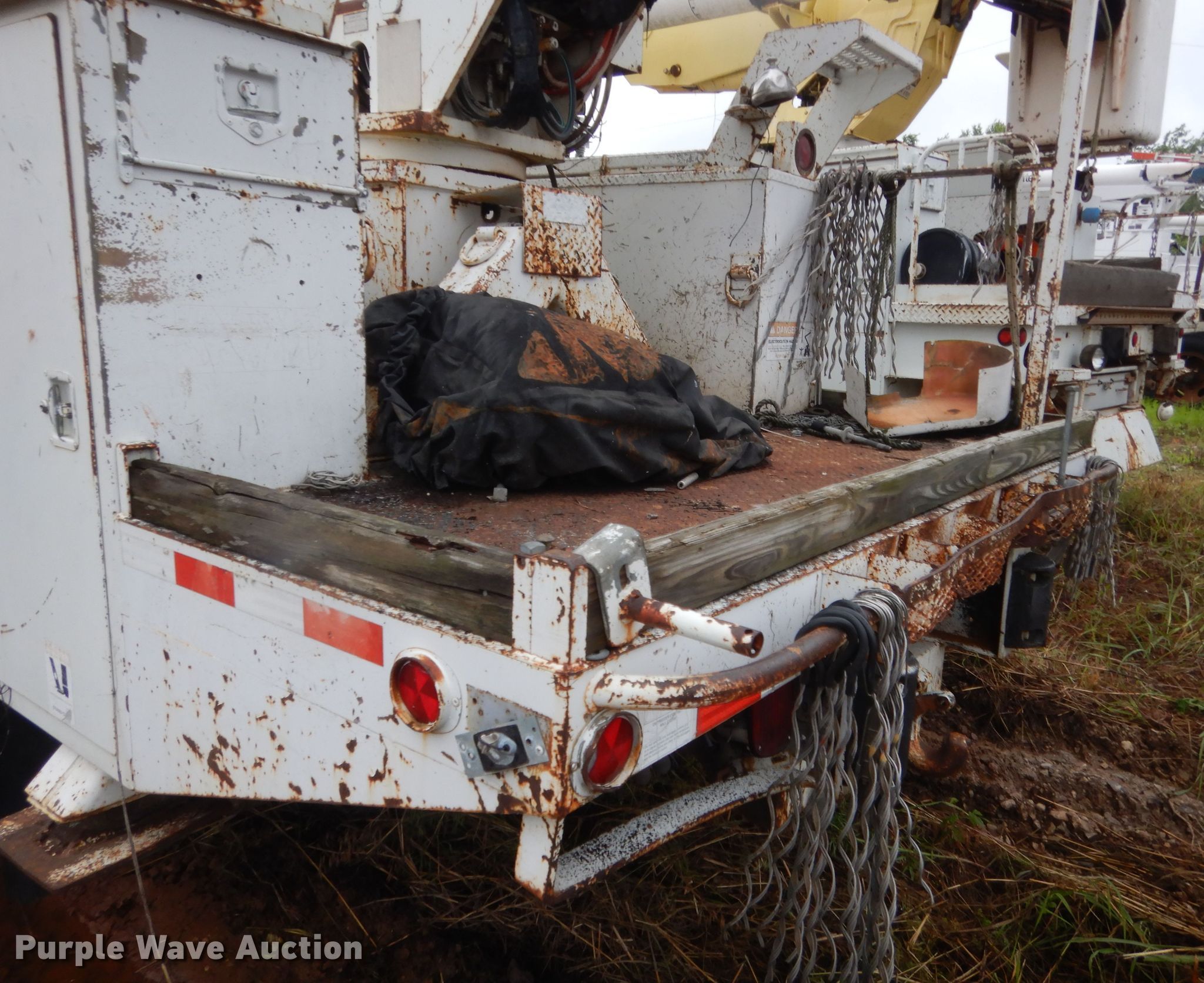 Purple Wave is selling a used Bucket Truck in Oklahoma. This item is a 1998 International 4700 bucket truck with the following: Unknown miles on odometer