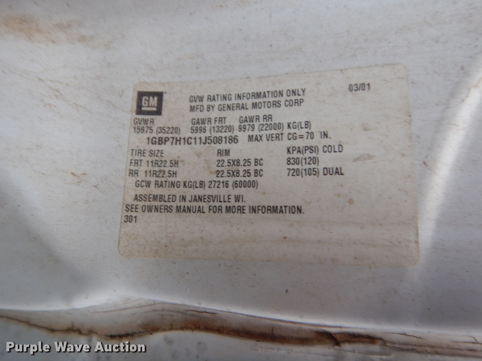 Purple Wave is selling a used Bucket Truck in Oklahoma. This item is a 2001 Chevrolet C7500 bucket truck with the following: 160,098 miles on odometer