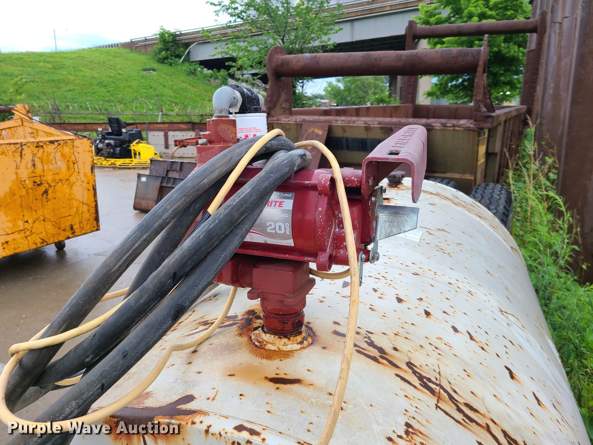 Purple Wave is selling a used Fuel and Lube in Missouri. This item is a Fuel tank with the following: 6'L, 4' diameter, Pump, 120v, Nozzle