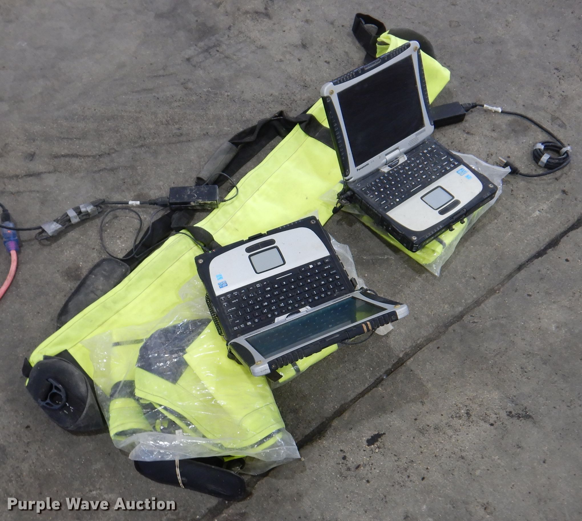 Purple Wave is selling a used Surveying Equip. in Iowa. This item is a Panasonic Toughbook surveying computers with the following: (4) tripod carry bags